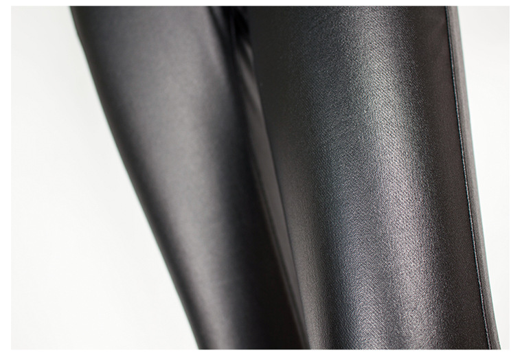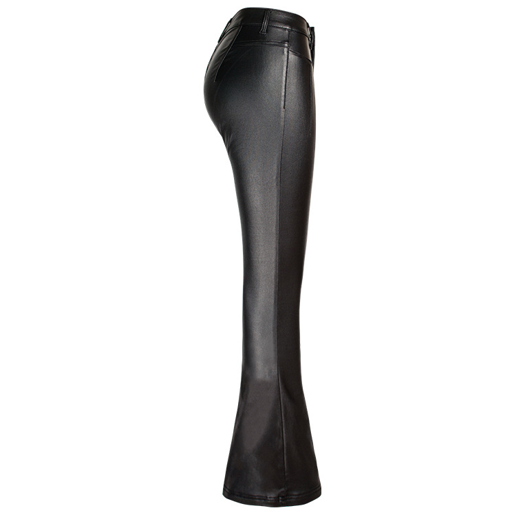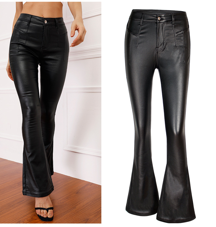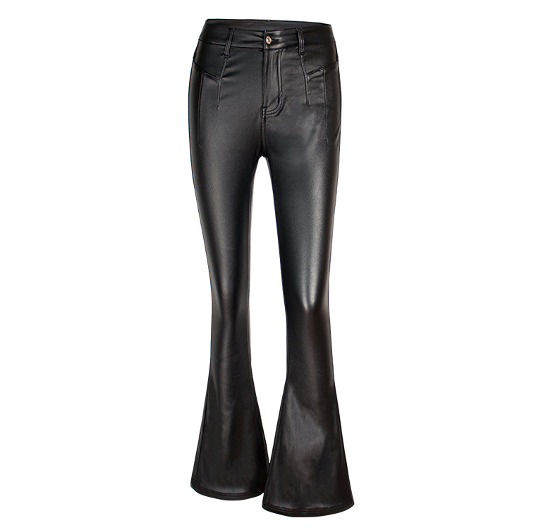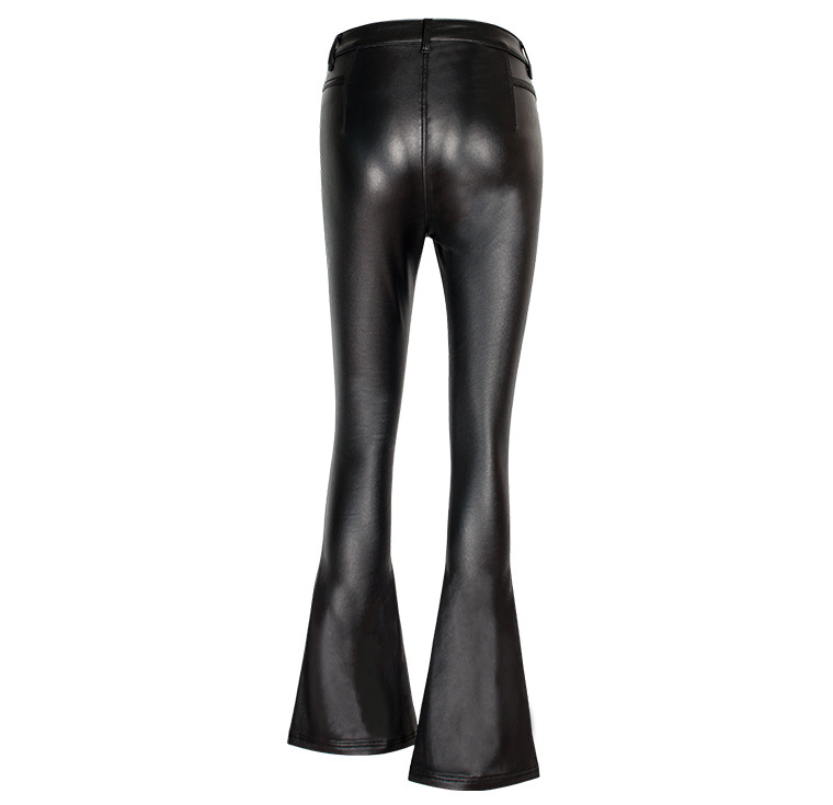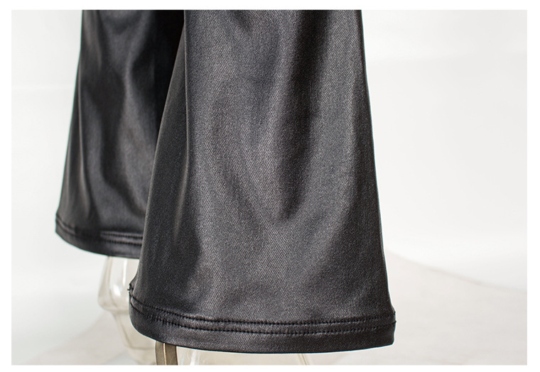 Autumn Winter Black High Waist Brushed Bottom Faux Leather Pants Wide Leg Pants Bell-Bottom Pants Women