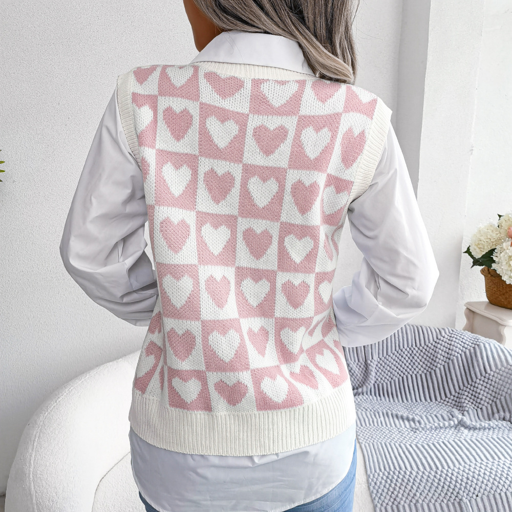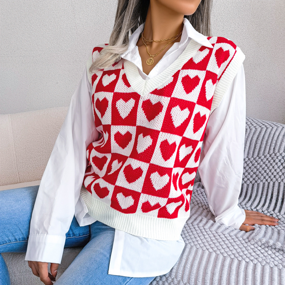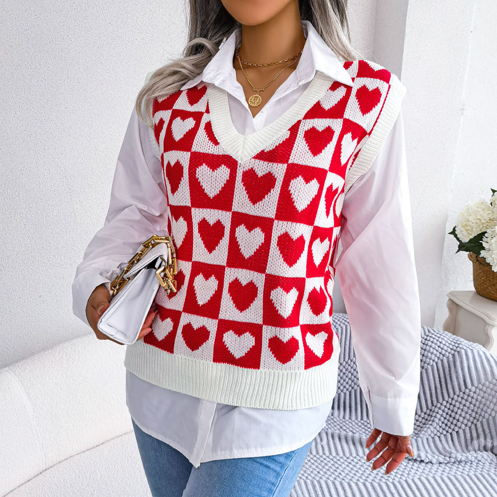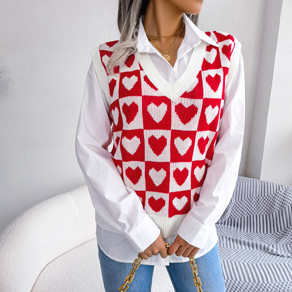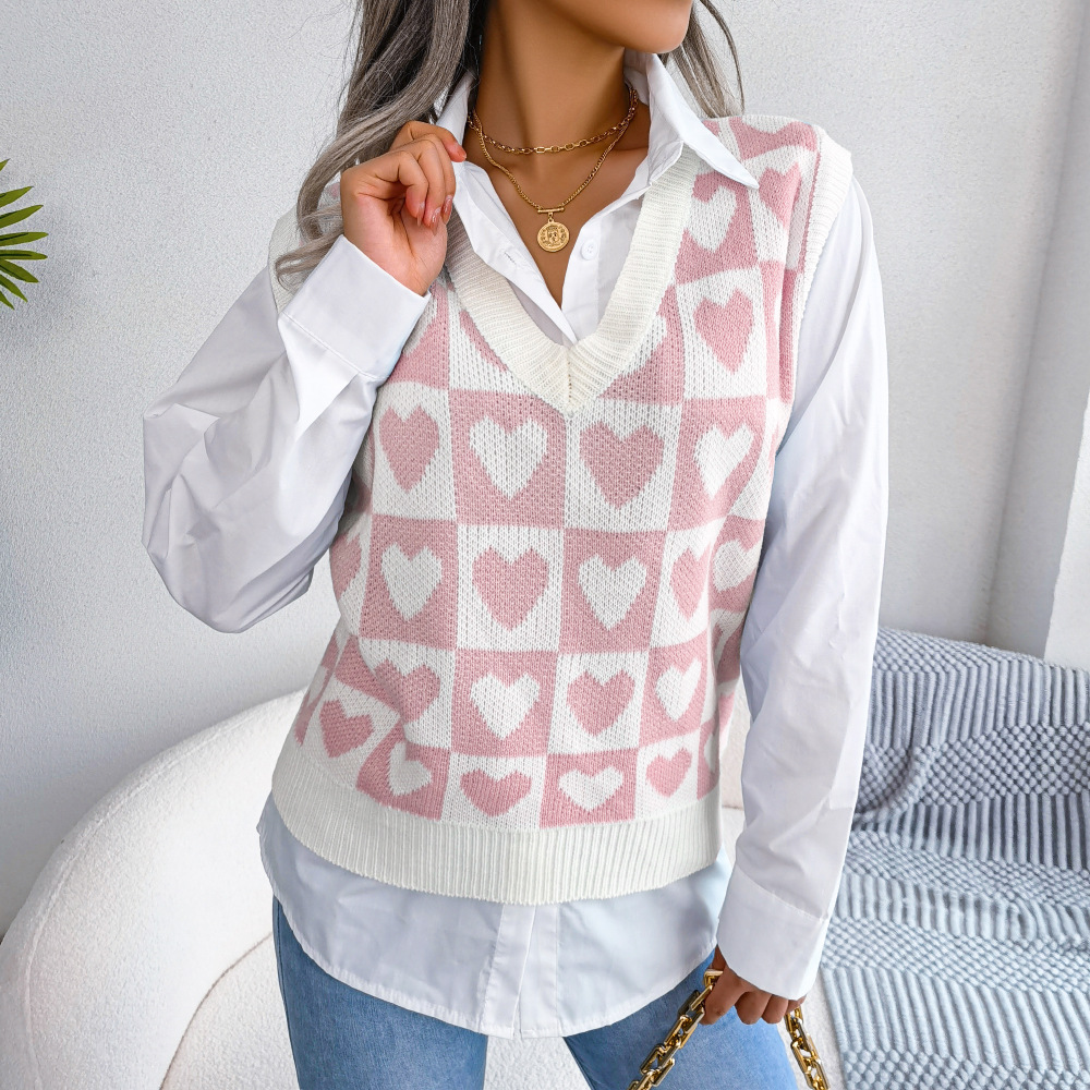 Autumn Winter College Style Heart Knitted Vest Sweater Vest Women Clothing