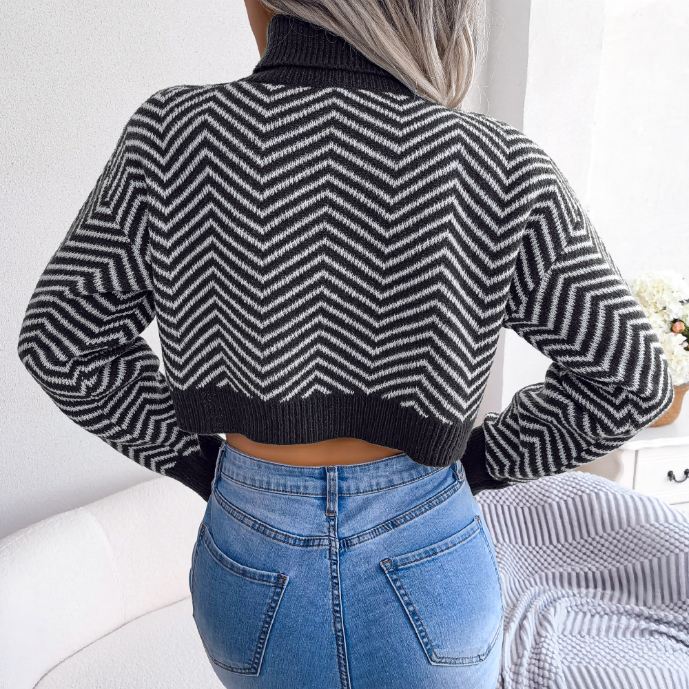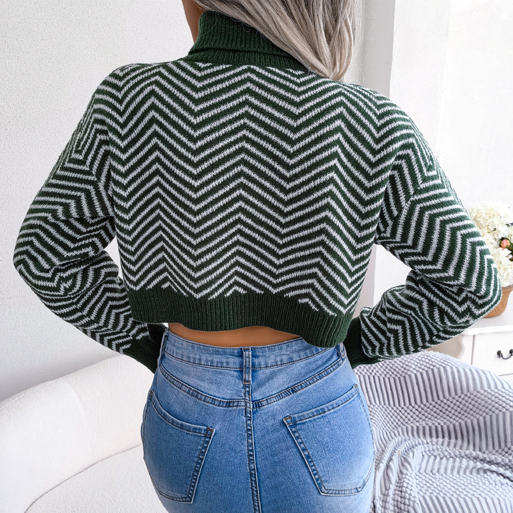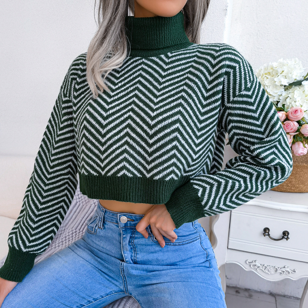 Autumn Winter High Collar Long Sleeve Striped cropped Sweater Women Clothing