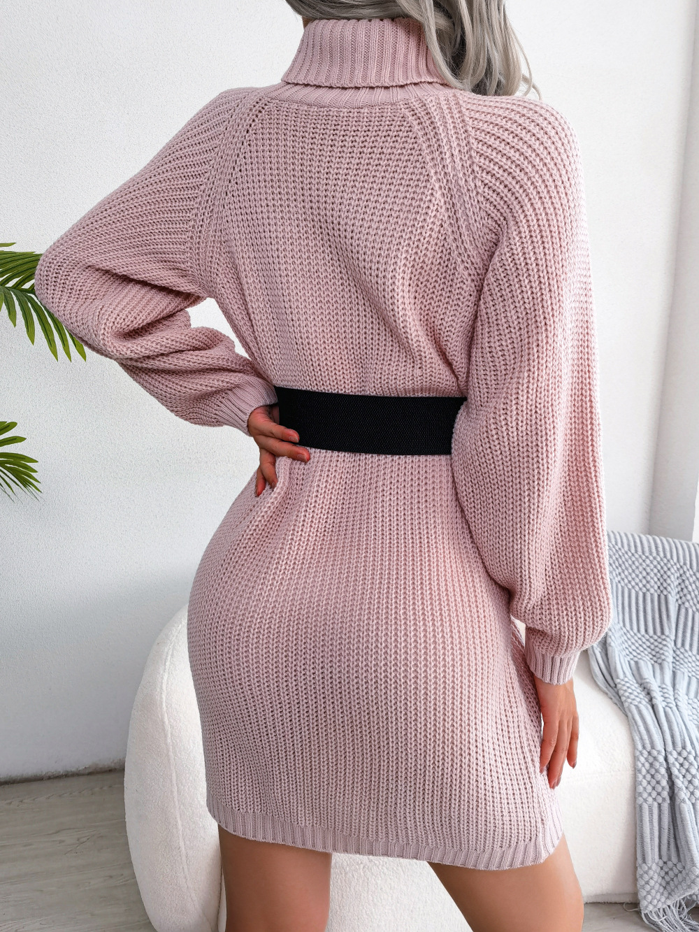 Autumn Winter Leisure Button Turtleneck Long Sleeve Base Sweater Dress Women Clothing No Belt