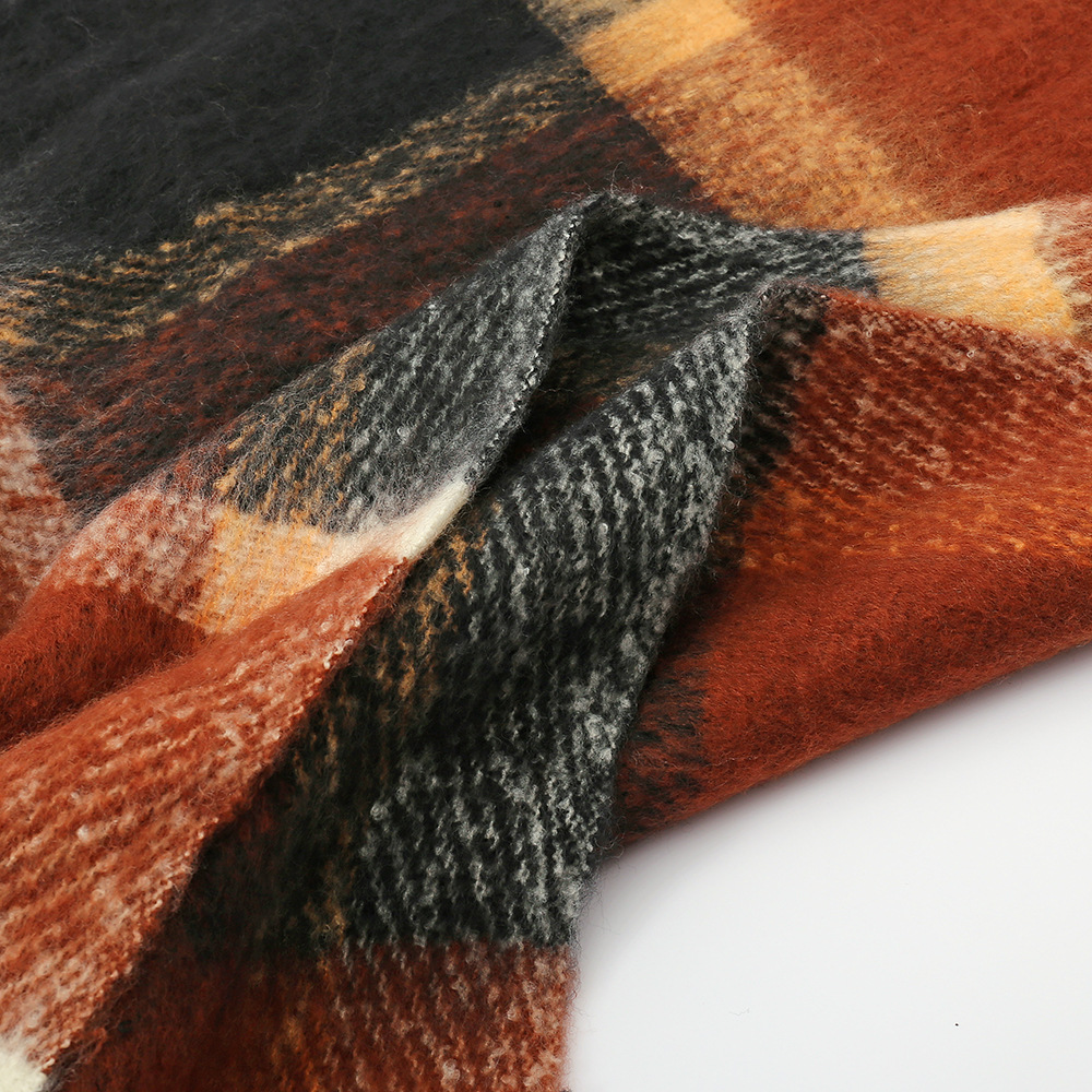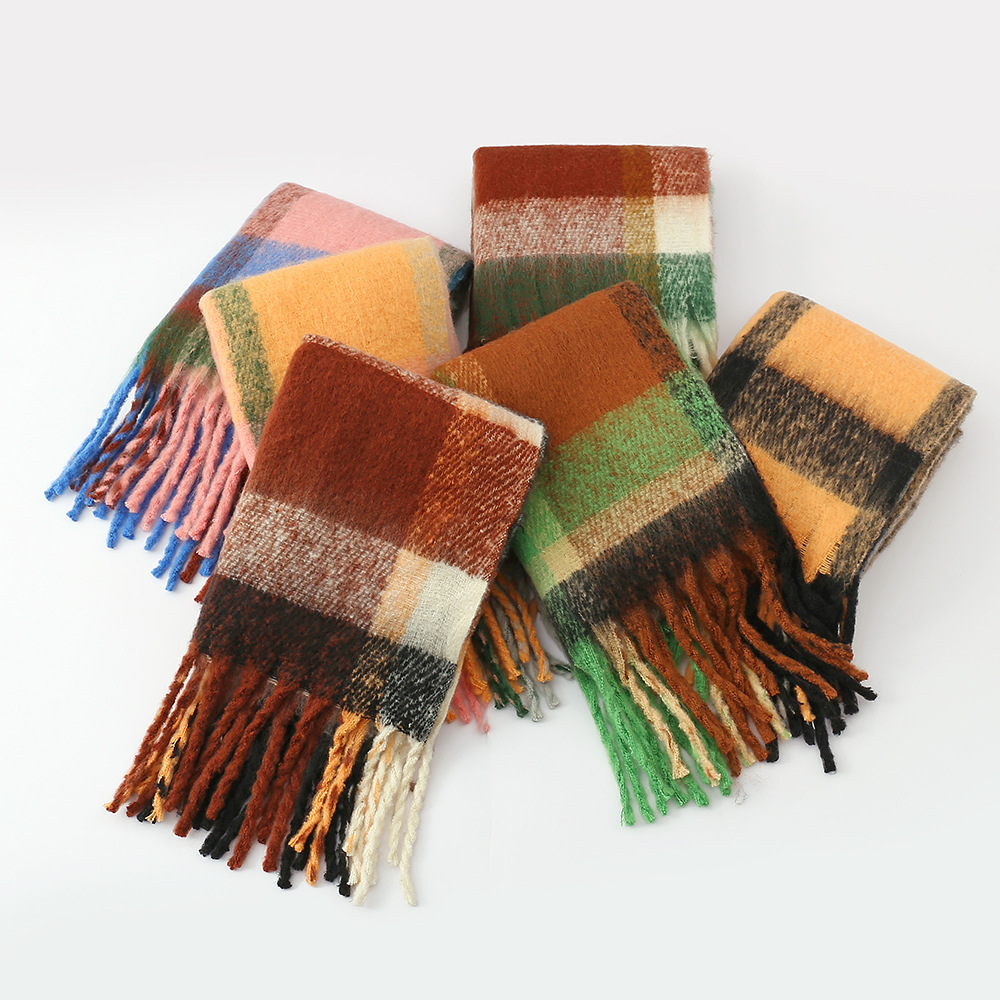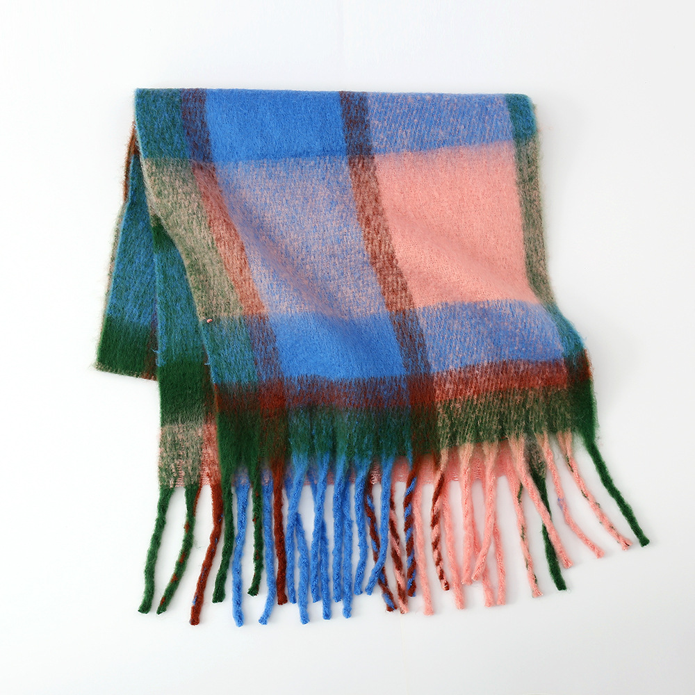 Autu'mn Winter Rainbow Plaid Cashmere like Tassel Scarf Women Mohair Thickening Shawl Warm Scarf