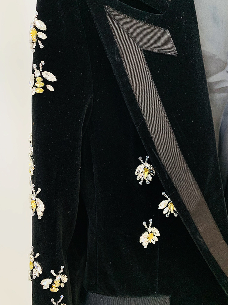 Autumn Winter Star Slim Bee Exquisite Rhinestone Beaded Velvet Blazer