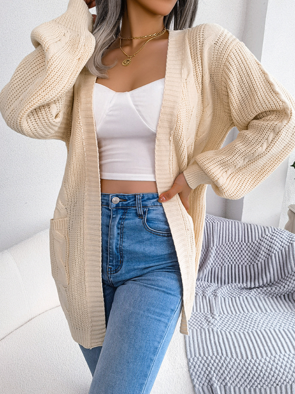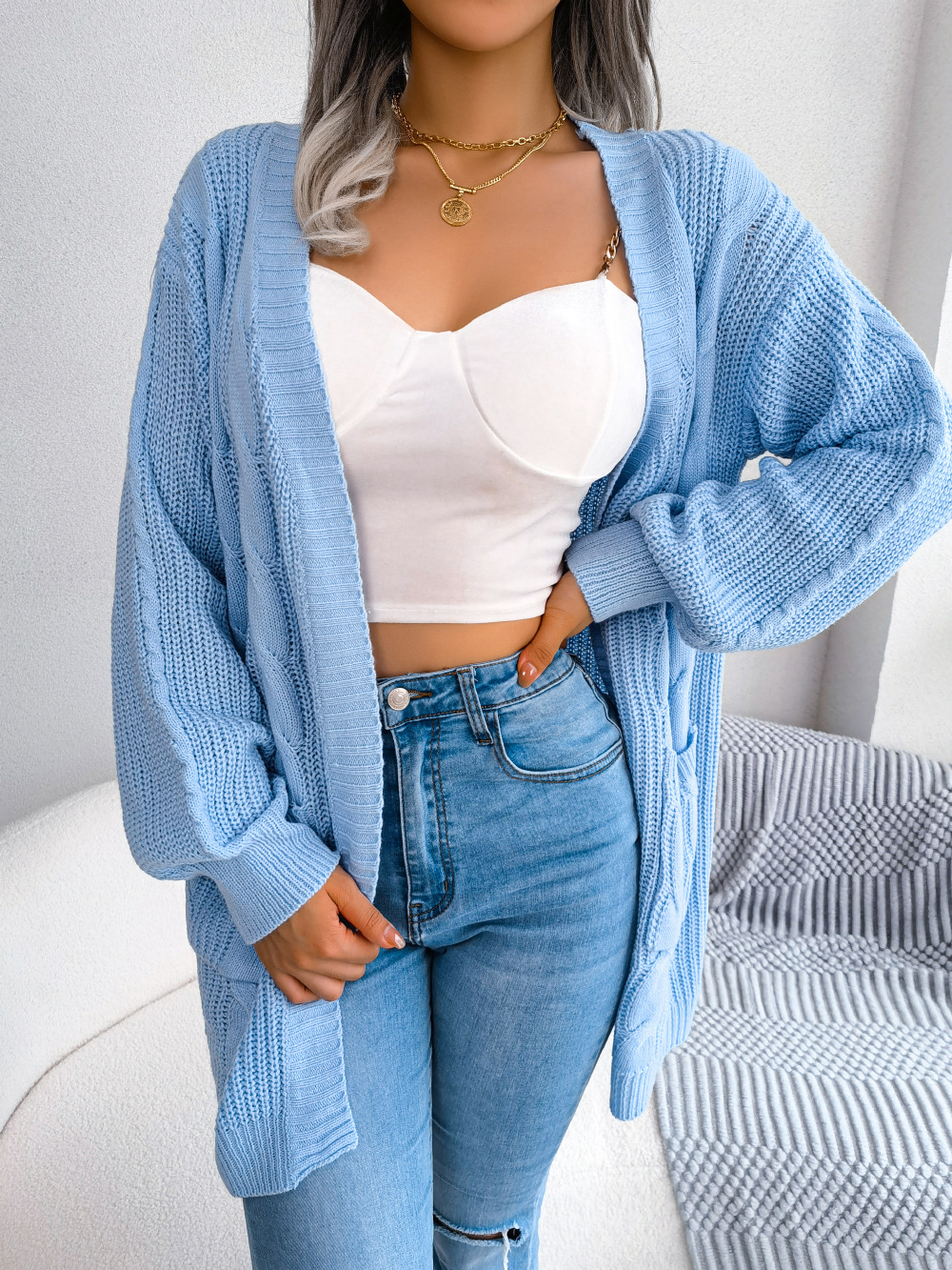 Autumn Winter Twist Lantern Sleeve Casual Pocket Cardigan Sweater Coat Women Clothing