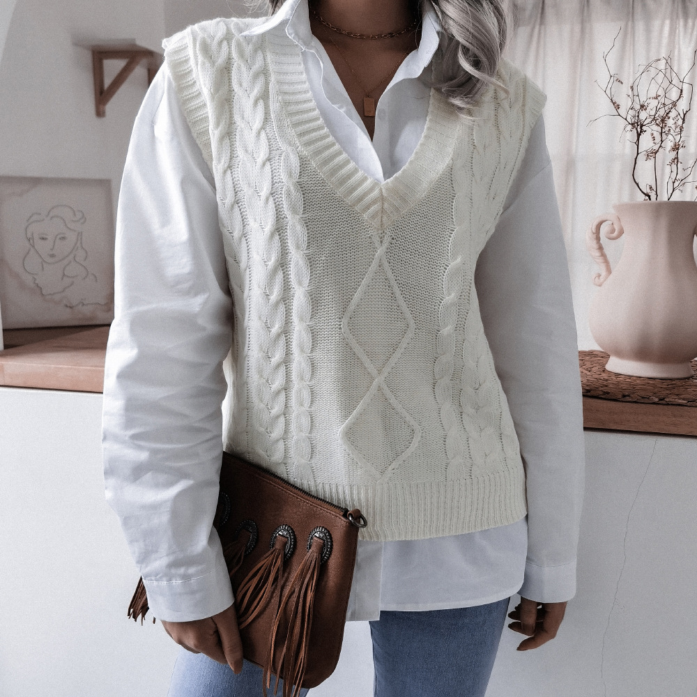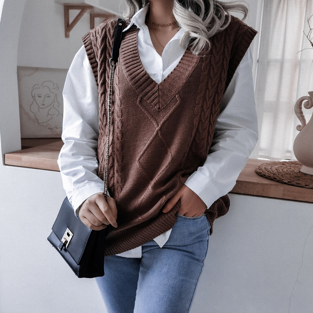 Autumn Winter V-neck Twist Casual Loose Knitted Vest Sweater Waistcoat Women Clothing