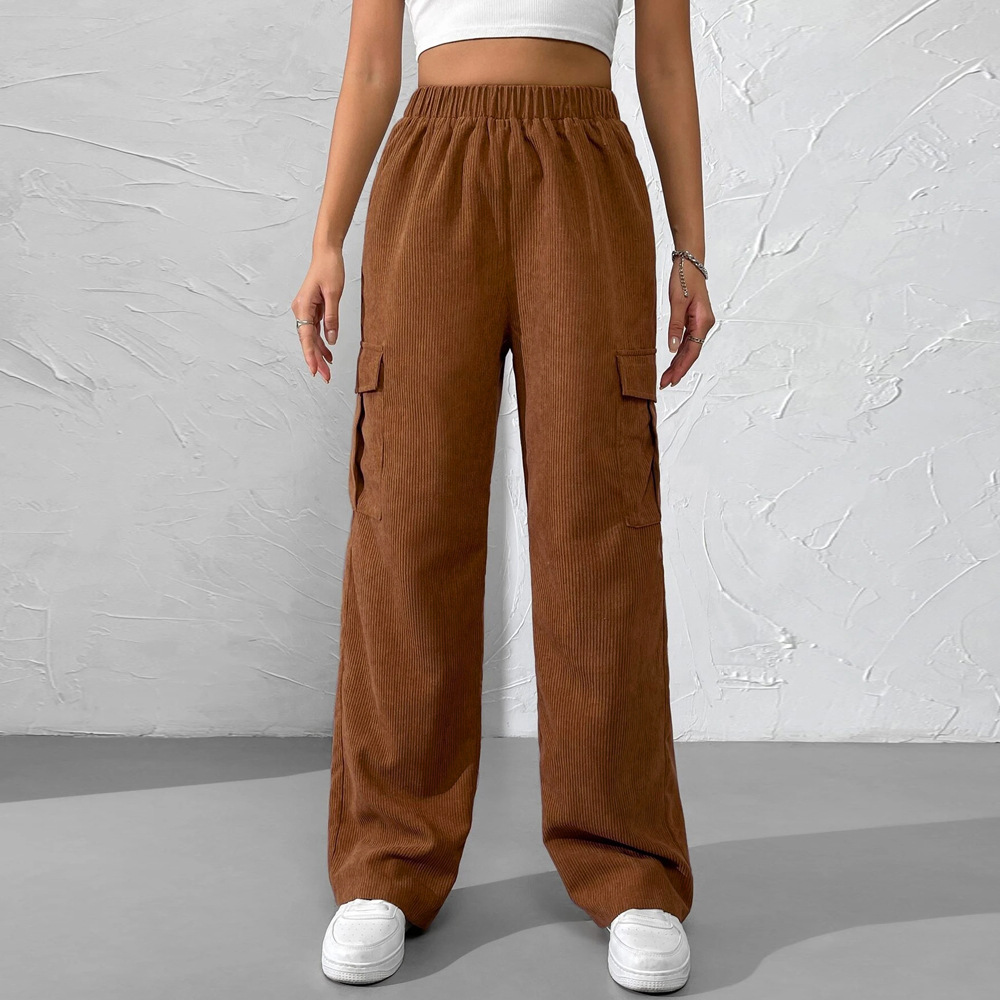 Autumn Winter Women Clothing Loose Elastic Waist Overalls Corduroy Wide Leg Straight Casual Trousers