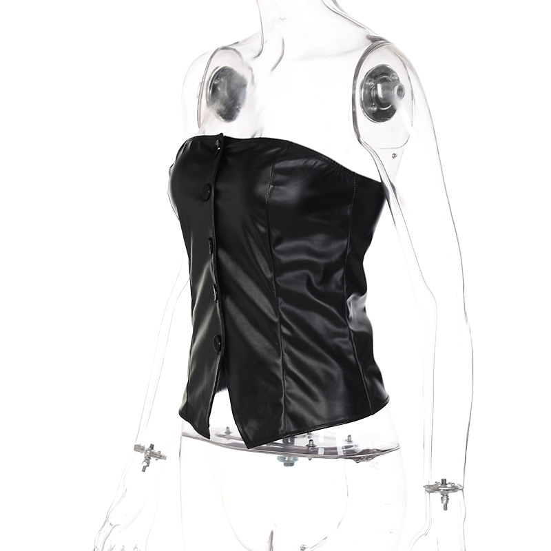 Autumn Winter Women Clothing Sexy Solid Color Slim-Fit off-Neck Button Corset Female