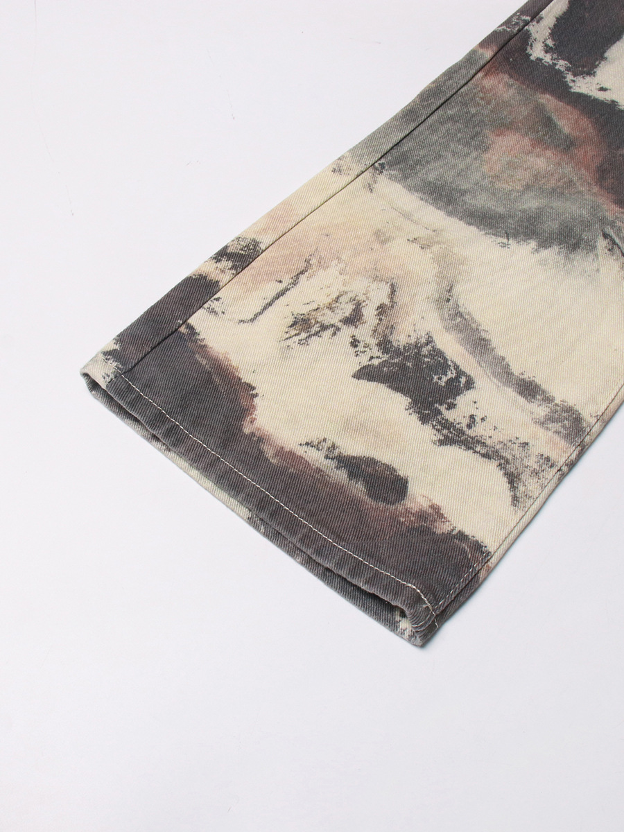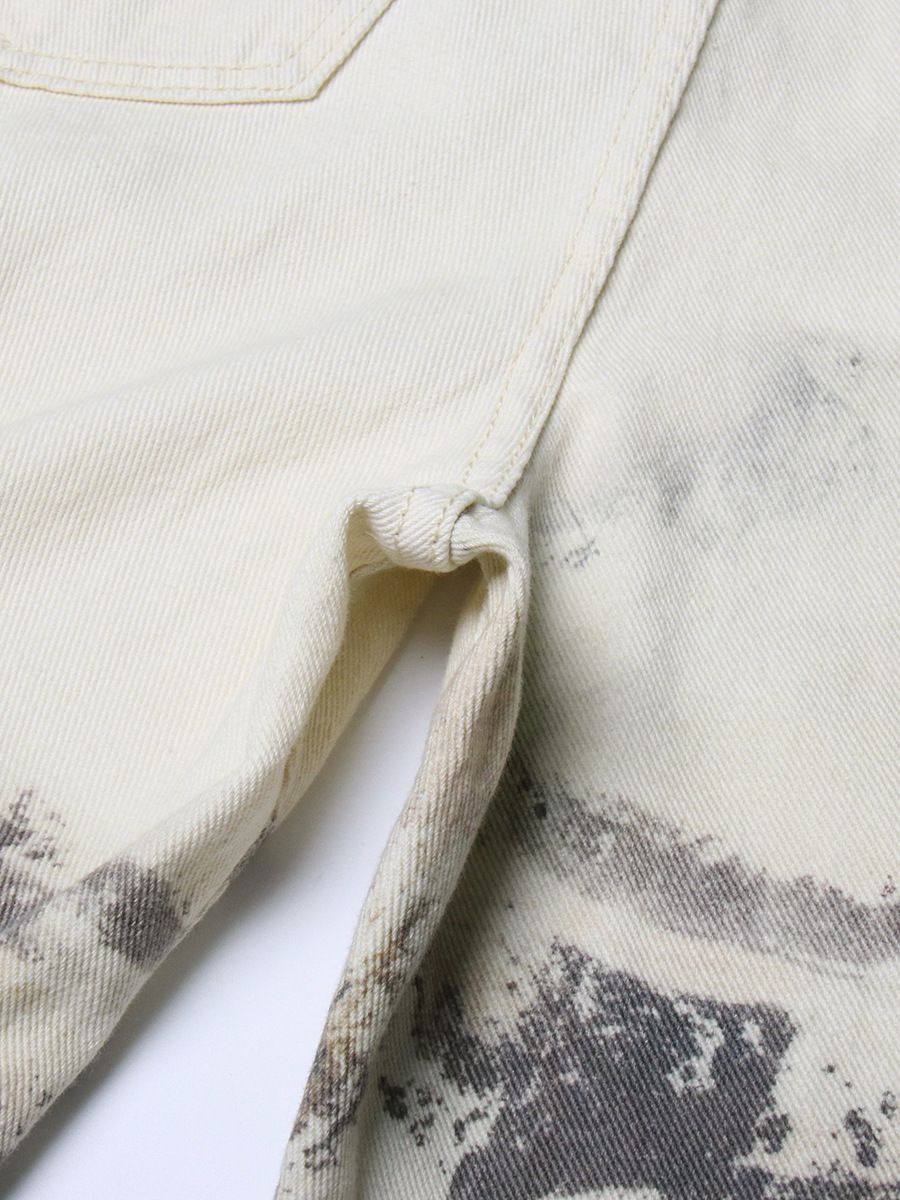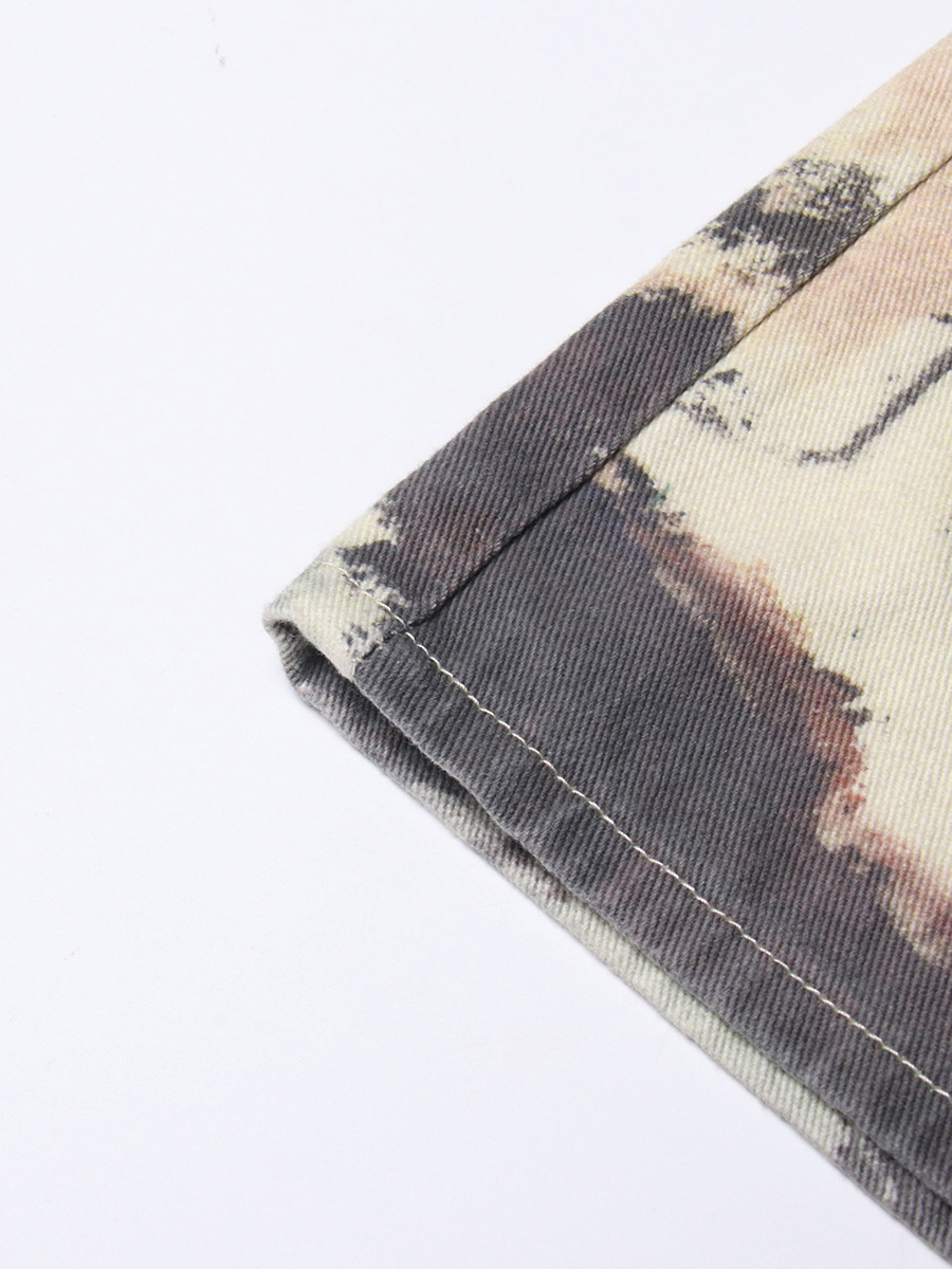 Blooming Ink Painting Color Contrast Patchwork Trousers Autumn High Waist Straight Casual All Matching Jeans