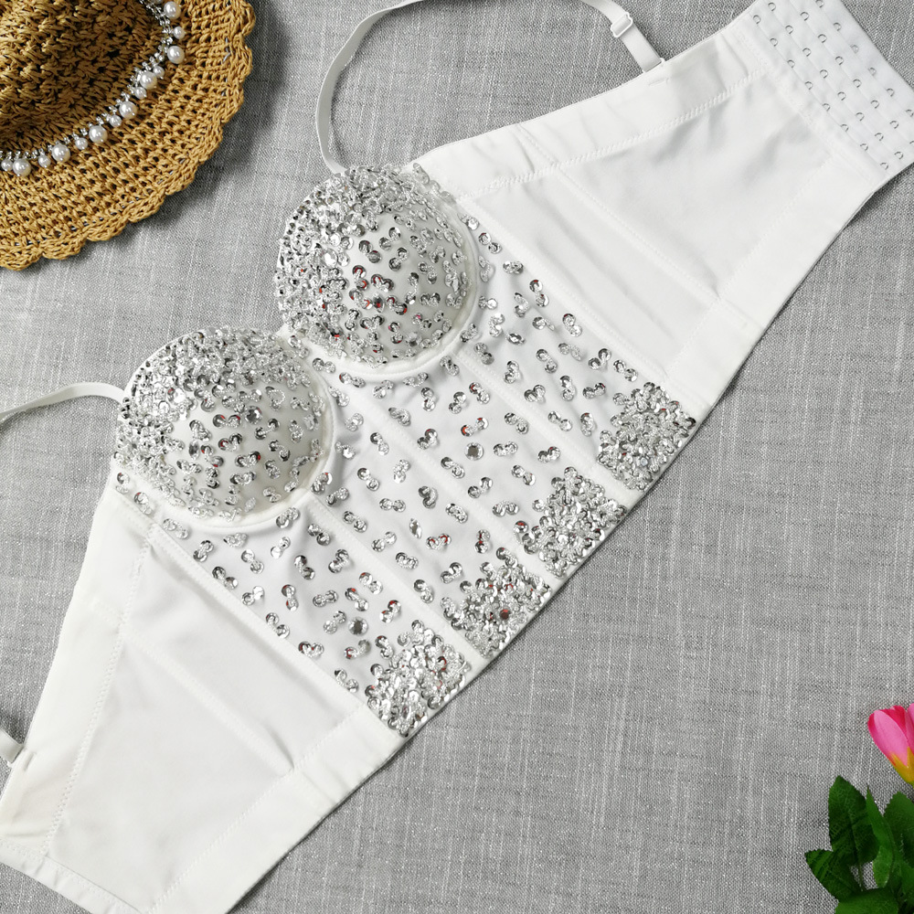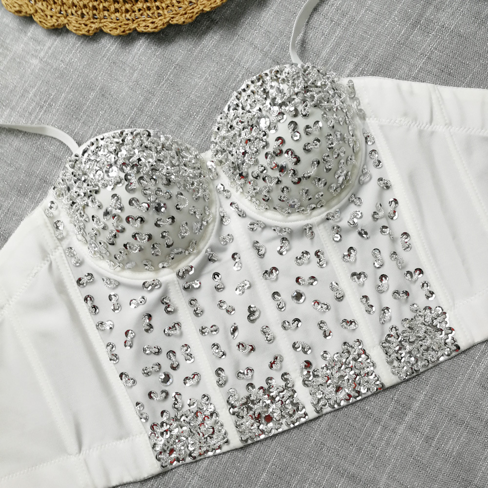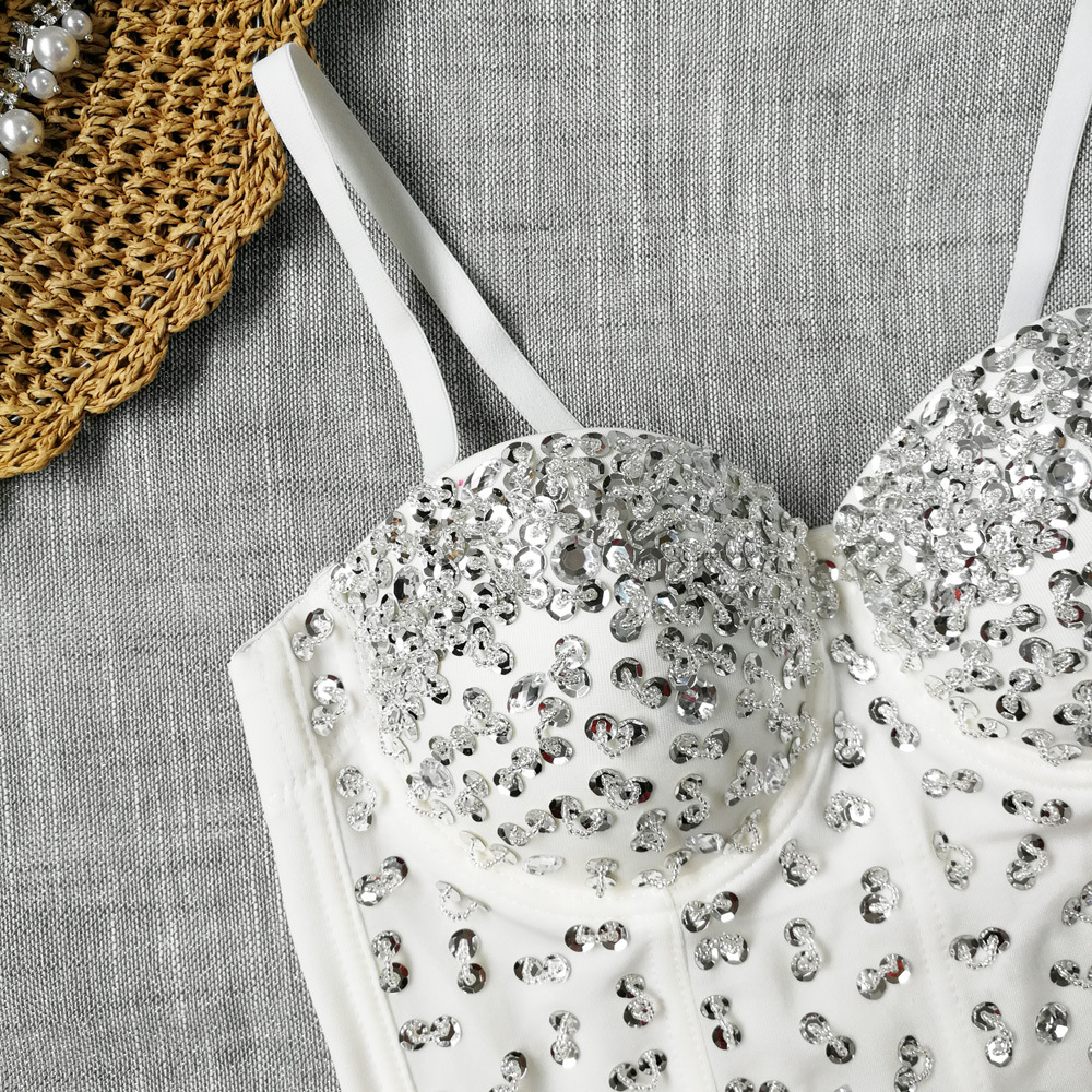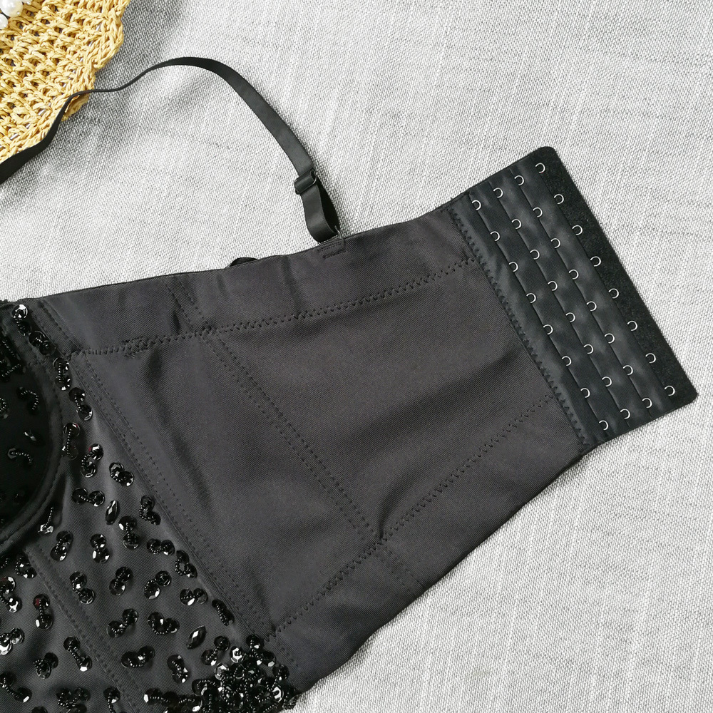 Boning Corset Vest Belly Covering Slimming Corset Beaded Mid Length Slim Waist Spaghetti Straps Outerwear