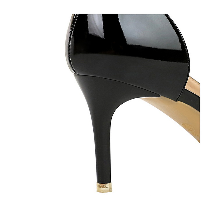 Bright Patent Leather High Heel Shoes Stiletto Low Cut Side Empty Pointed Toe Metal Buckle High Heel Pumps Women Shoes
