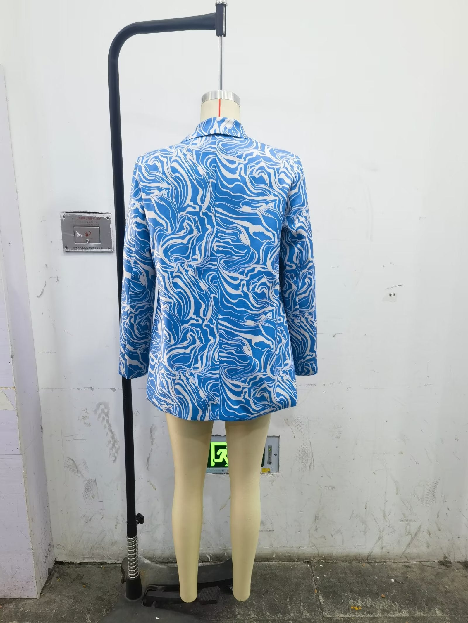 Casual Contrast Color Long Sleeve Blazer Winter Women Clothing Years Printed Slim One Button Top
