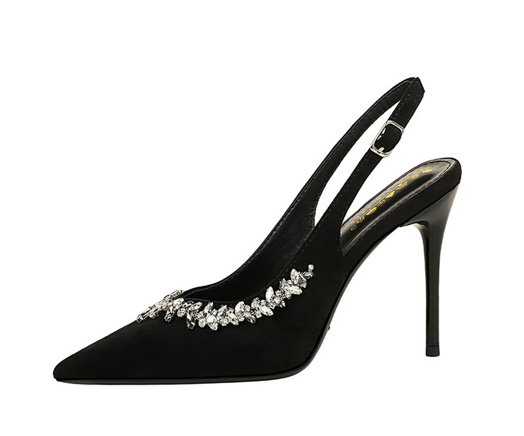 Cocktail High Heels Stiletto Heel Pointed Toe Rhinestone Shallow Mouth Suede Back Empty Back Strap Super High Heel Shoes