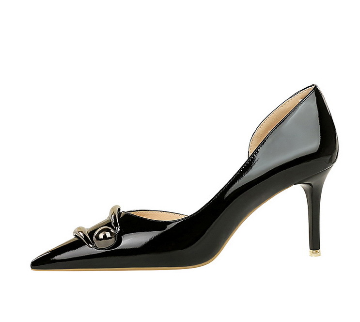 Cocktail Women Shoes Stiletto Heel Shallow Mouth Pointed Patent Leather Side Hollow Out Cutout Metal Buckle Pumps Women