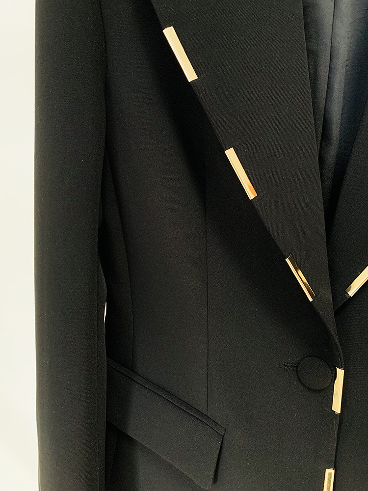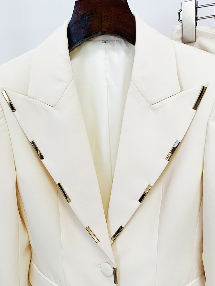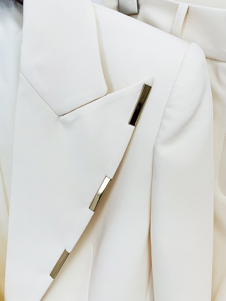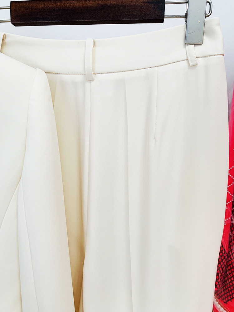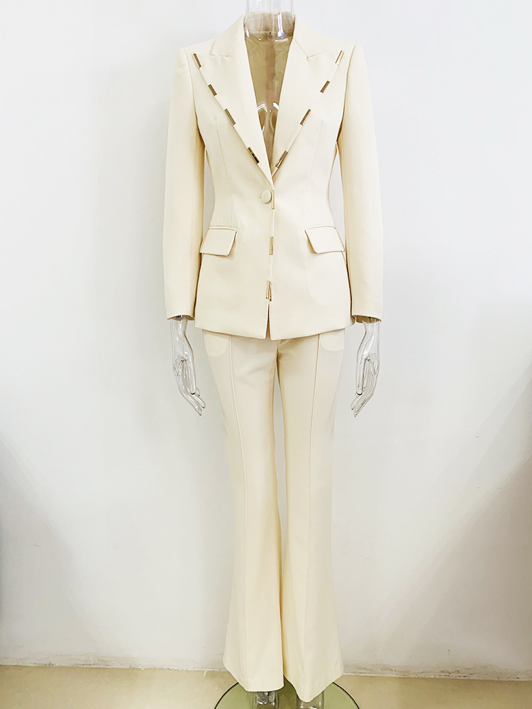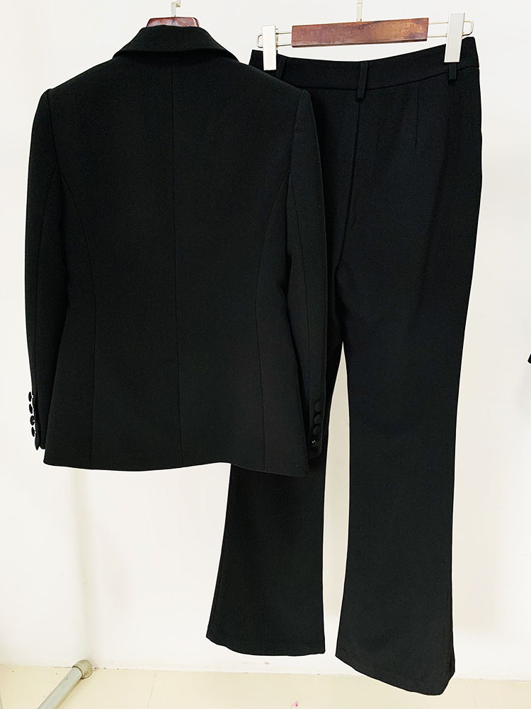 Decorative One Button Blazer Bell Bottom Pants Suit Two Piece Set