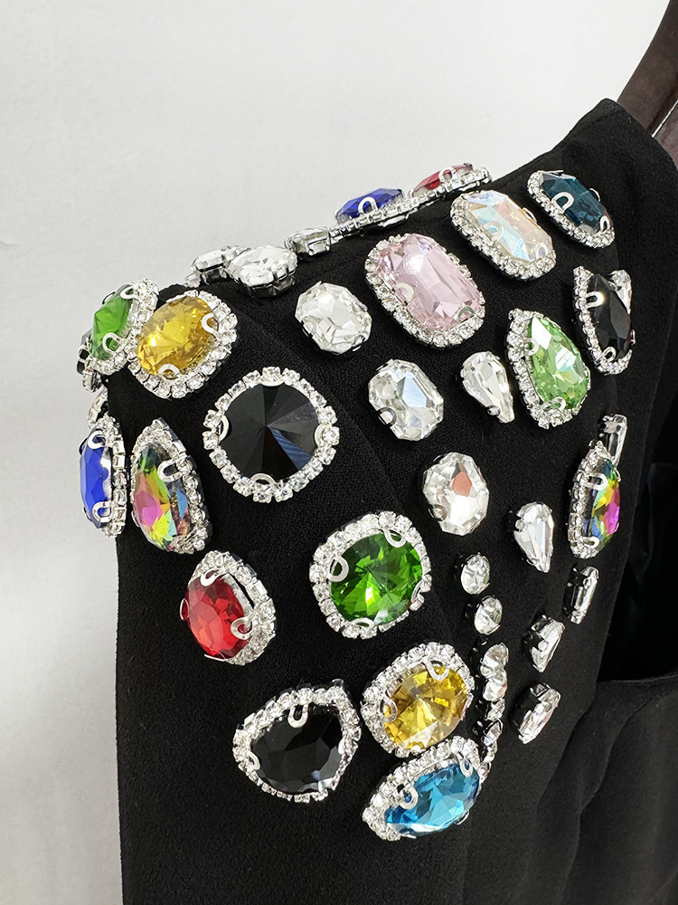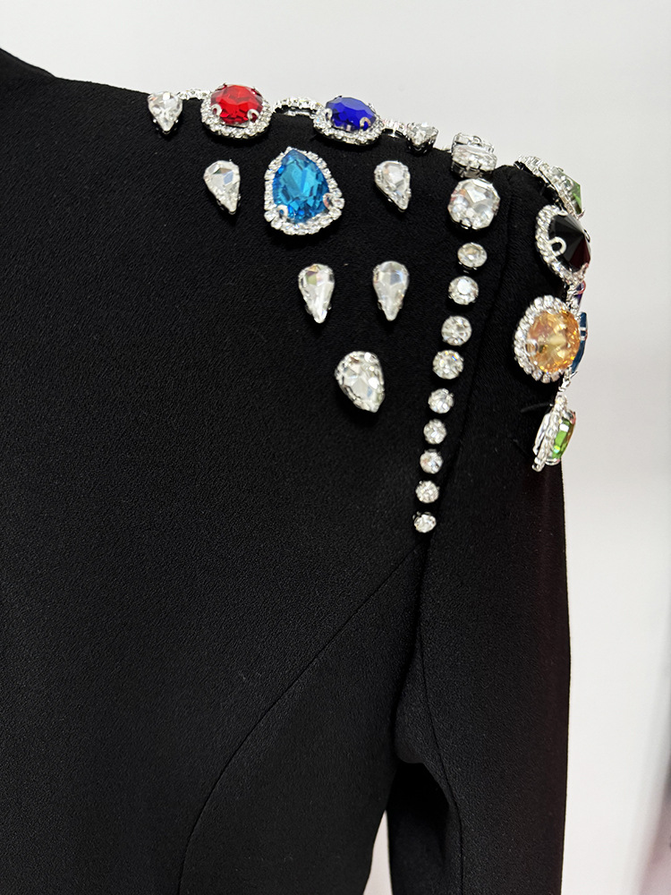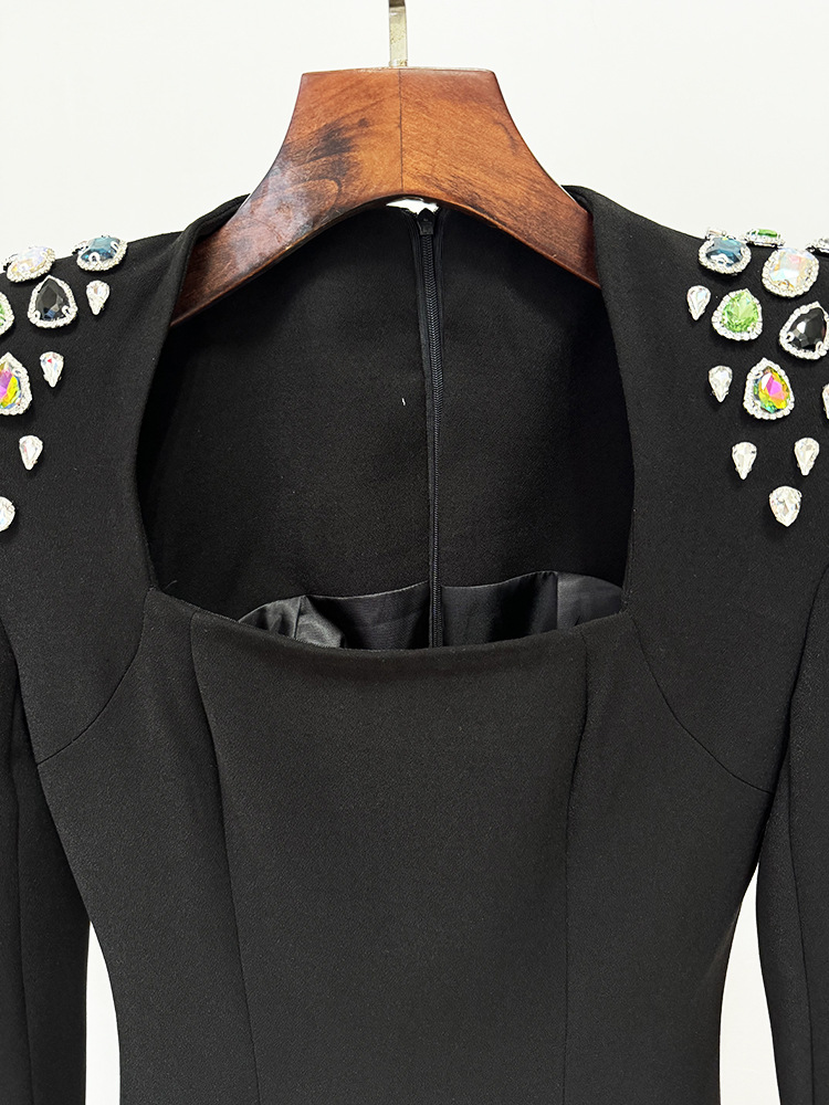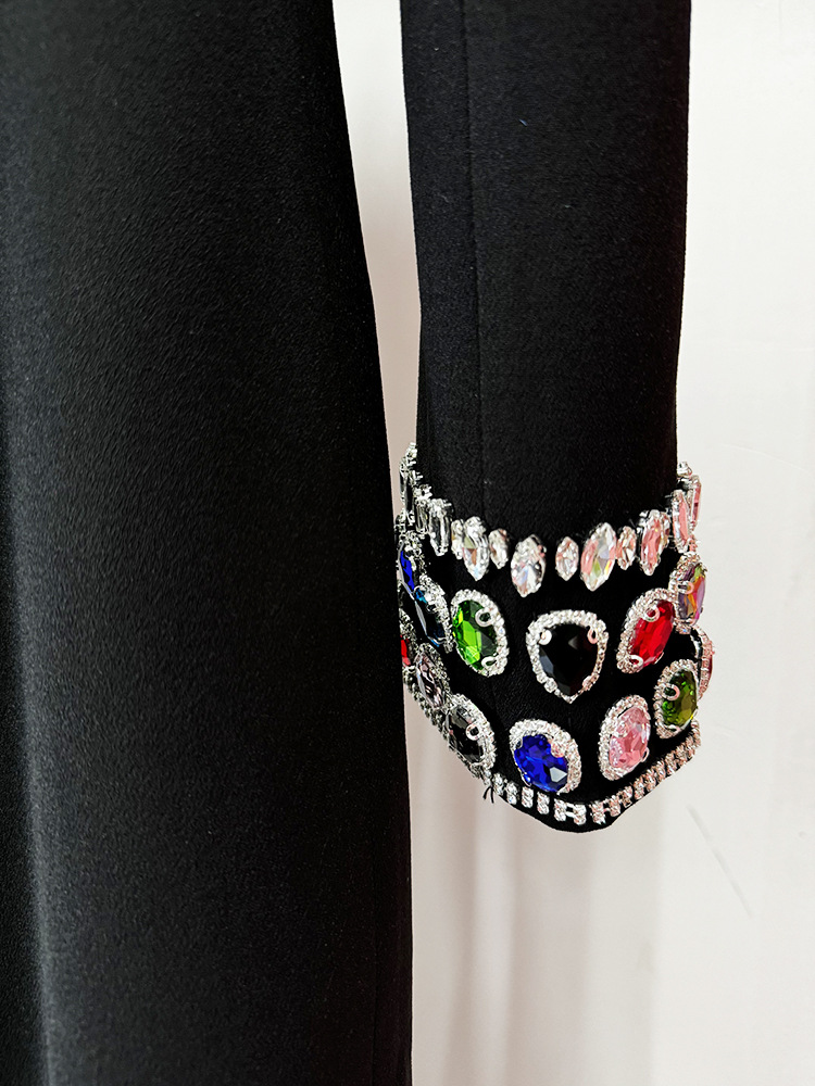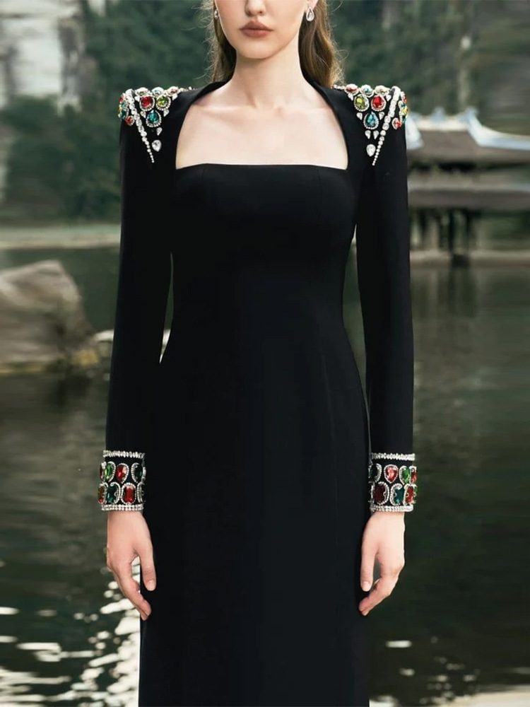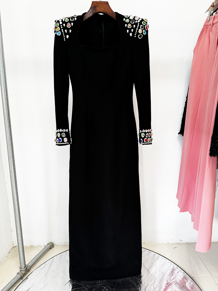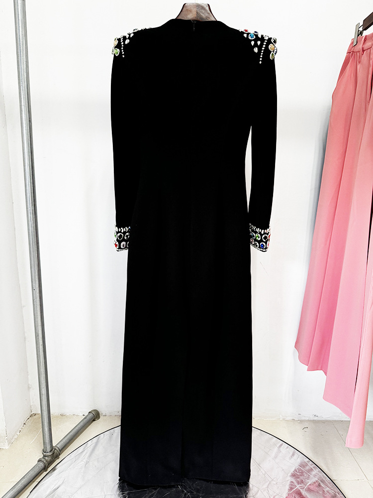 Elegant Heavy Industry Gem Diamond Long Sleeve Maxi Dress Formal Dress
