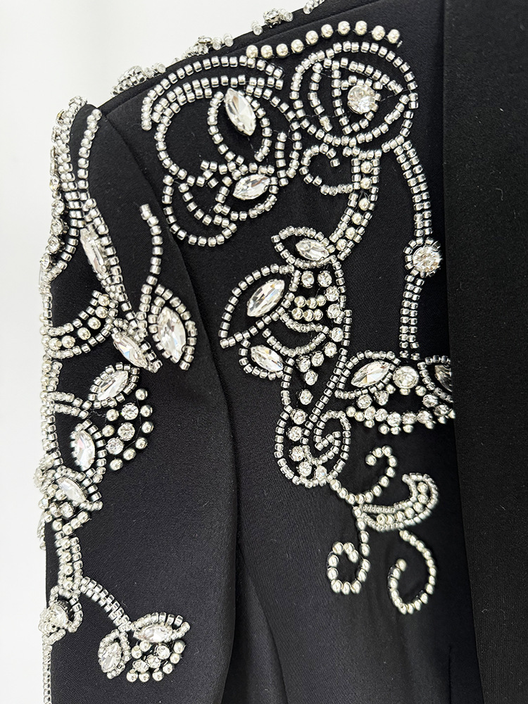 Exquisite Rhinestone Beaded Blazer Split Fishtail Dress
