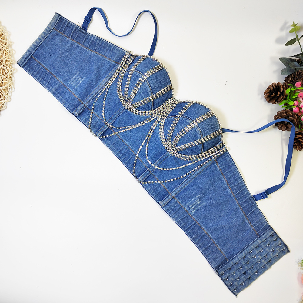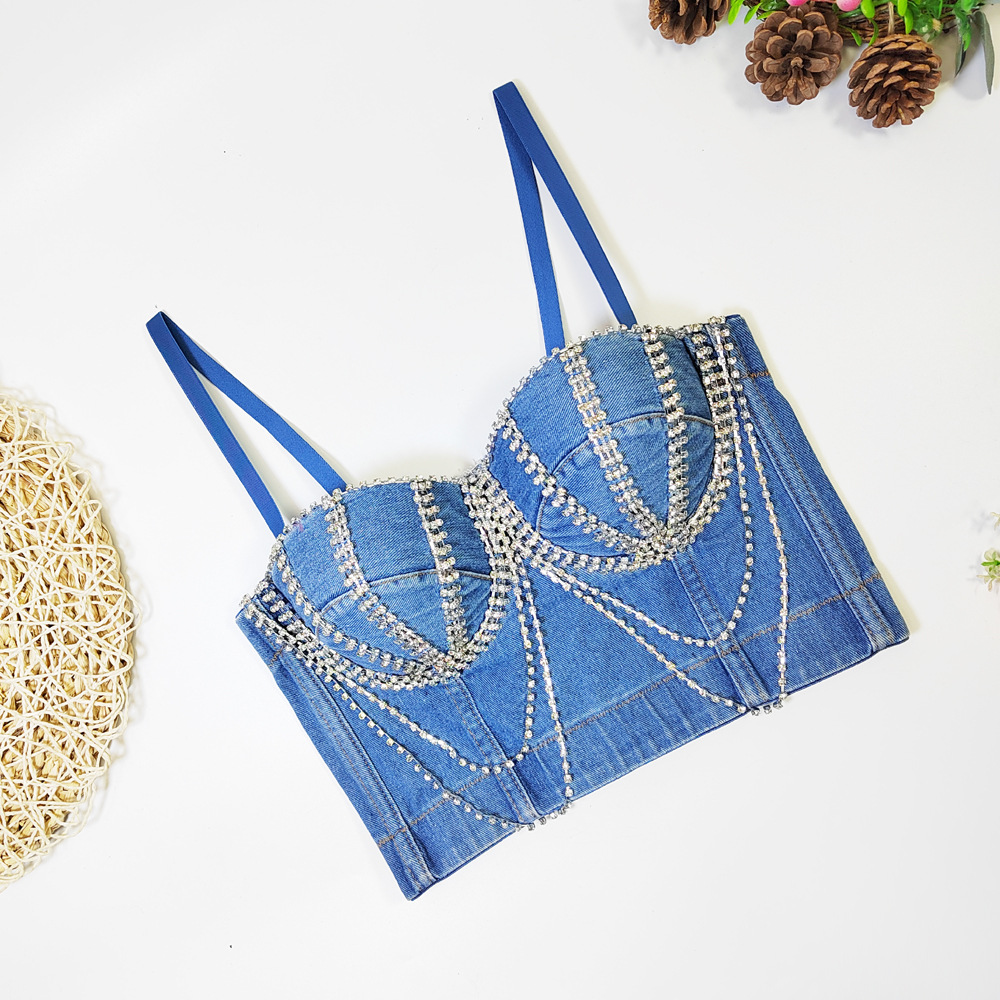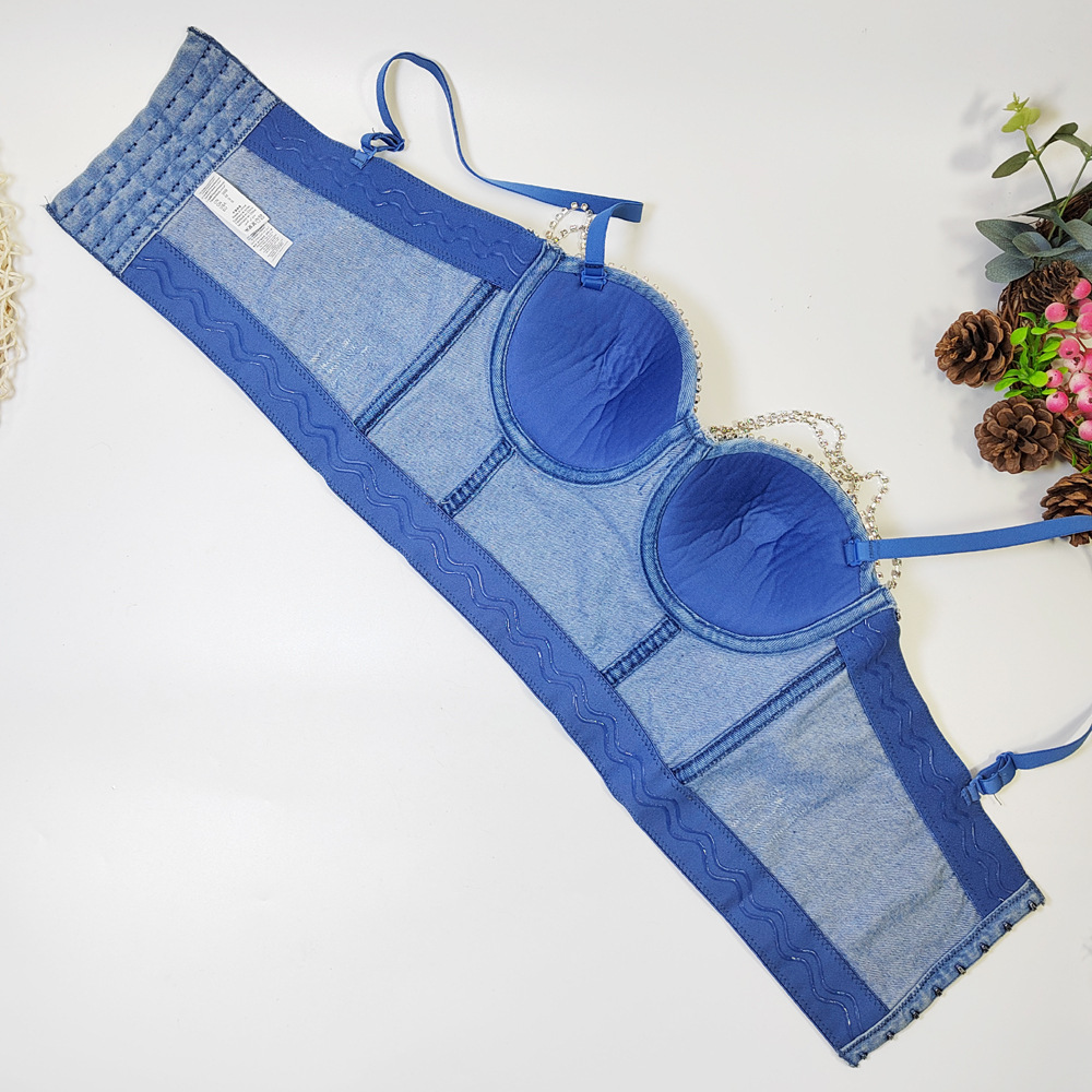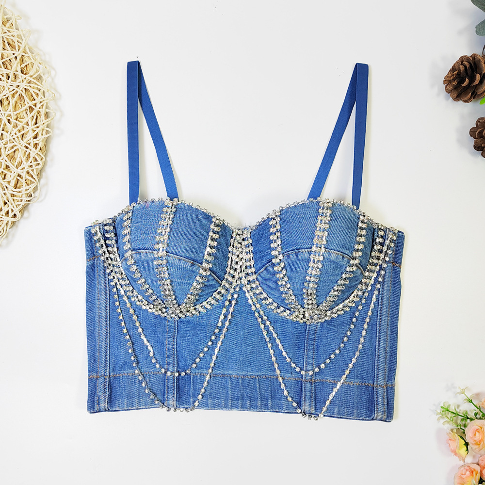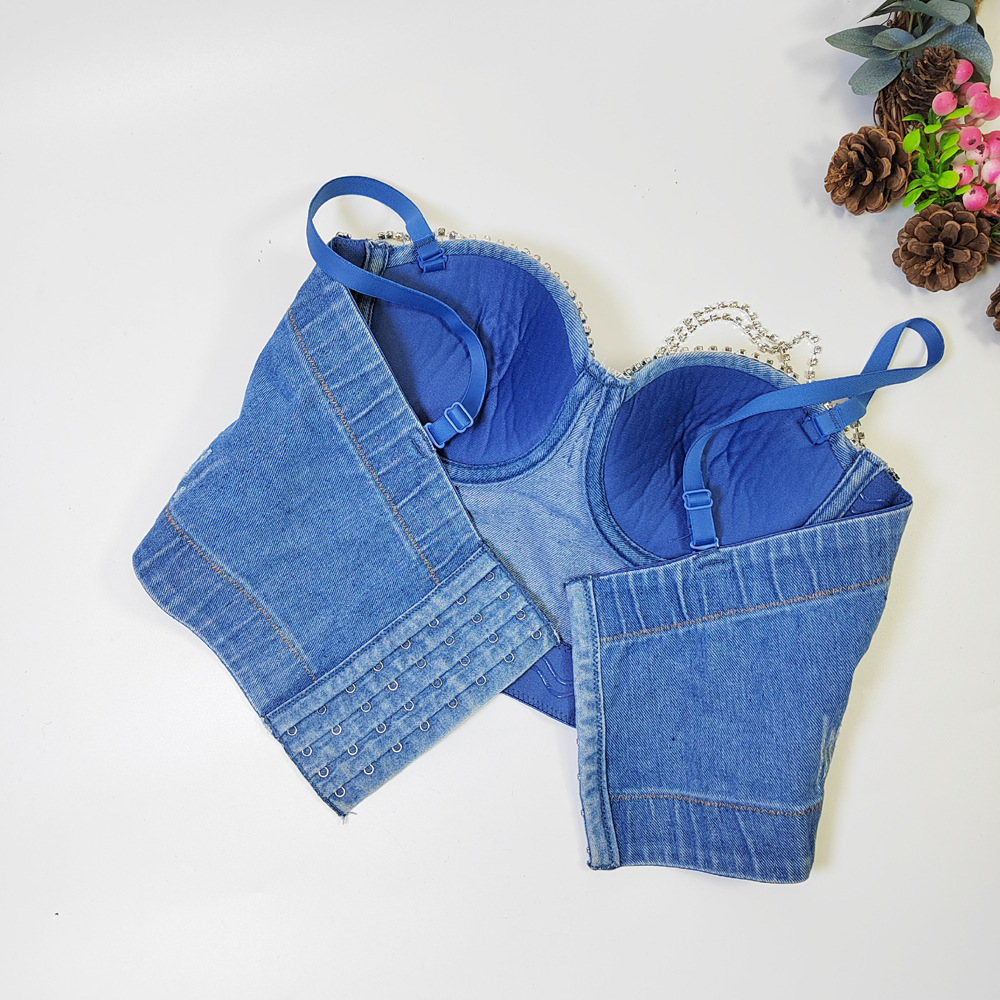 Girls Denim Spaghetti Straps Outerwear Boning Corset Corset Vest Corset With Chest Pad