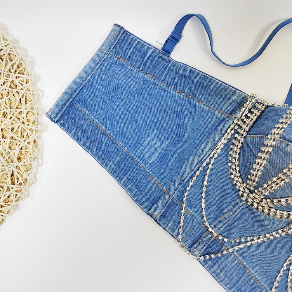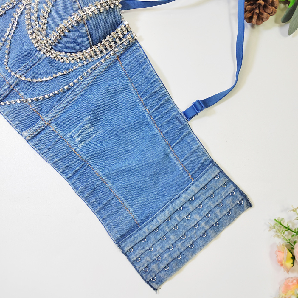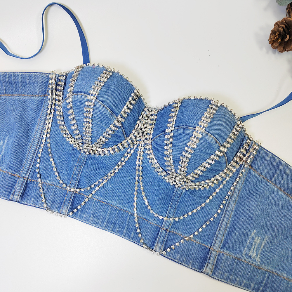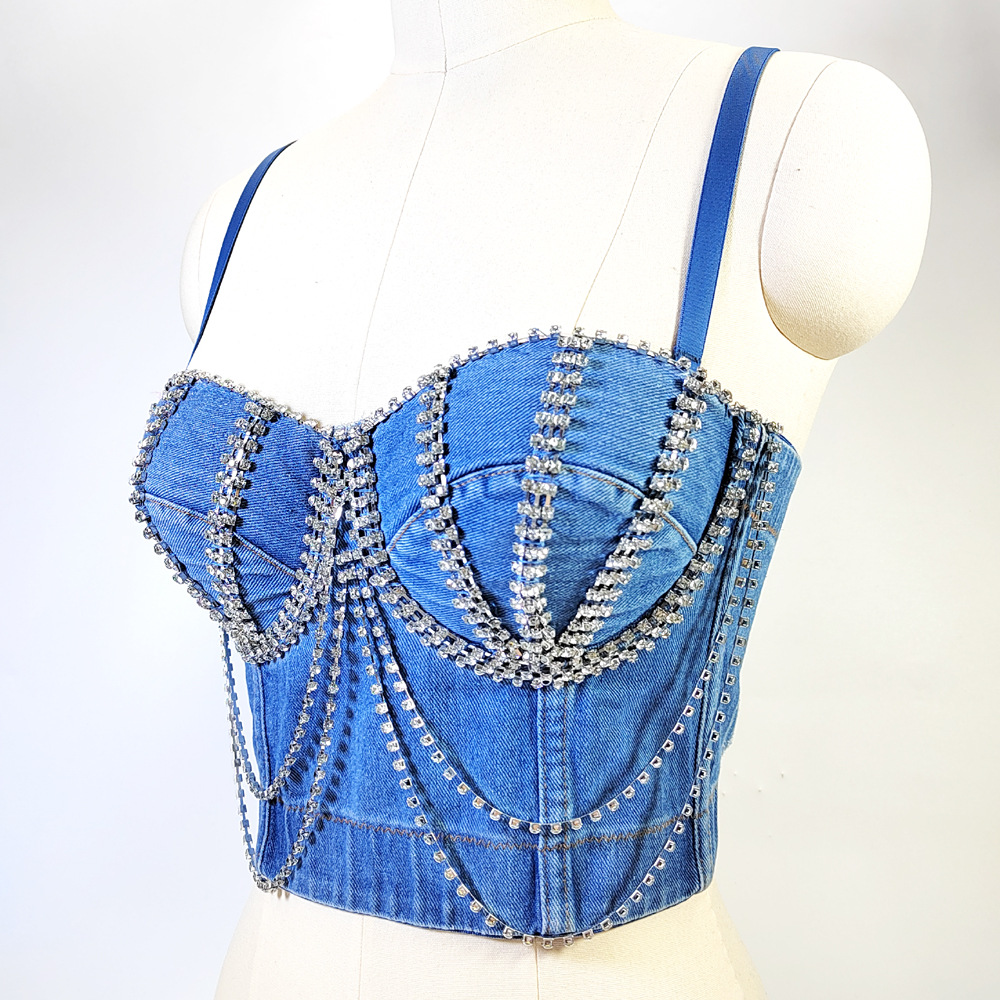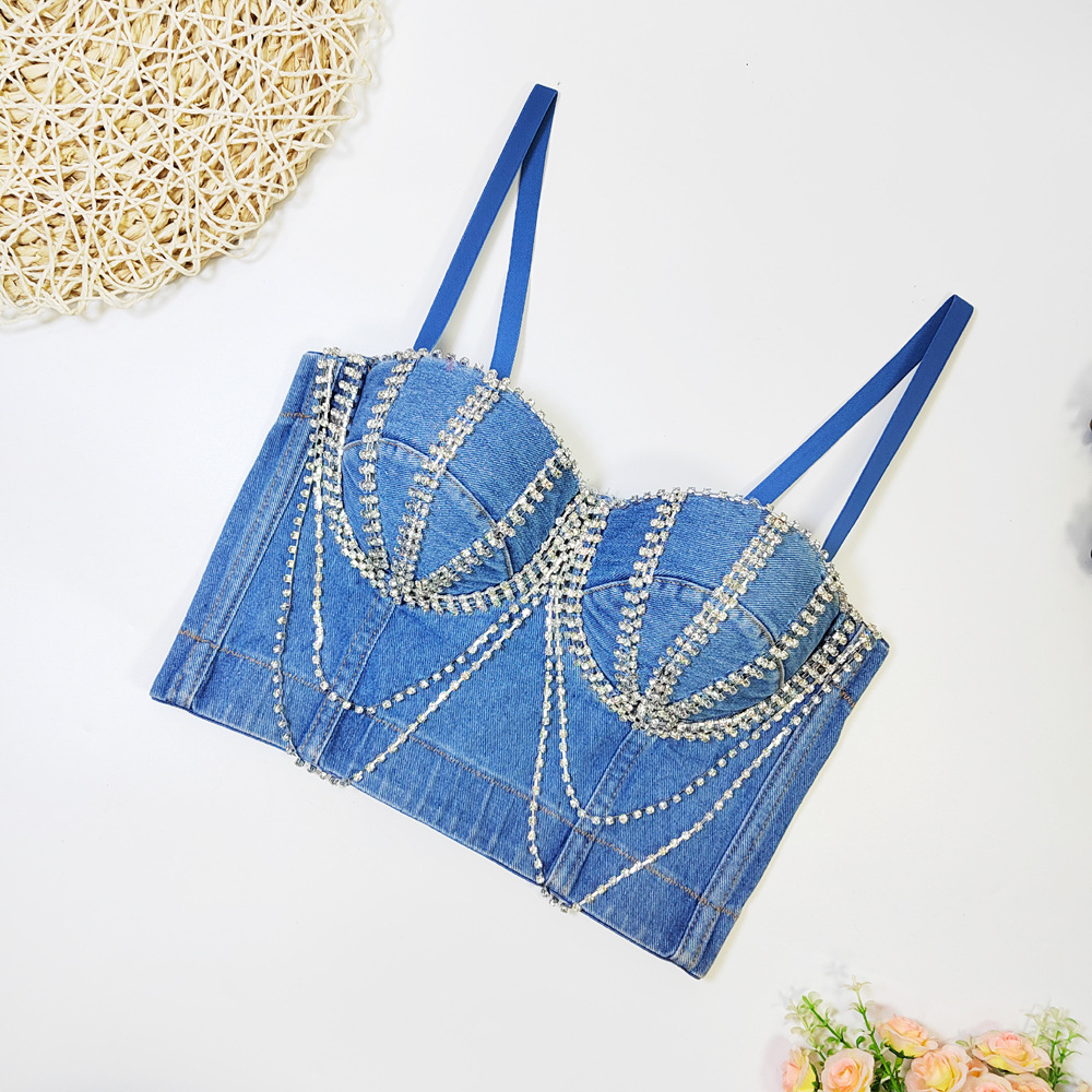 Girls Denim Spaghetti Straps Outerwear Boning Corset Corset Vest Corset With Chest Pad