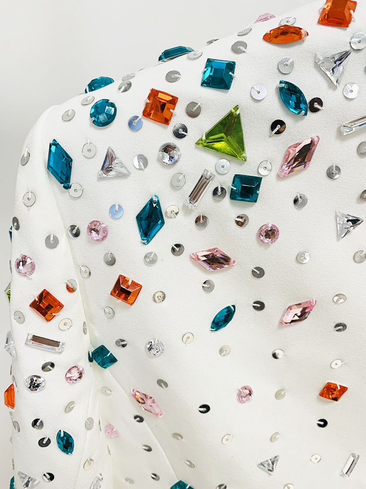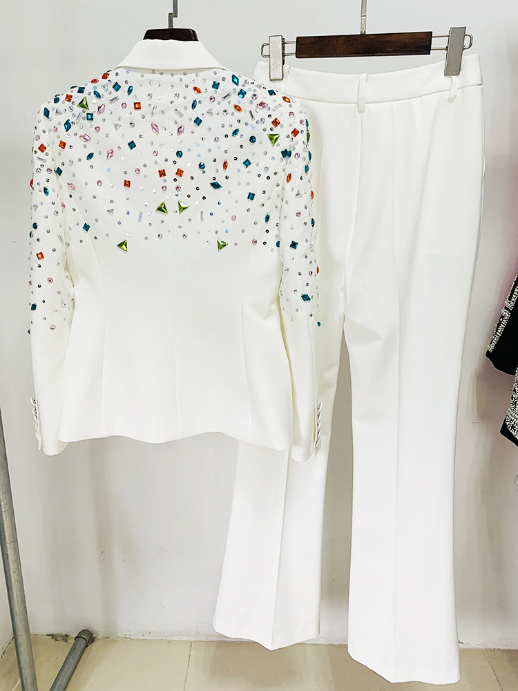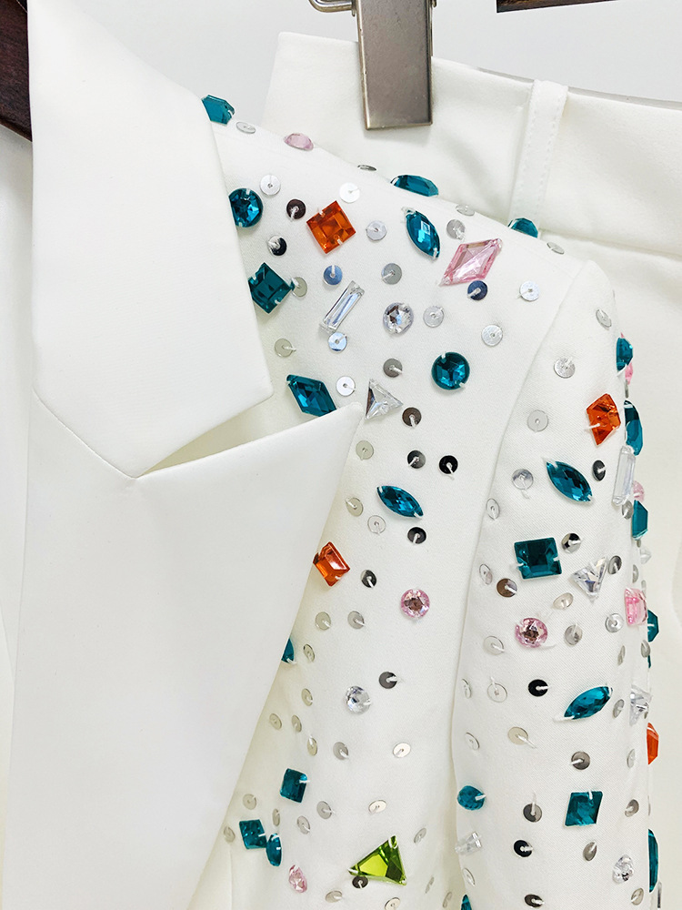 Goods Heavy Industry Beaded Colored Diamond Slim Fit Blazer Skinny Pants Suit Two Pieces