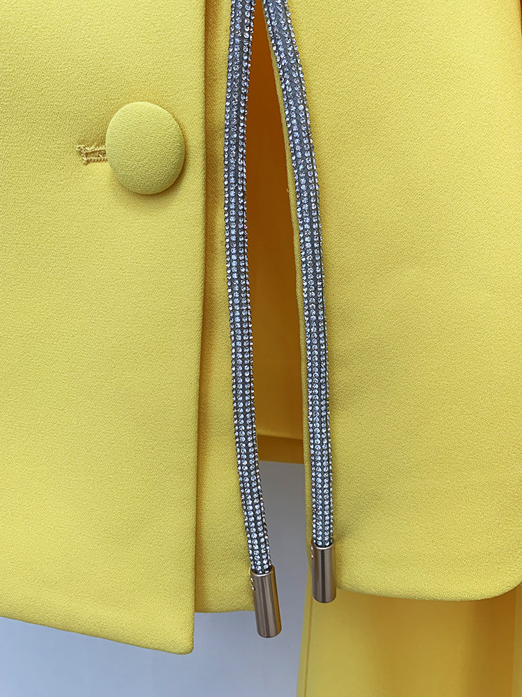 Goods Stars Graceful Fashionable Diamond Strip Split Suit Straight Leg Pants Suit Two Piece Set