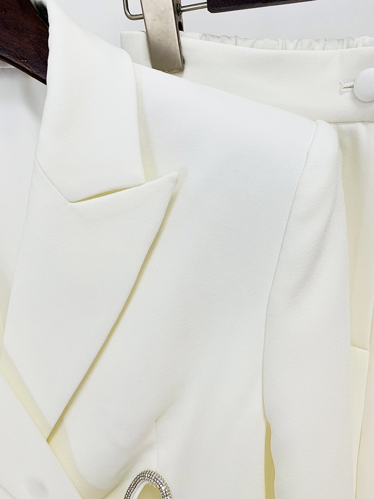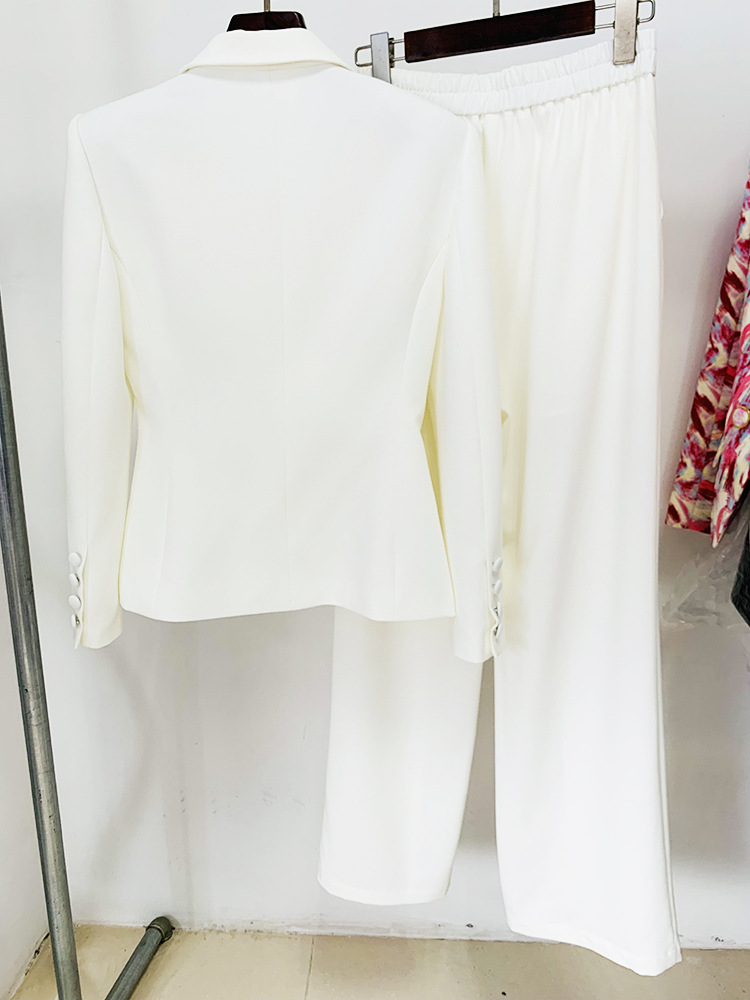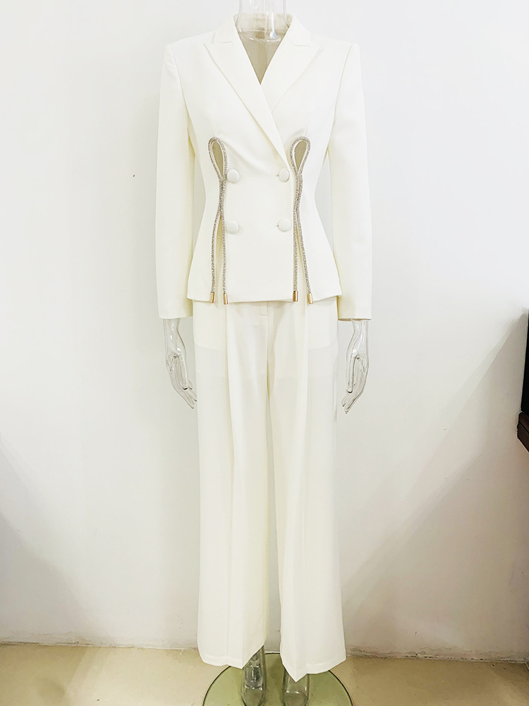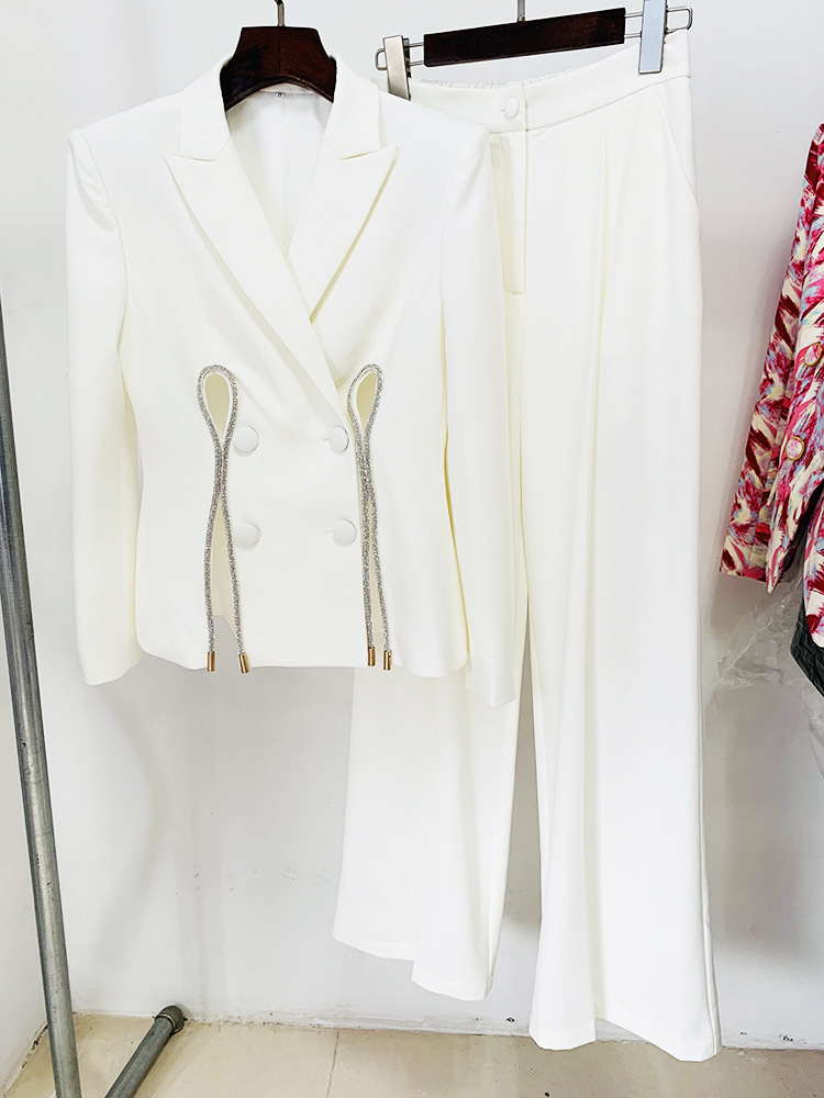 Graceful Fashionable Diamond Strip Split Straight Leg Pants Two Piece Set