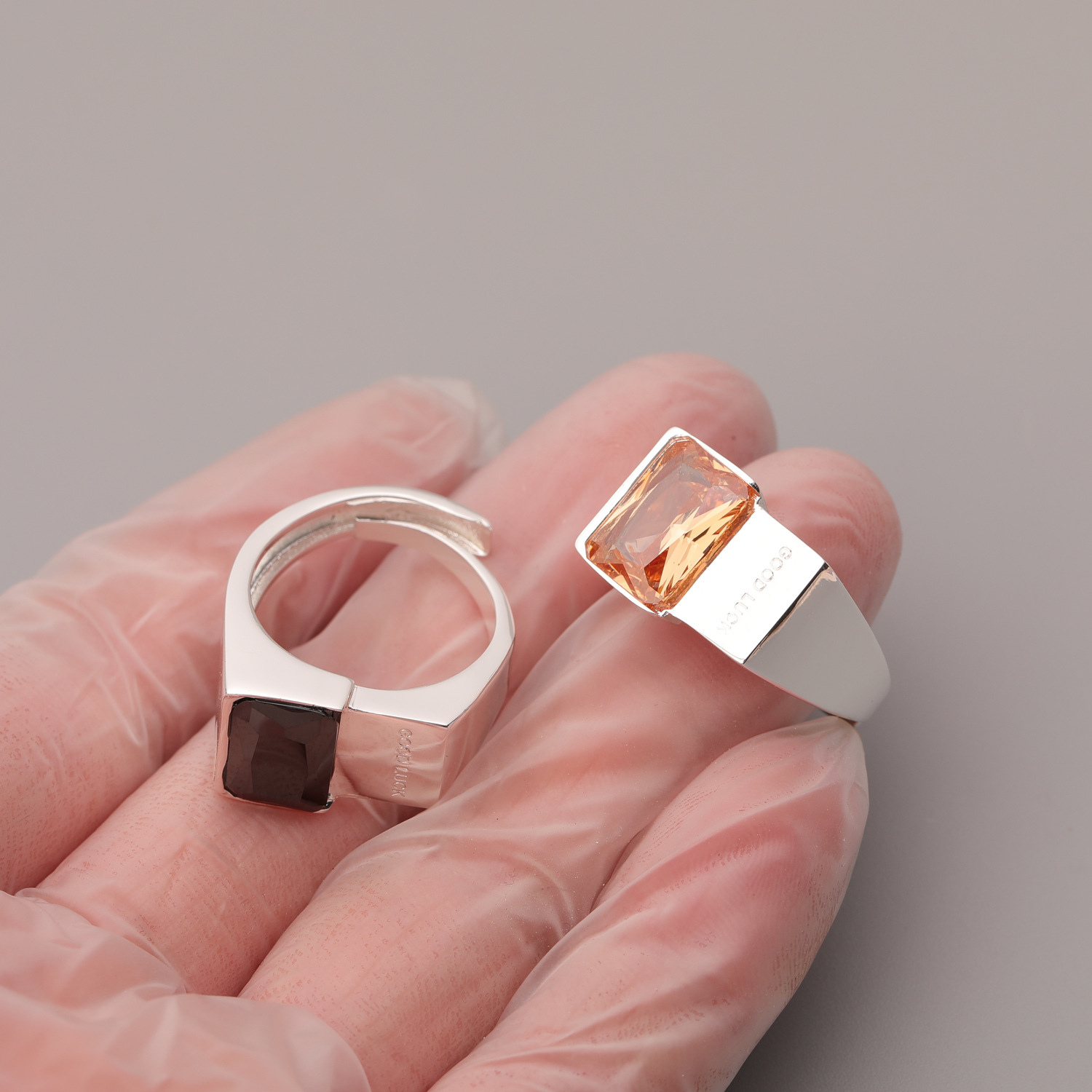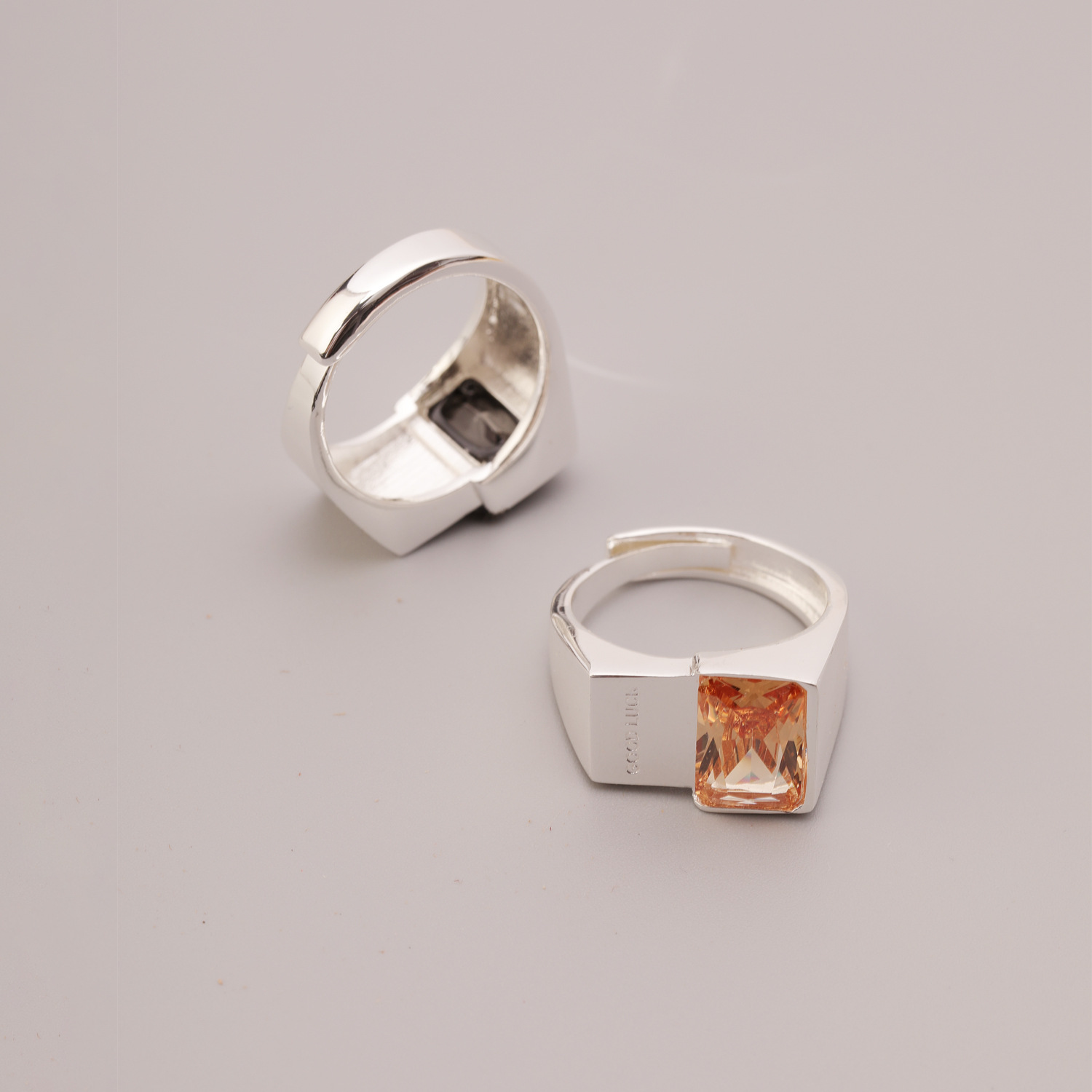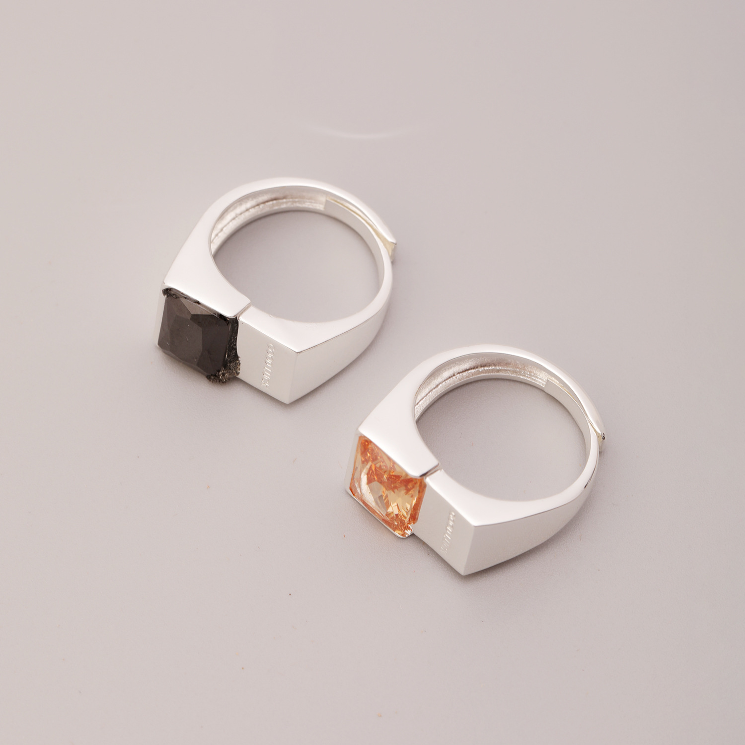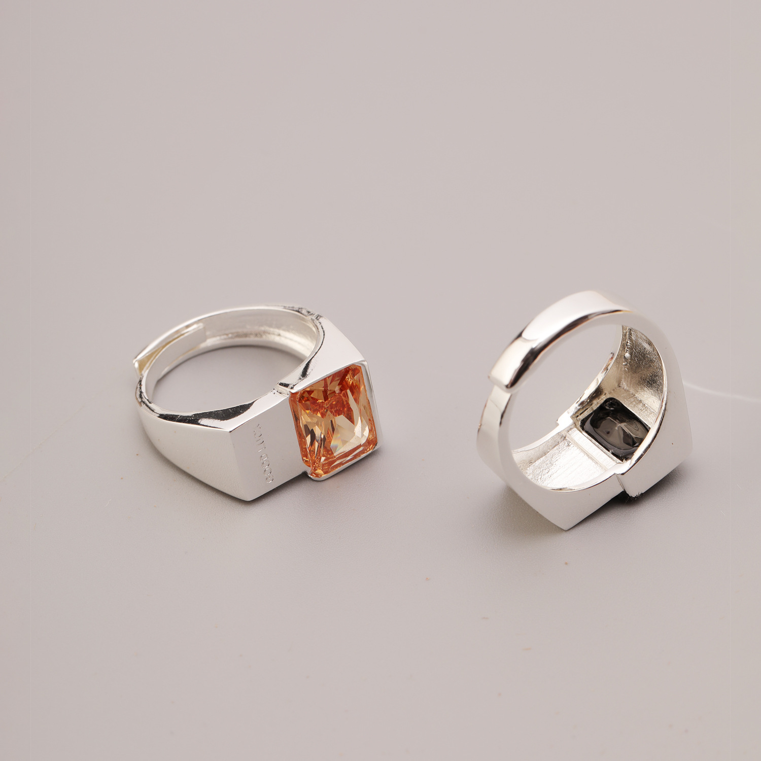 Graphic Square Diamond Ring Women Retro Minimalism Open Ring Hip Hop Index Finger Ring Accessories