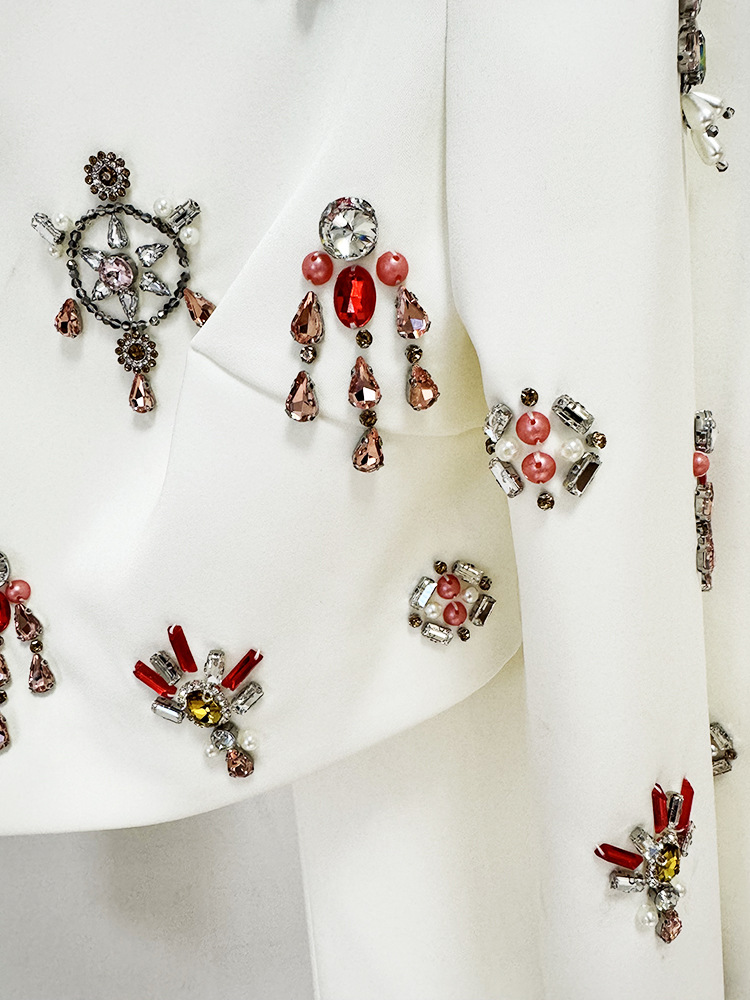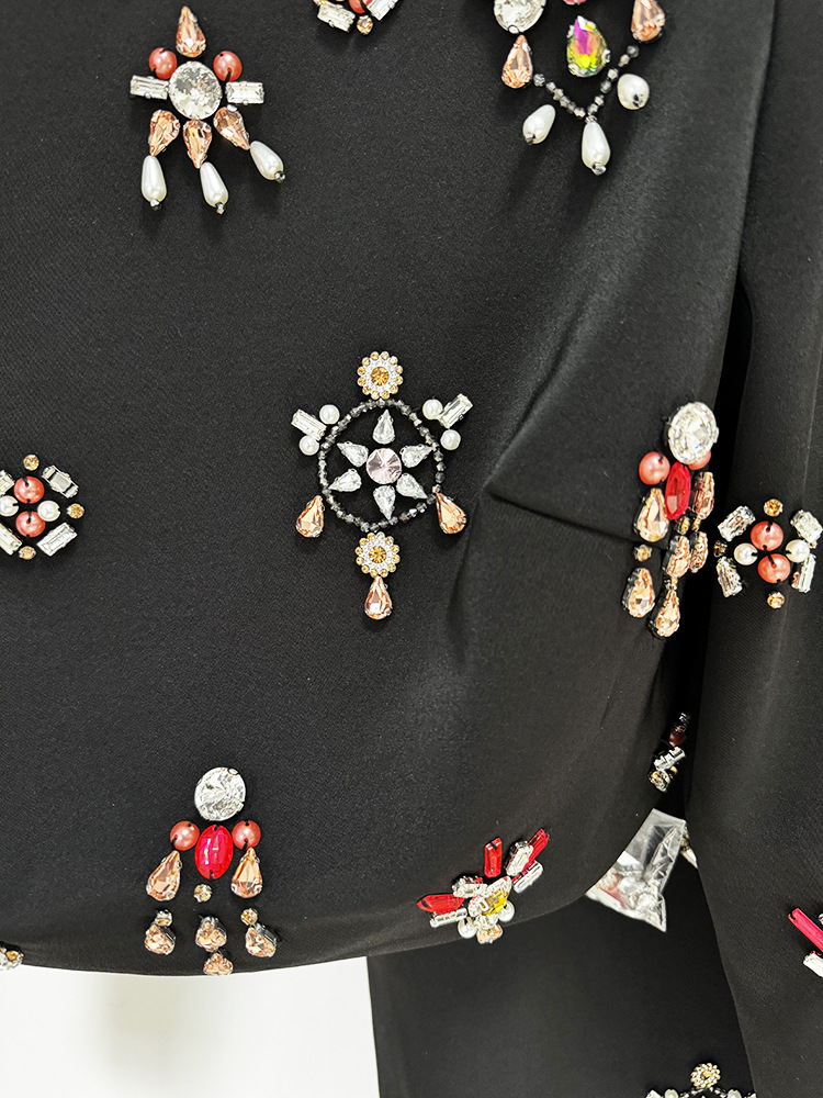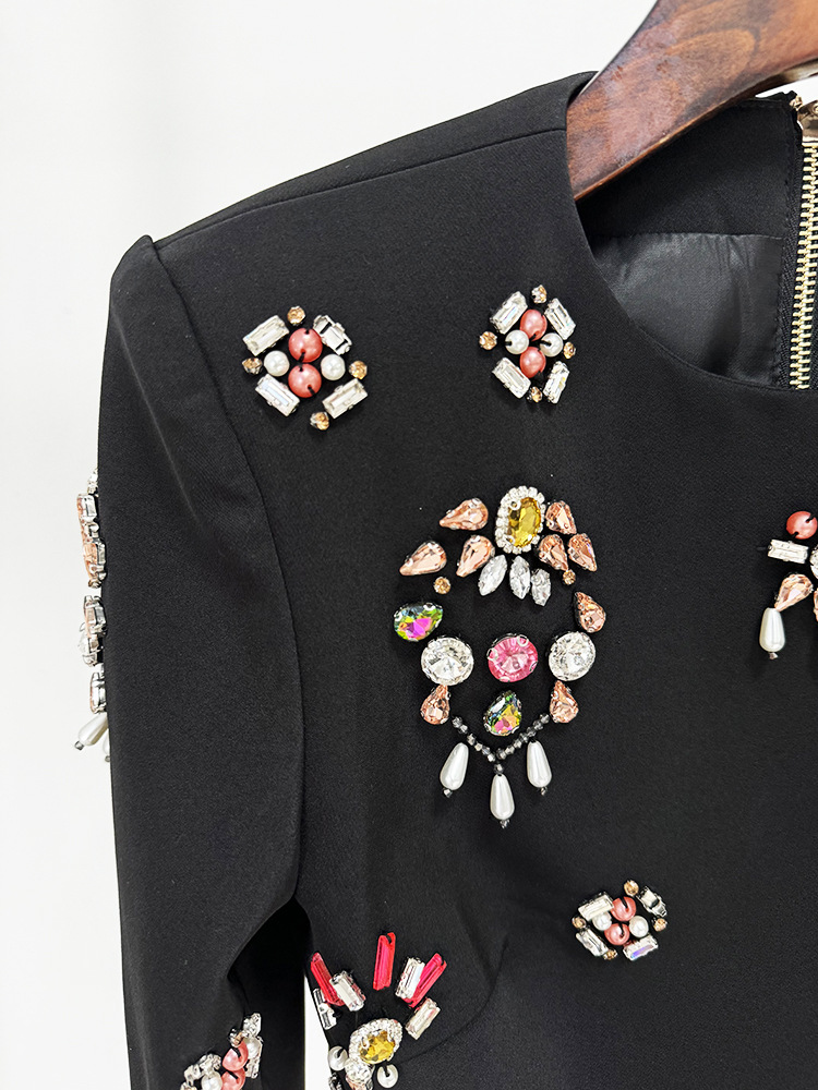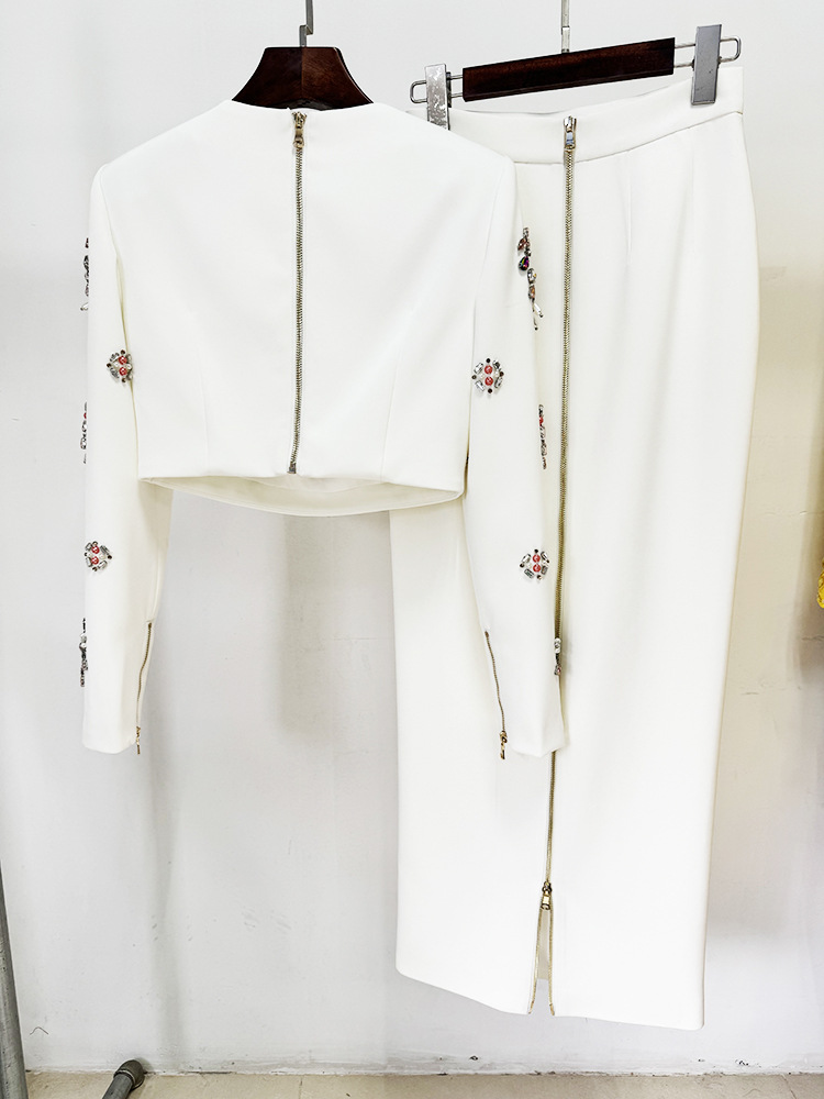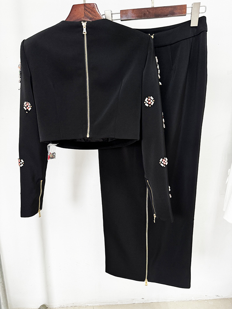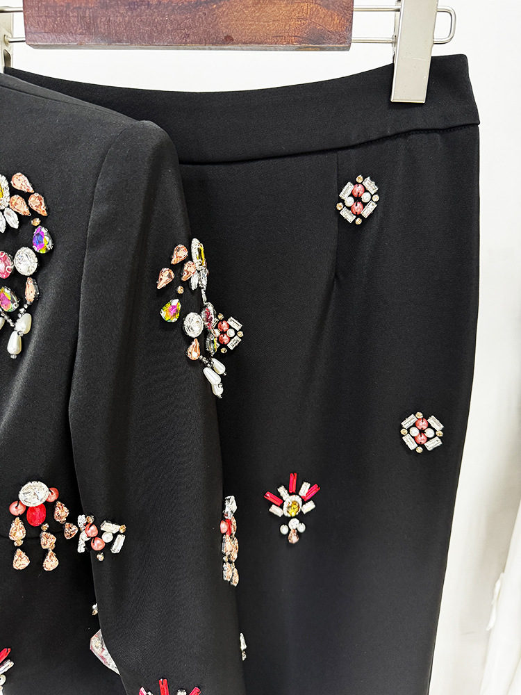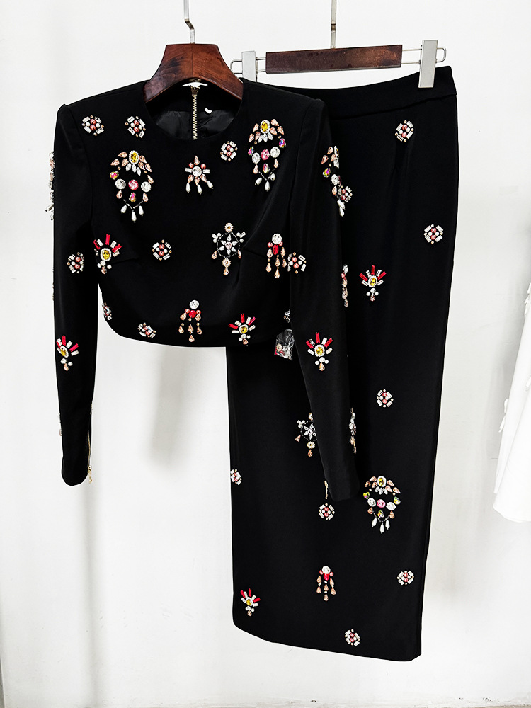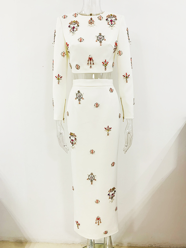 Heavy Industry Beads Diamond Inlaid Short Top Skirt Set Two Piece Set