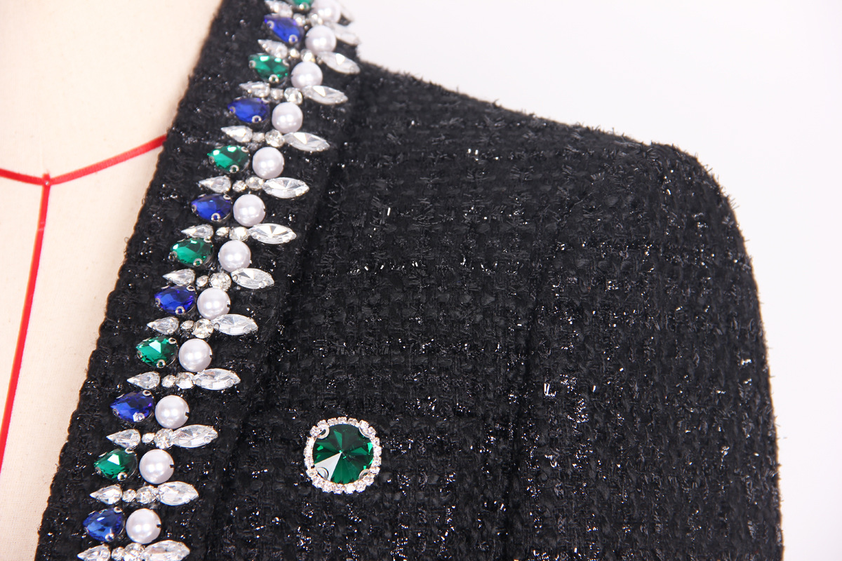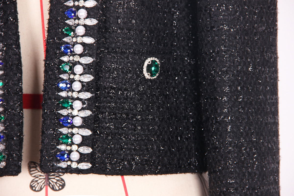 High Quality Lady Temperamental Office Black Premium Heavy Industry Beads Top Woolen Cardigan Coat
