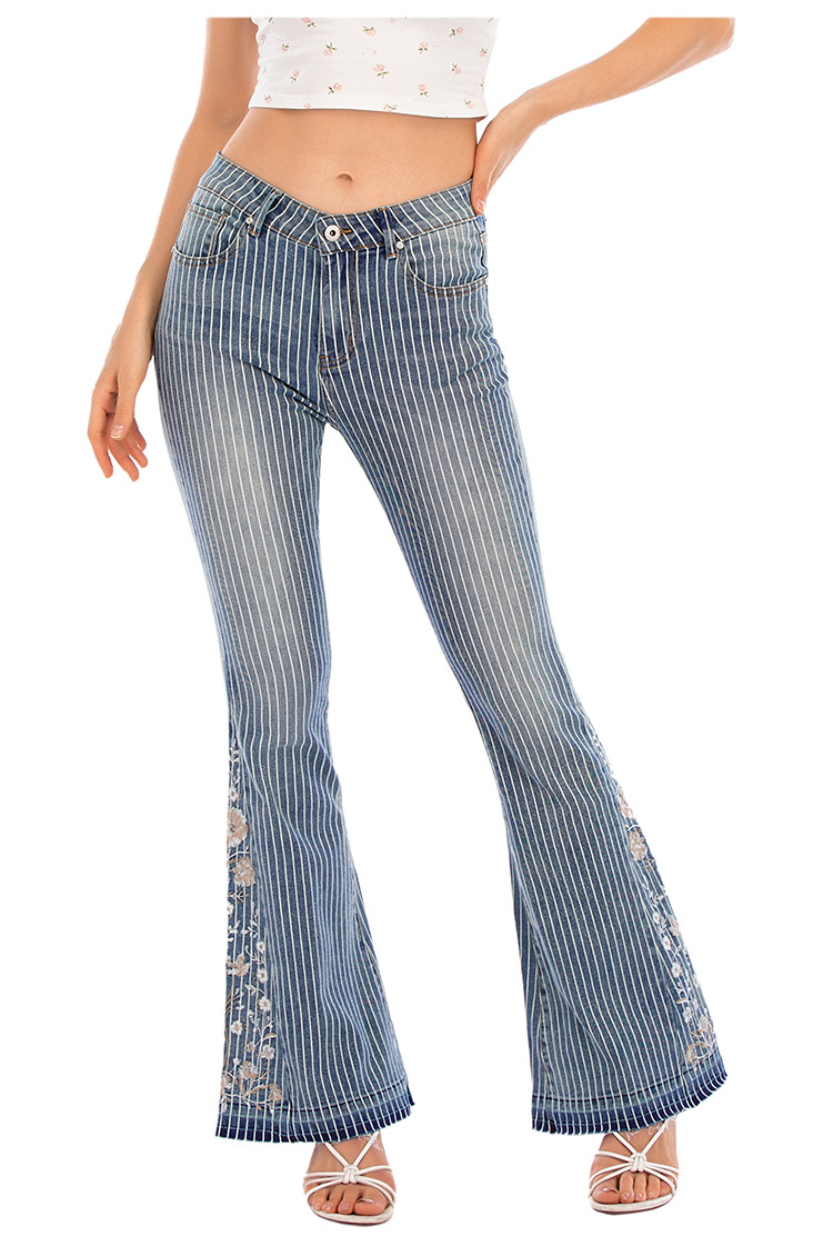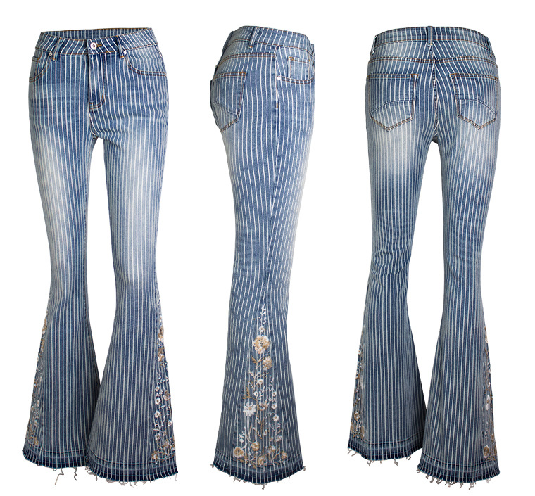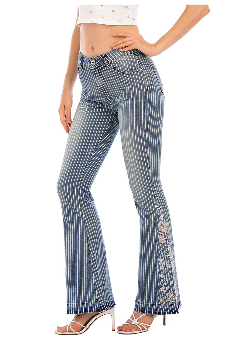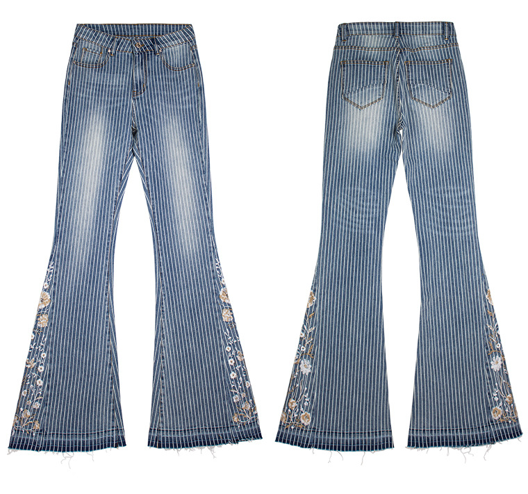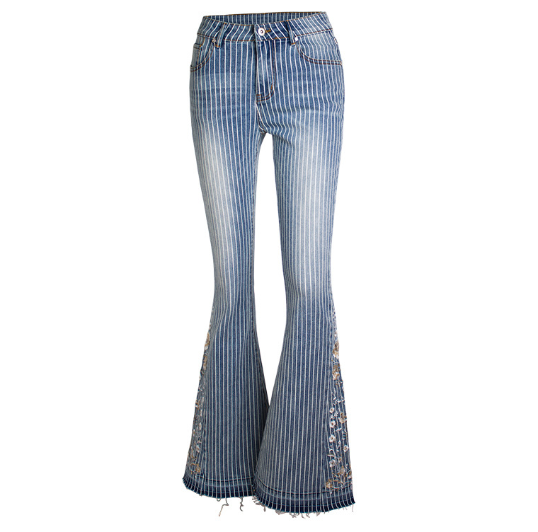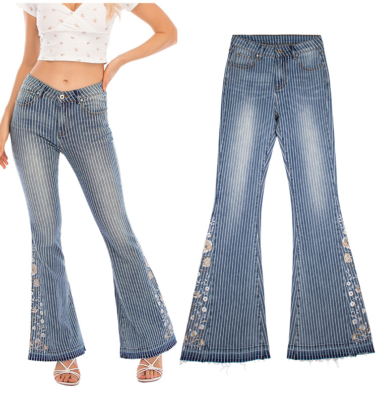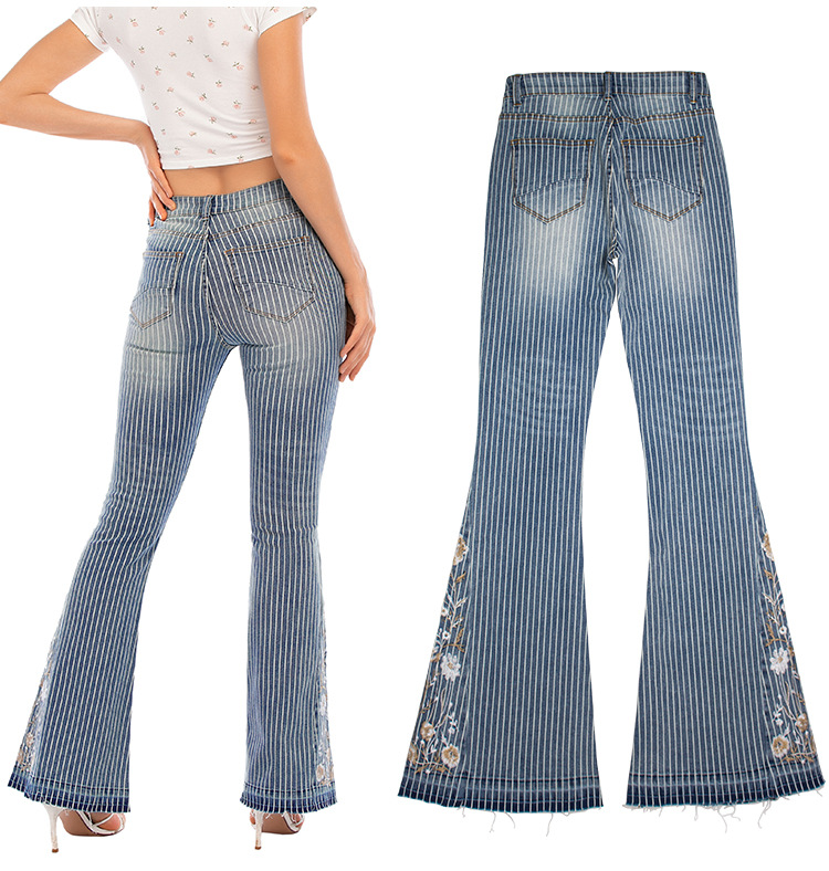 Jeans Women Women Jeans Trousers Striped Bell-Bottom Pants Plus Size