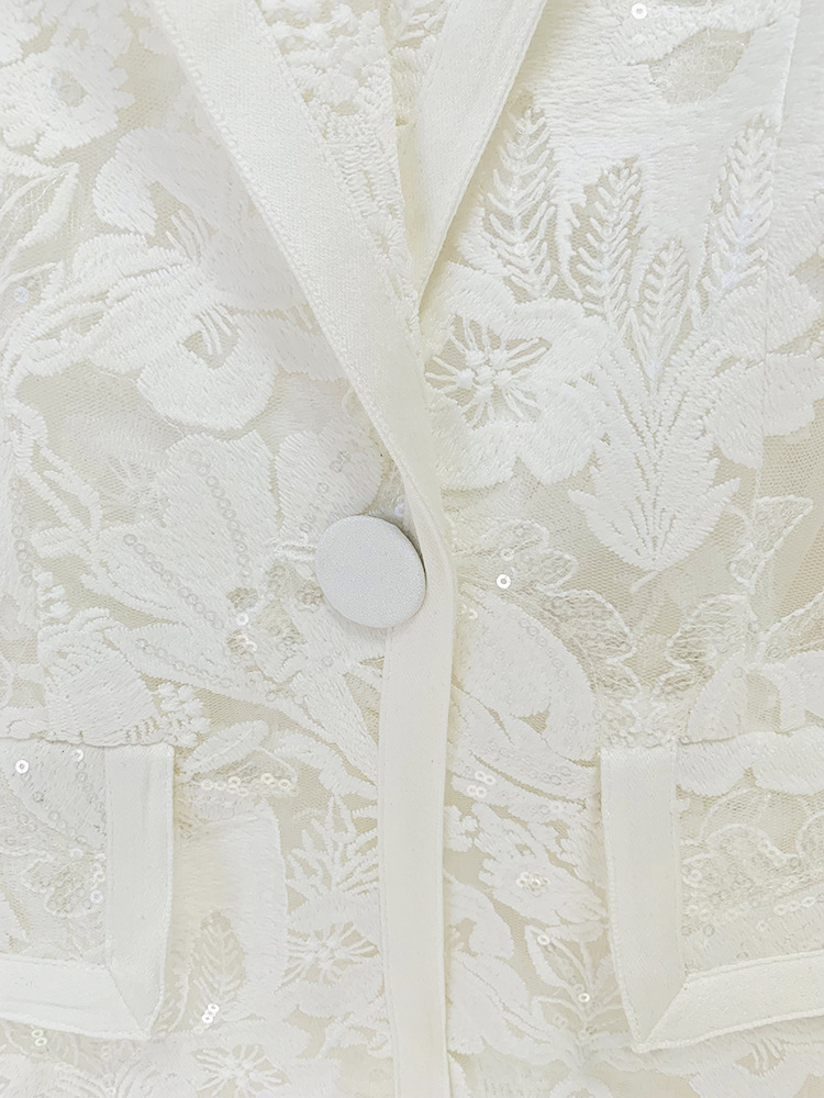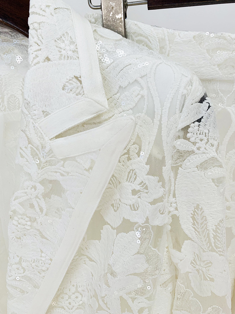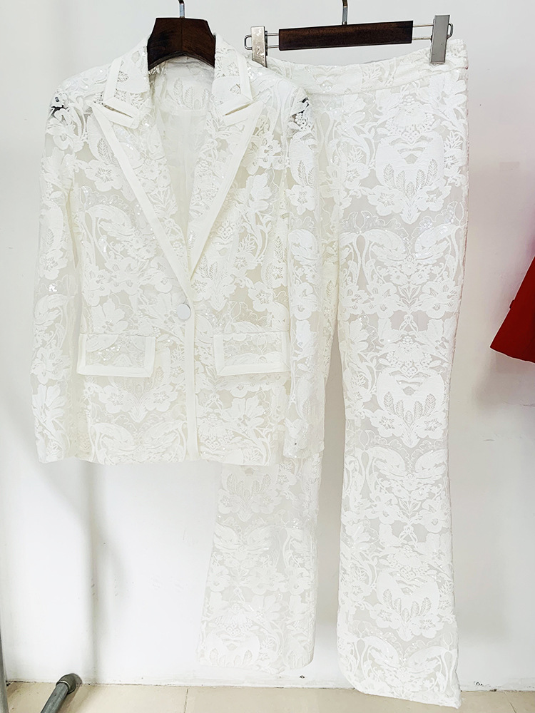 Mesh Heavy Embroidery Sequined Blazer Trousers Suit Two Piece Set