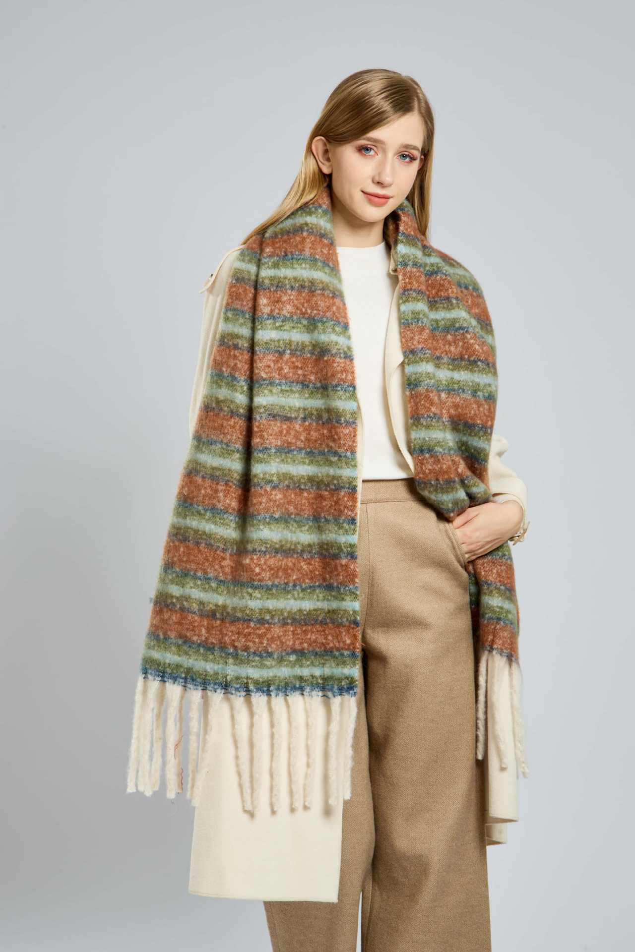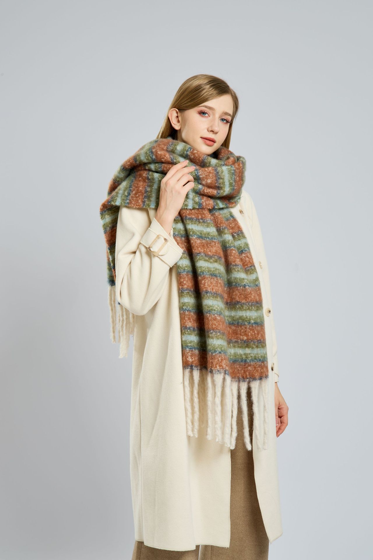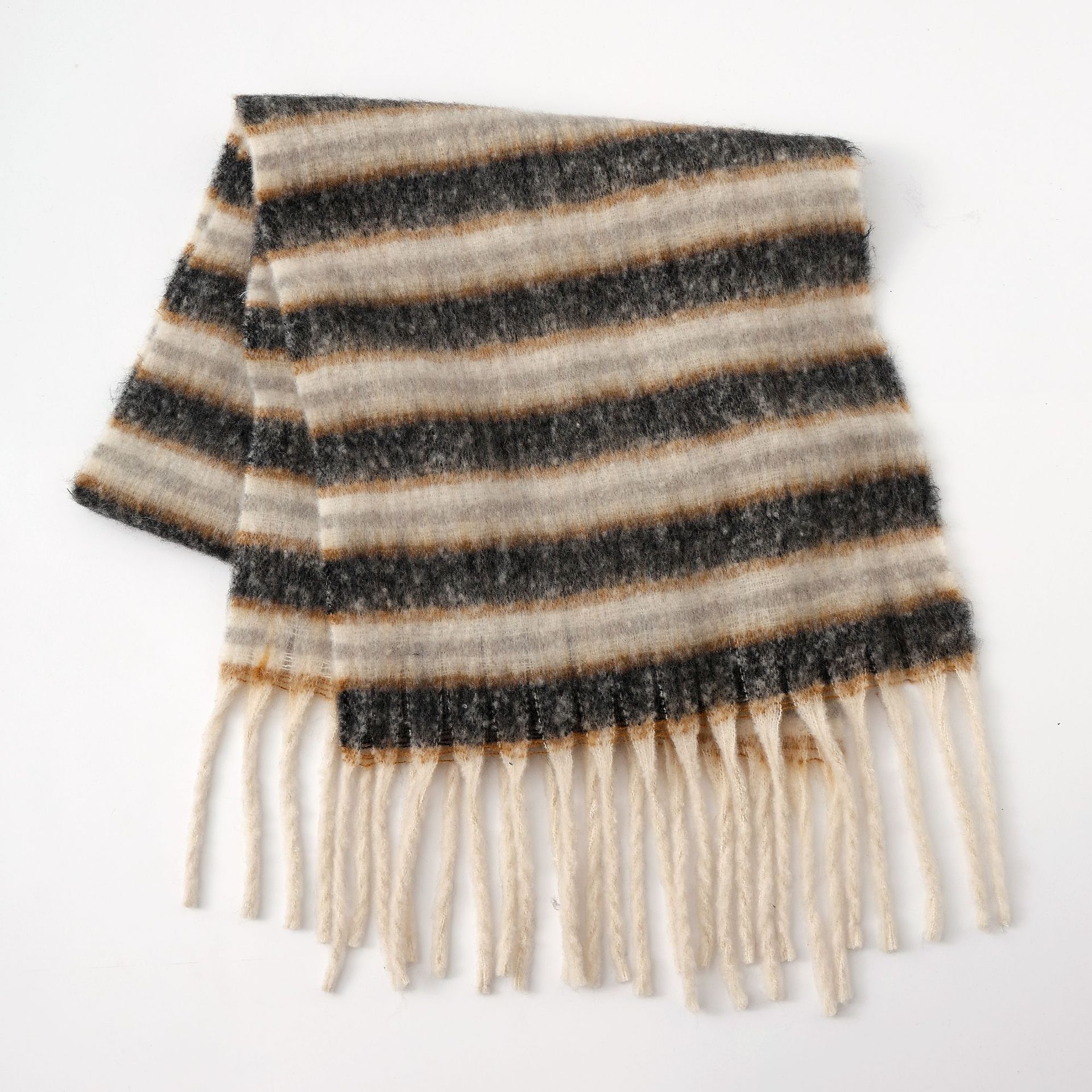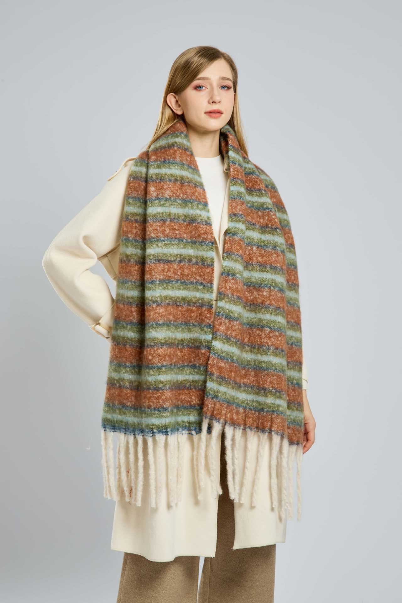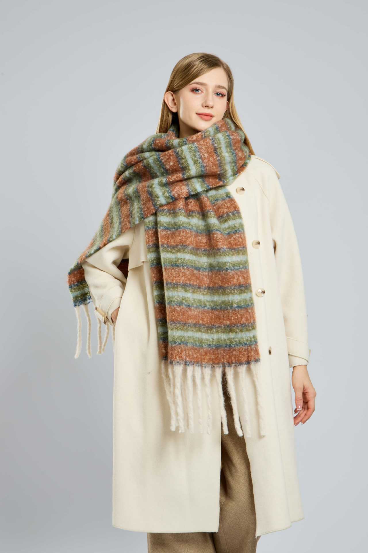 Mohair Winter Striped Scarf Women Warm Color Matching Cashmere High Grade Thickened Scarf Shawl