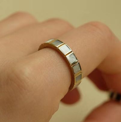 Multi Small Square White Lip Shell Polished Surface Ring High Quality Personalized Ring Women Accessories