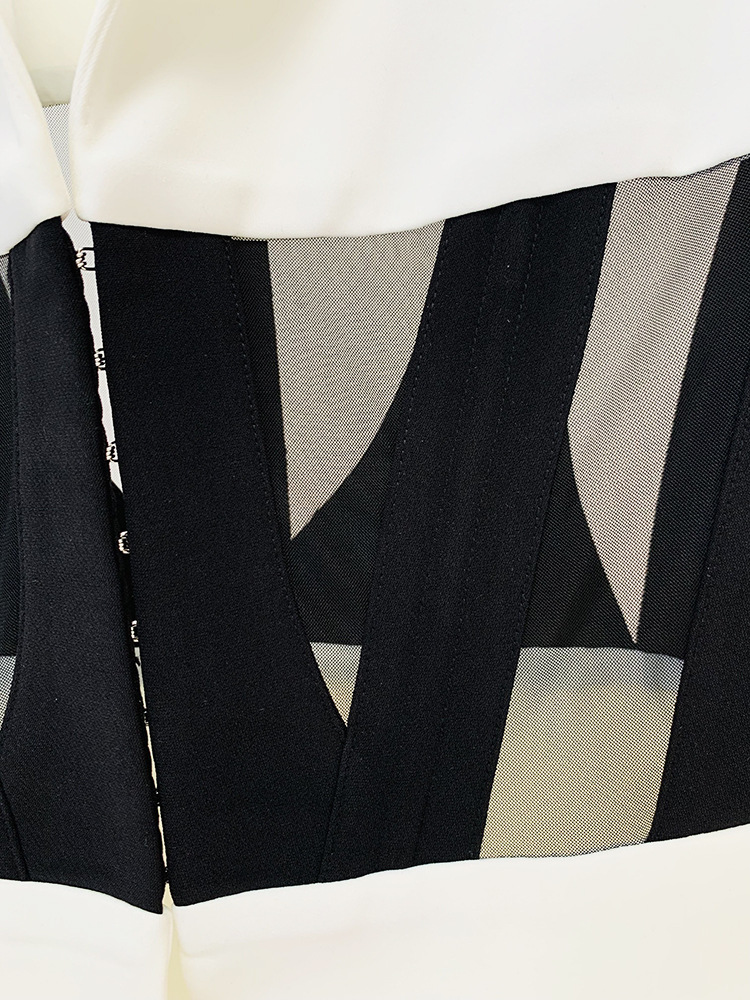 Personality Sheer Mesh Boning Corset Slim Fit Patchwork Blazer