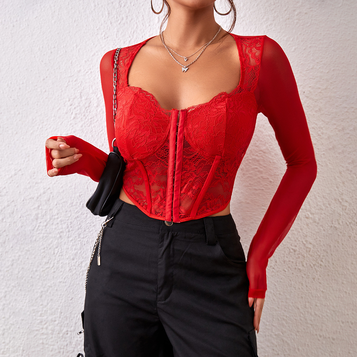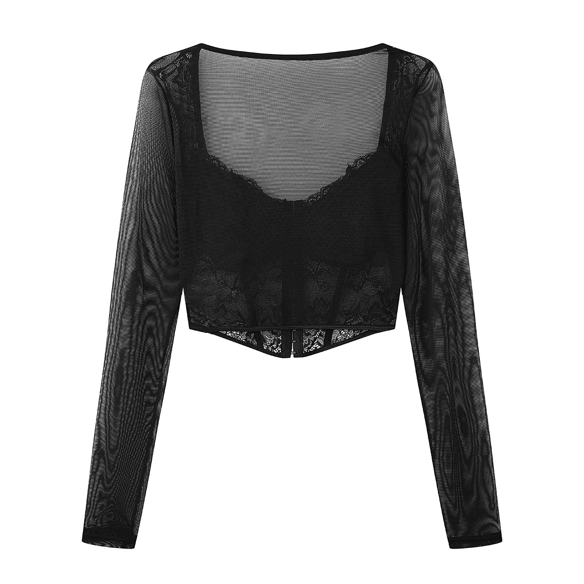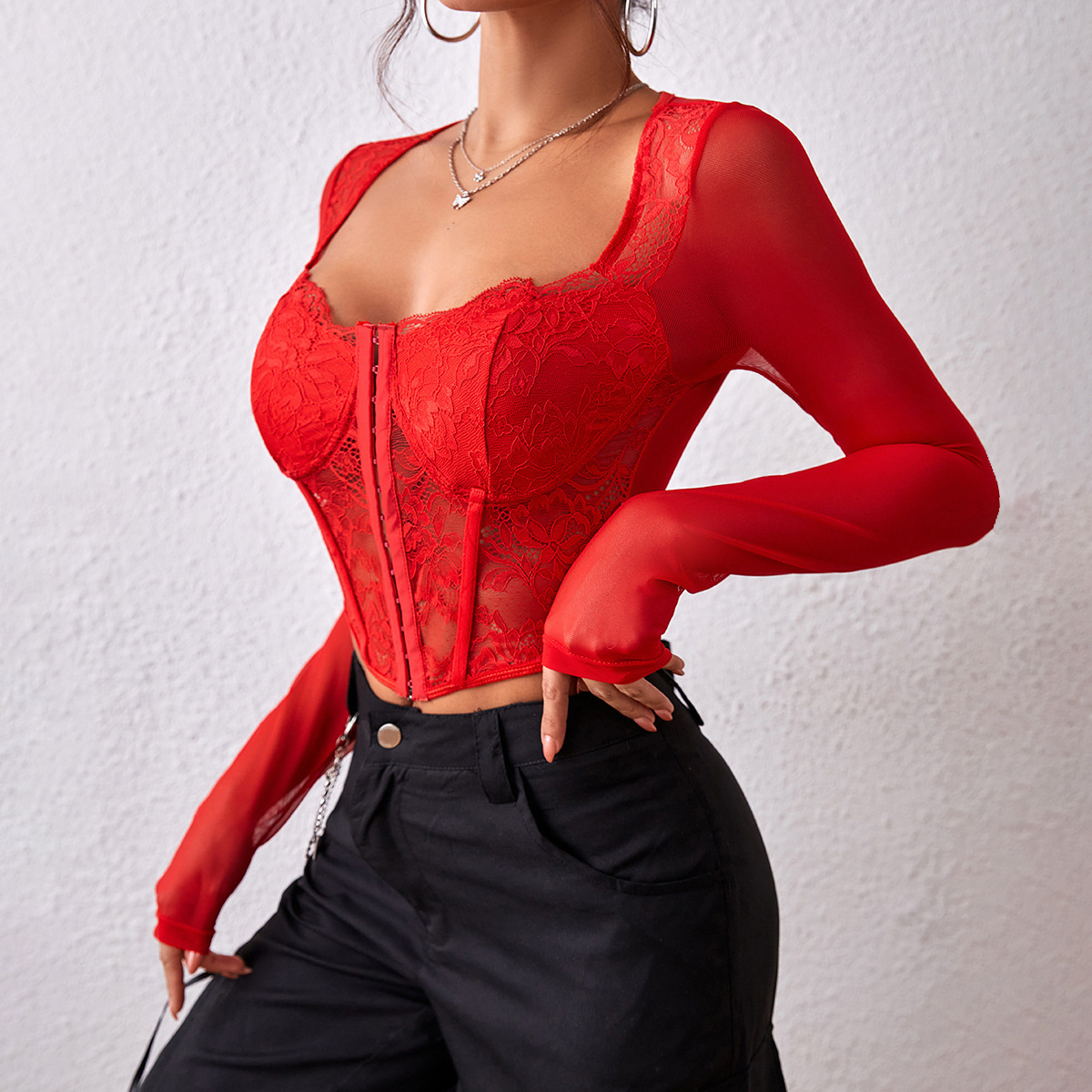 Sexy Lace Perspective Mesh Breasted Boning Corset Corset V-neck Sexy Top for Women