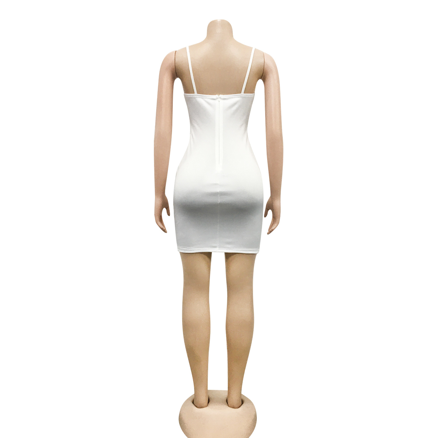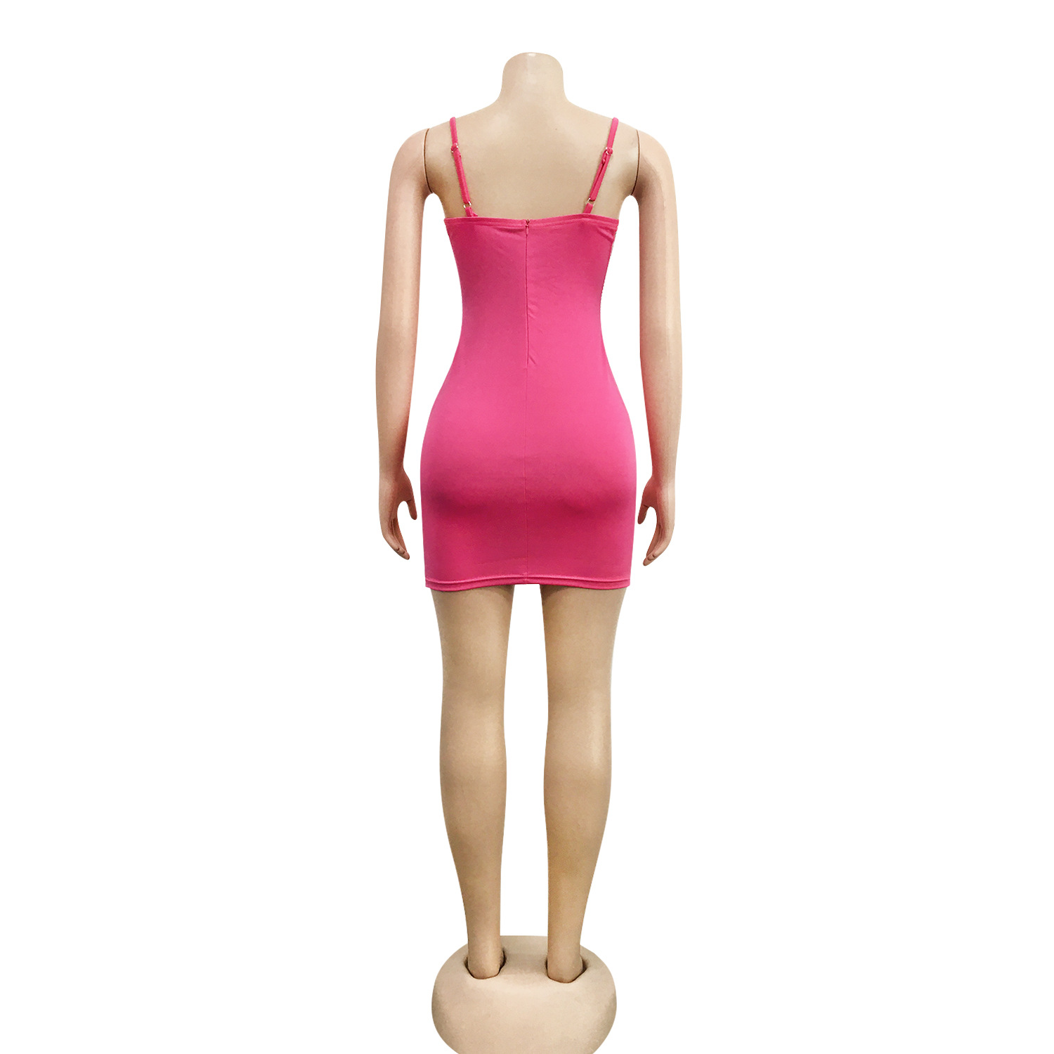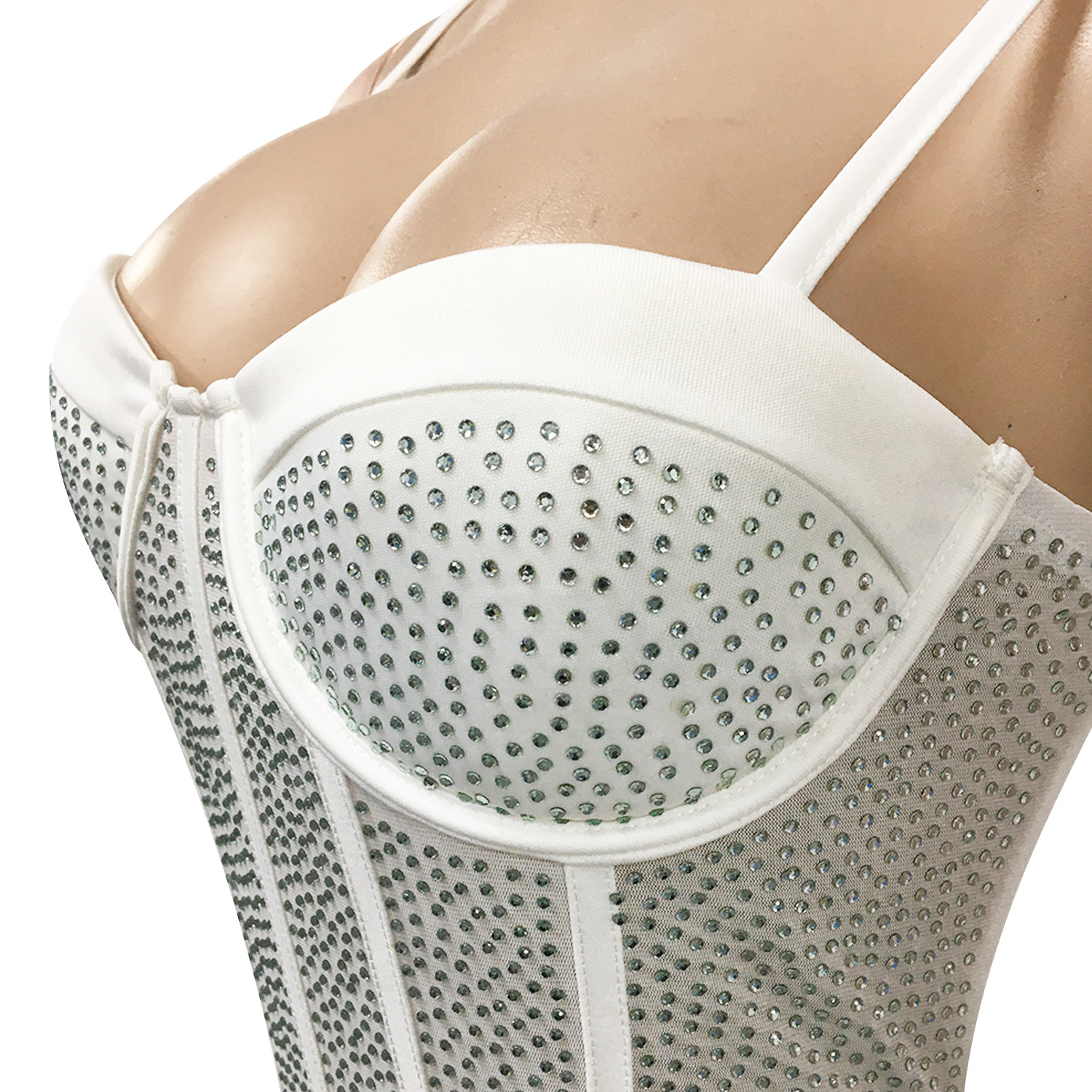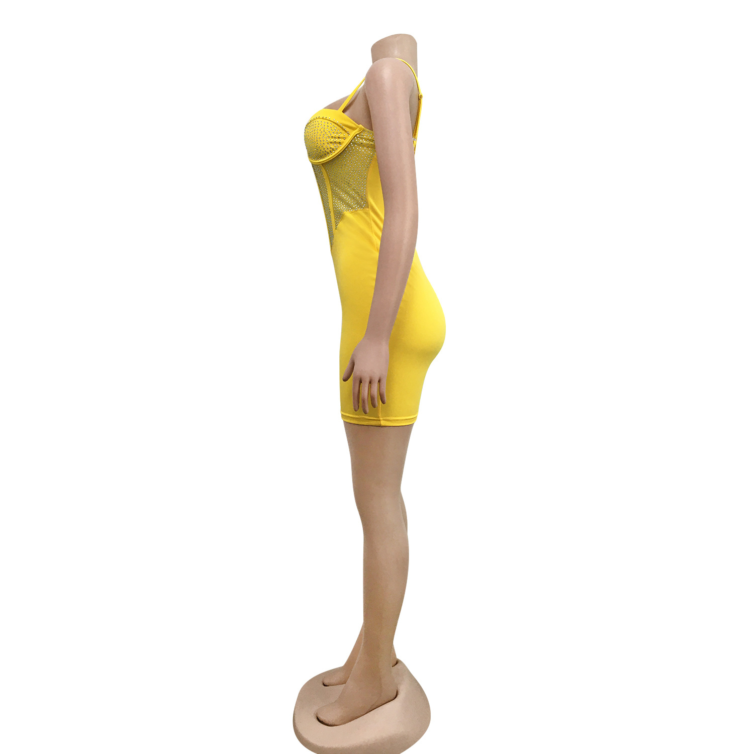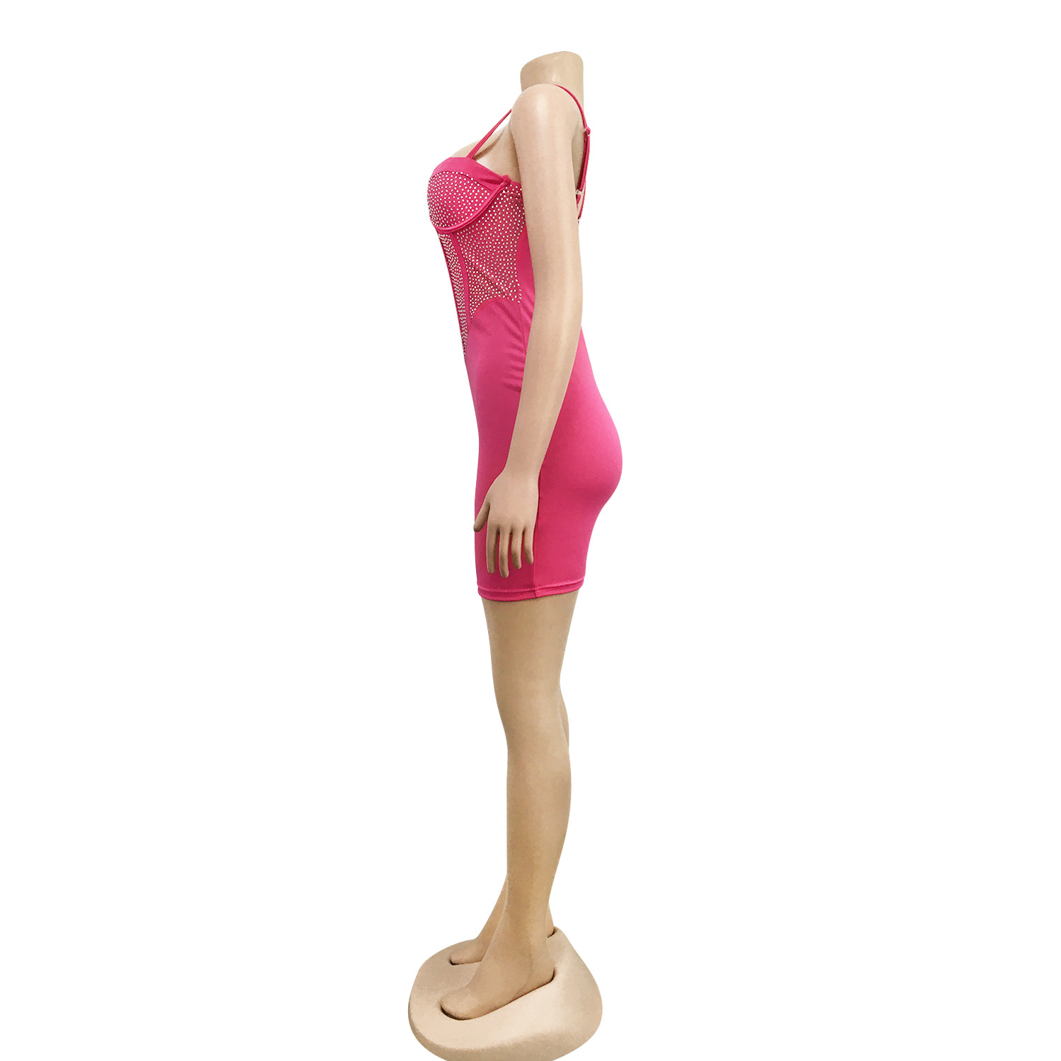 Sexy Spaghetti Straps Corset Mesh Drilling Solid Color Dress