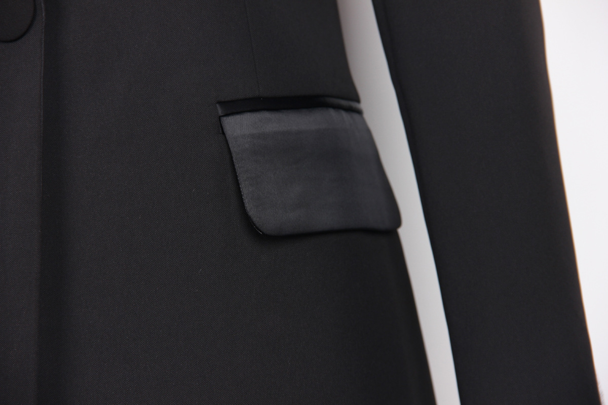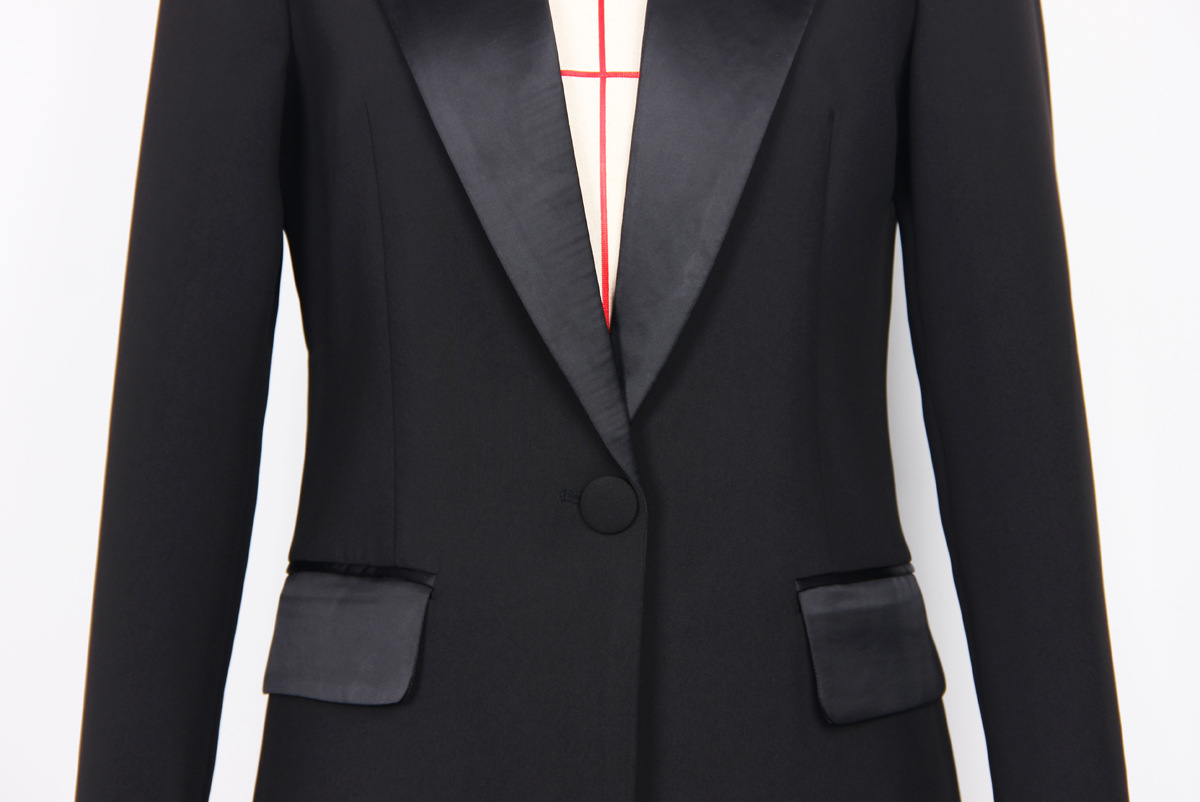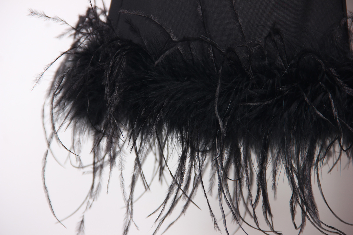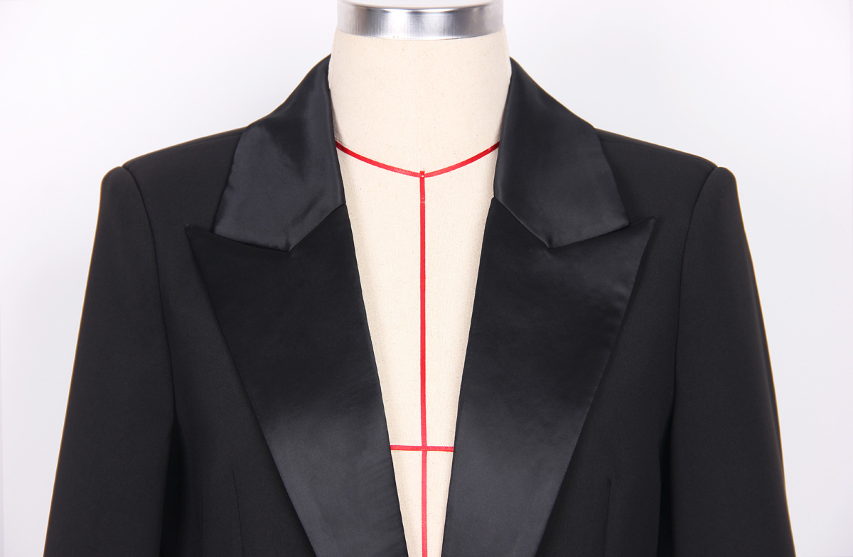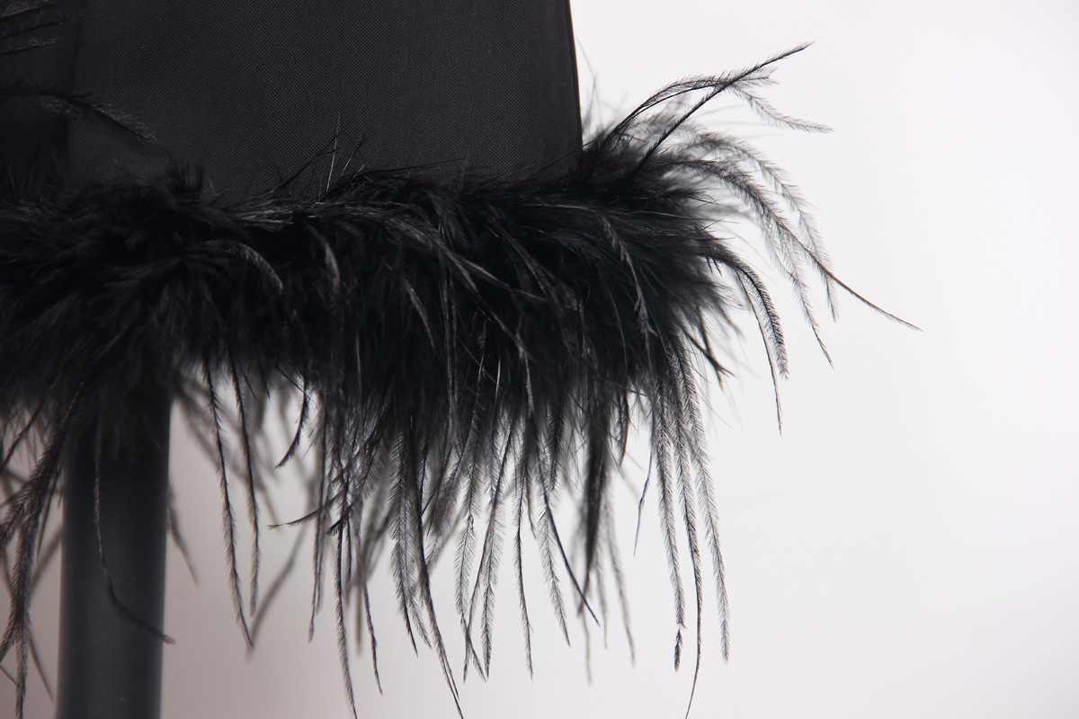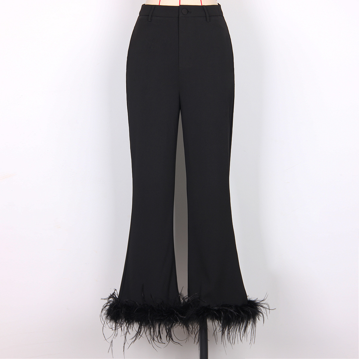 Spring Autumn Ostrich Fur Satin Collar Women Blazer Business Elegant Business Work Pant Set