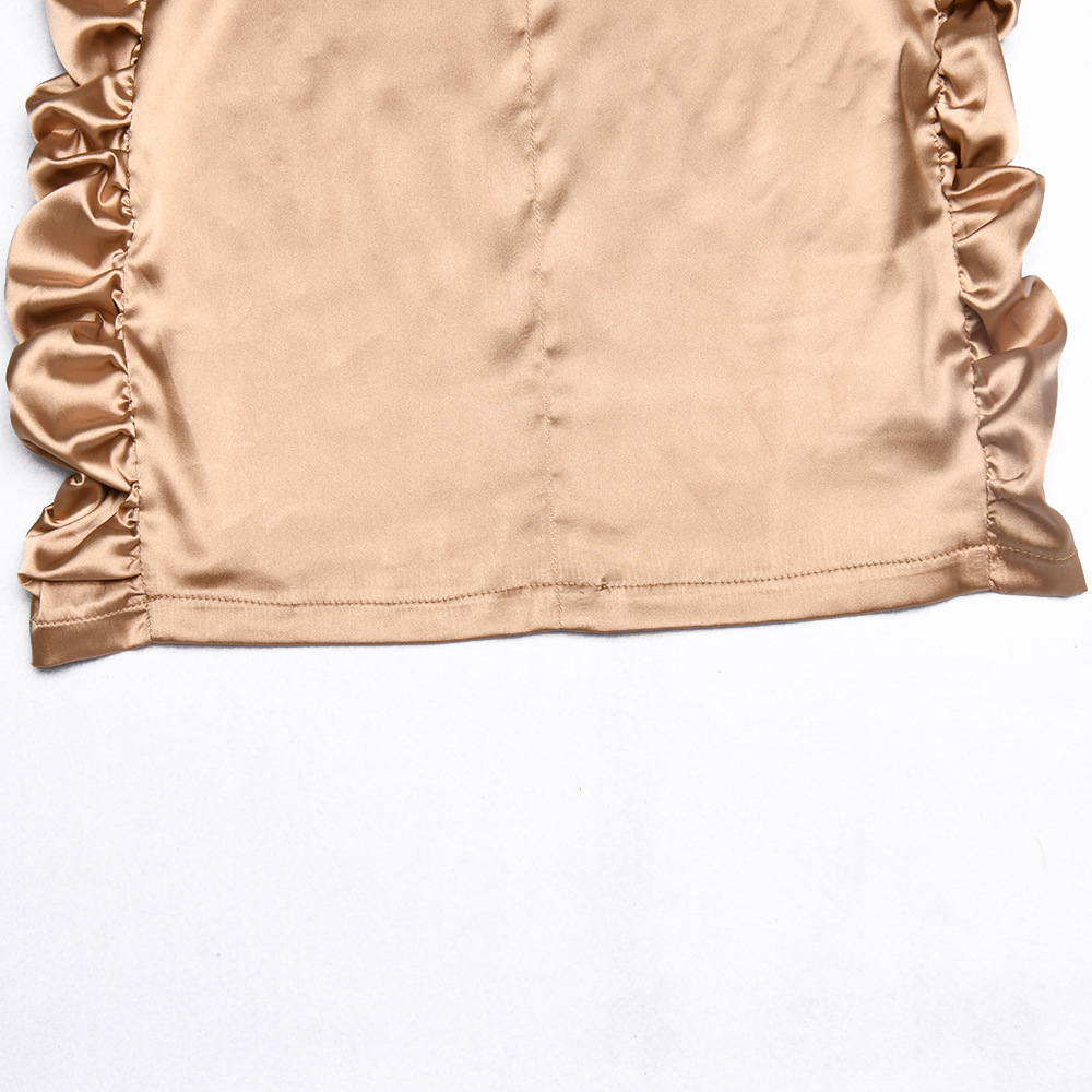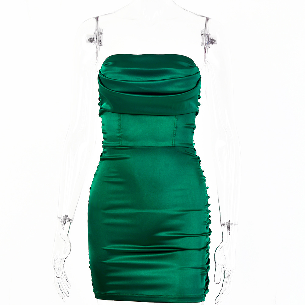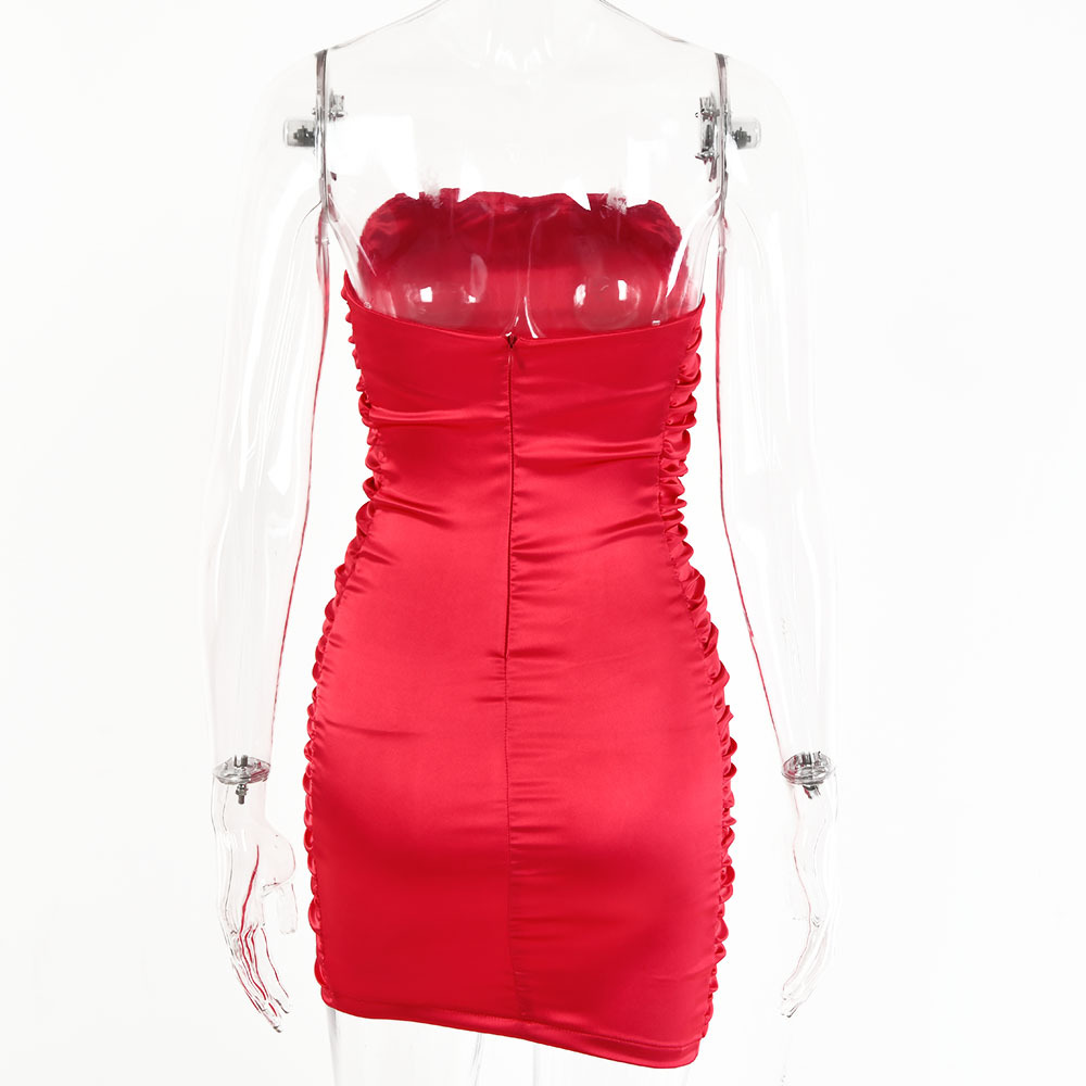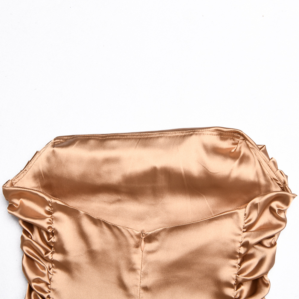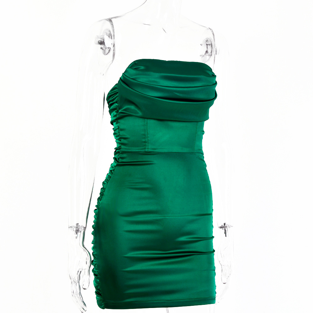 Spring Autumn Women Clothing Sexy Backless Pleated Wrapped Chest High Elastic Satin Hip Dress