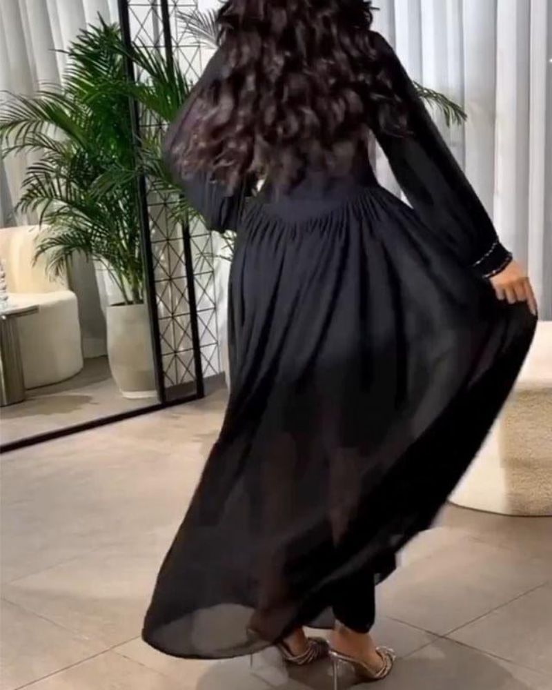 Spring Summer Middle East Sexy High Waist Beaded Pearl Chiffon Cocktail Evening Dress