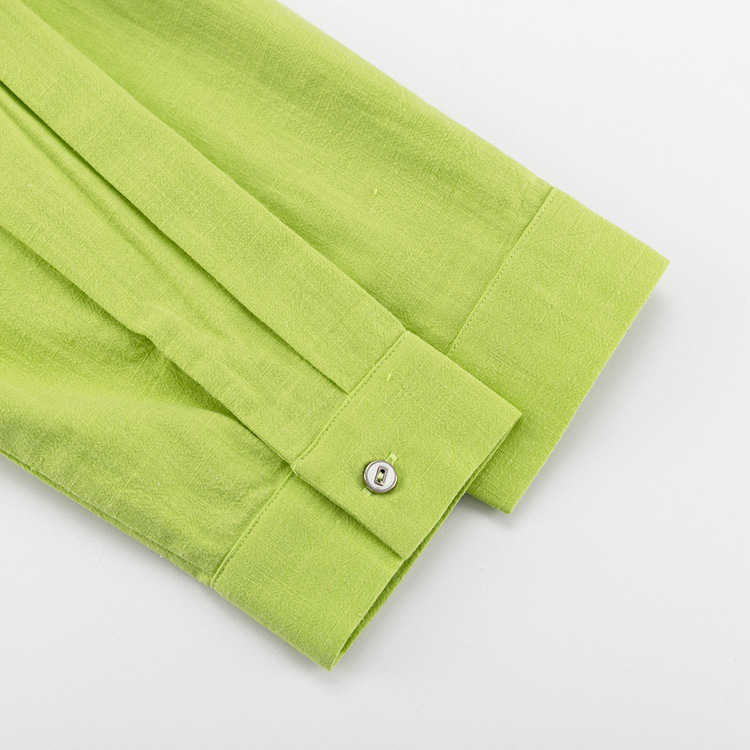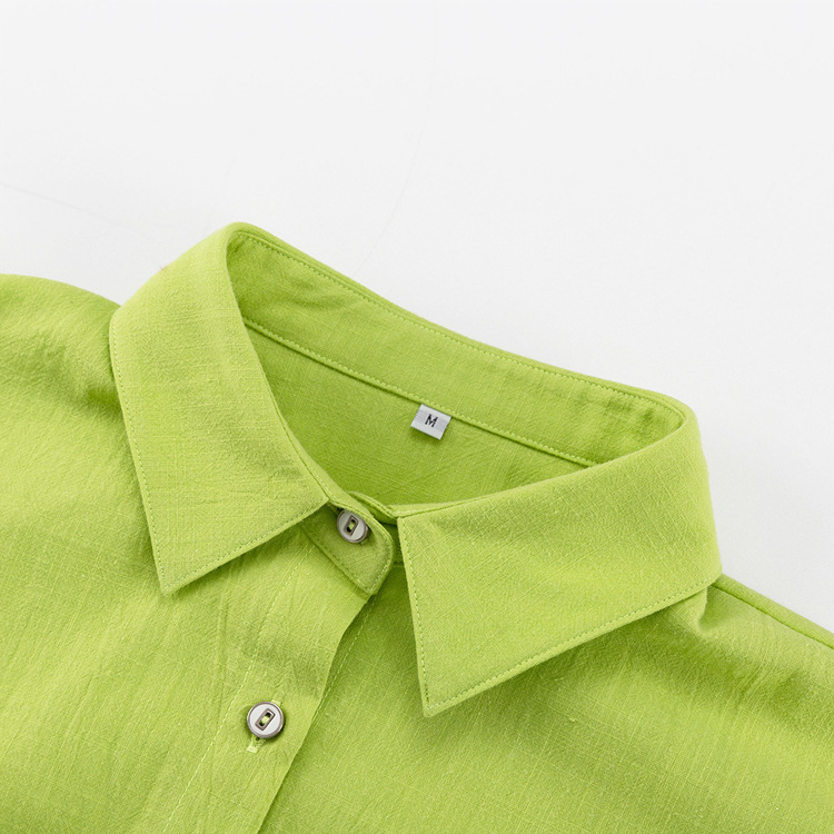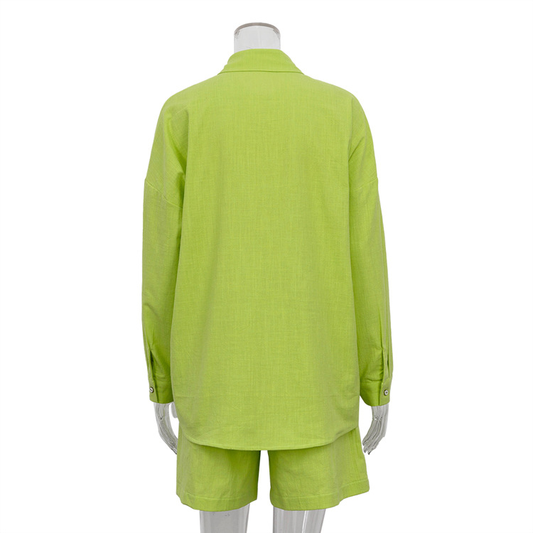 Spring Summer Two Piece Set Solid Color Single Breasted Long Sleeve Collared Shirt Shorts Loose Casual Set