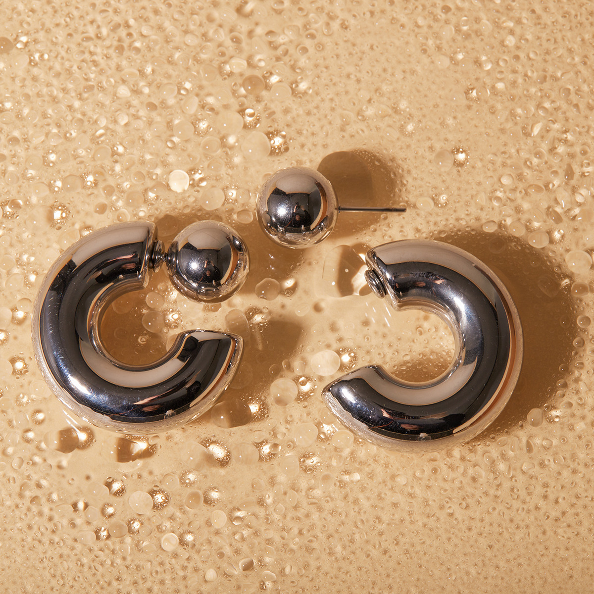 Stainless Steel Front Rear Wear C Shaped Earrings Unique High Grade Niche Titanium Steel Earrings Women