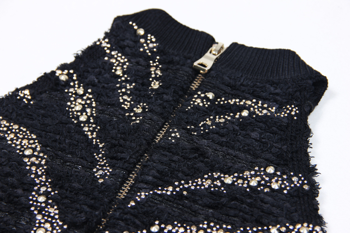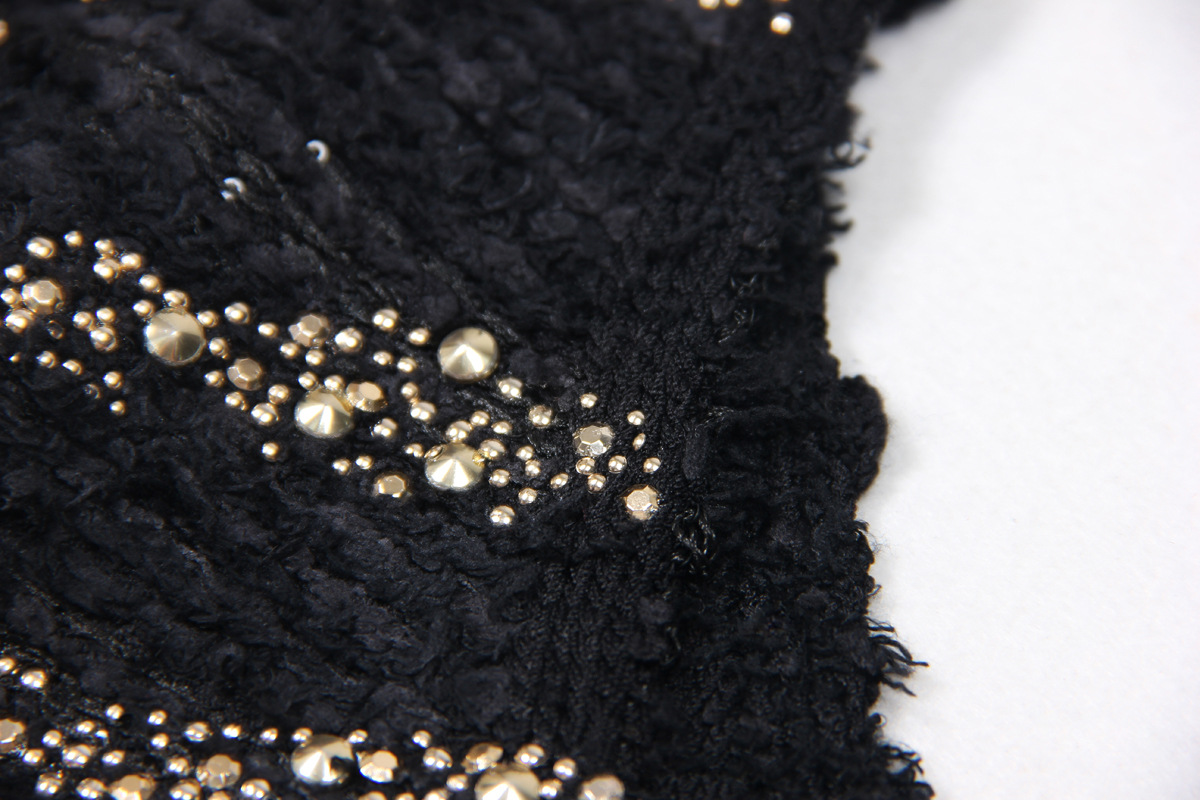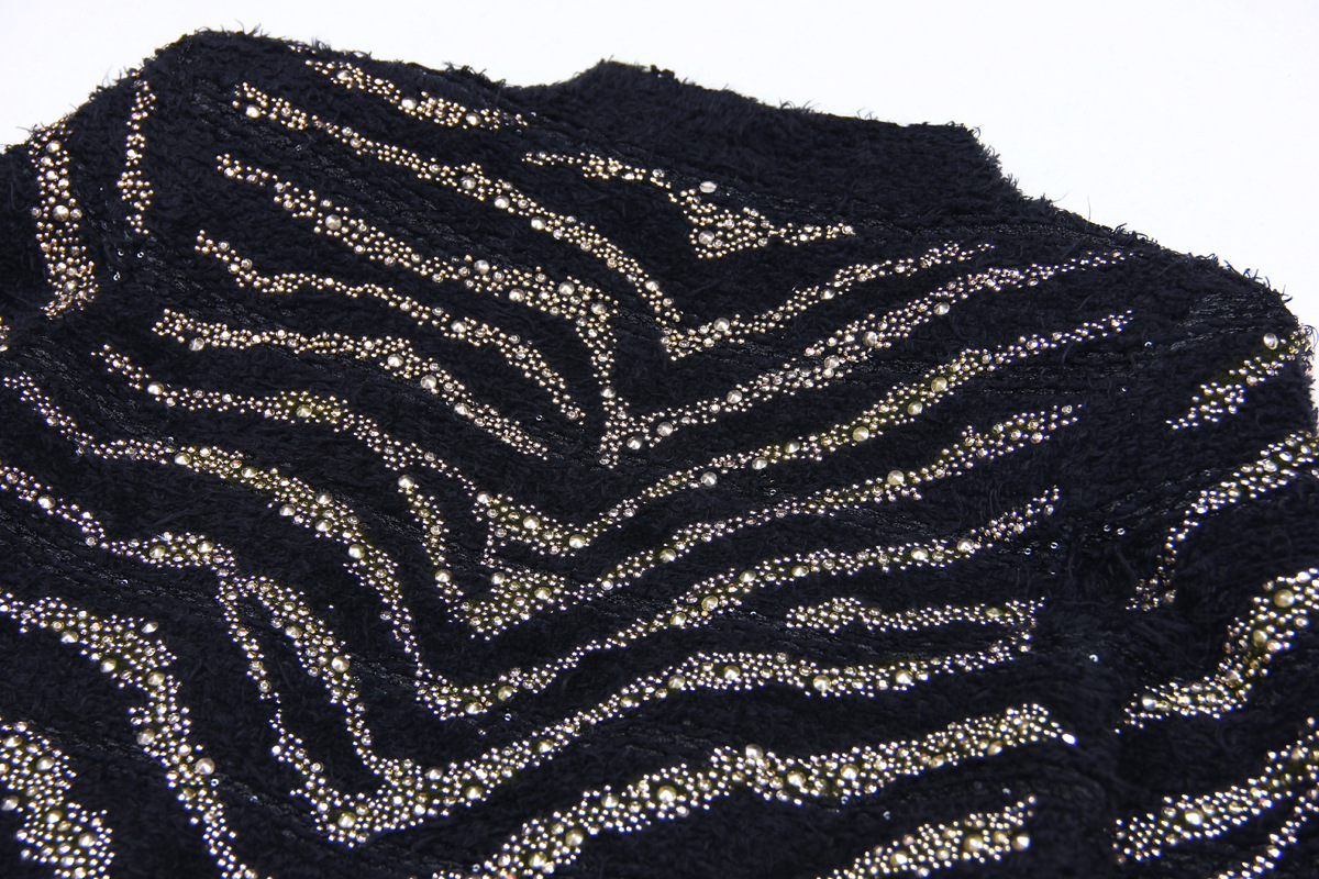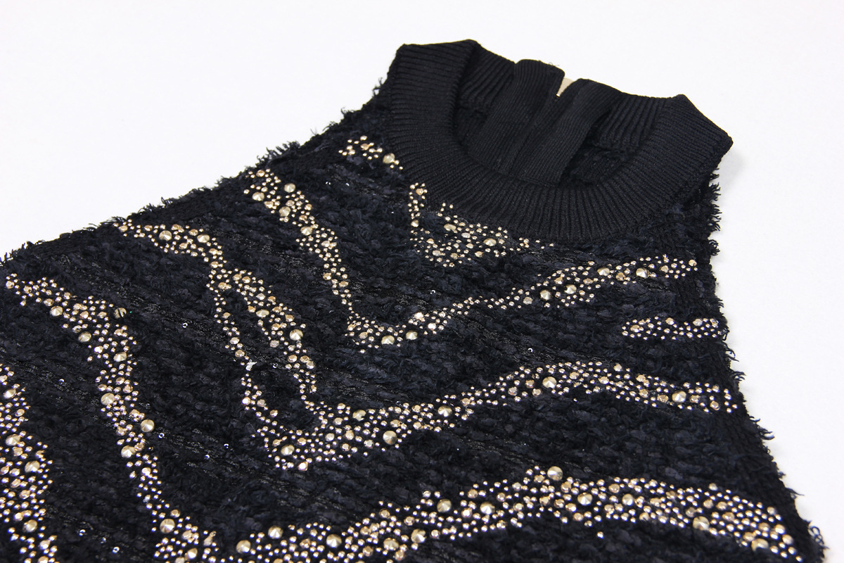 Summer Women Trending Quality Knitted Rhinestone Vest Coat Skirt Set