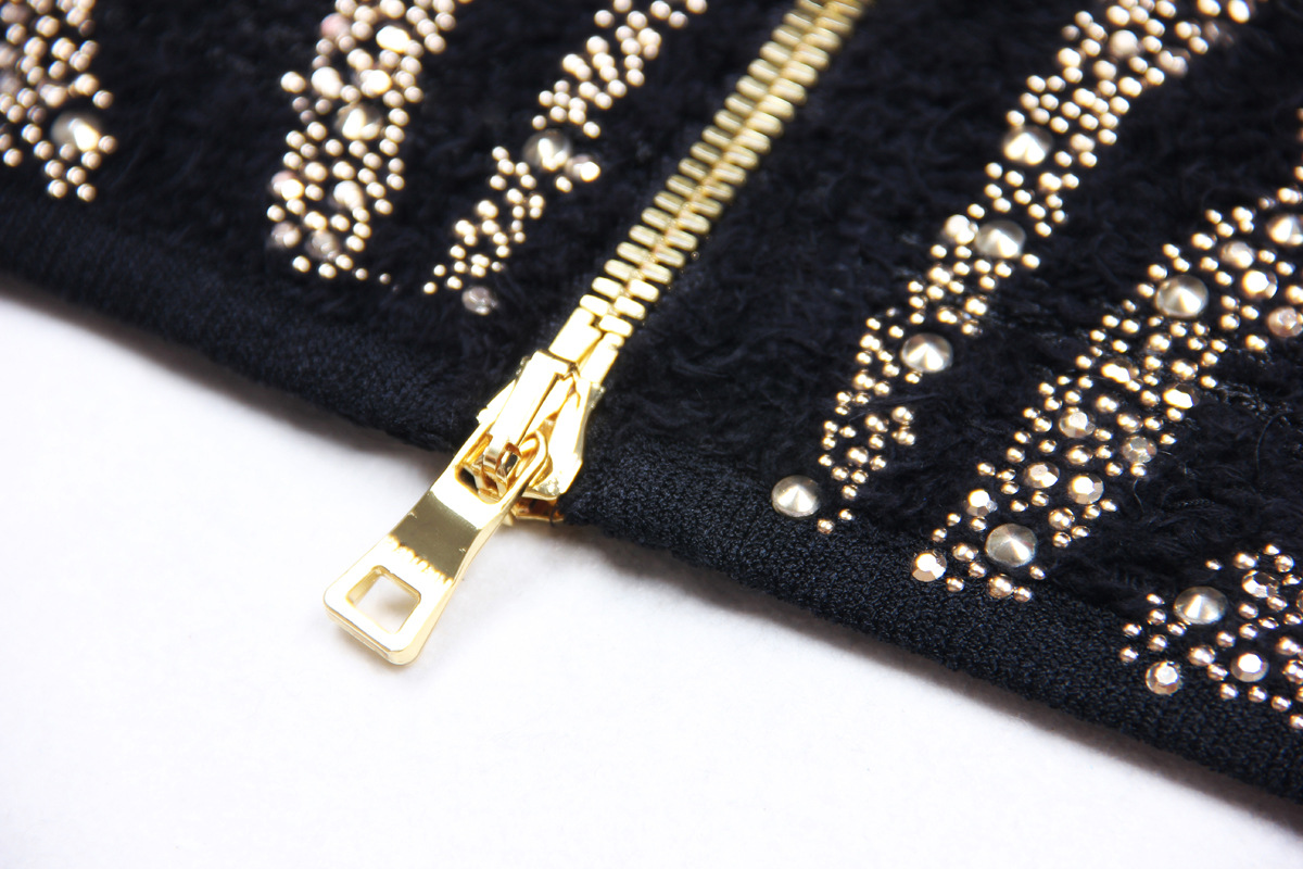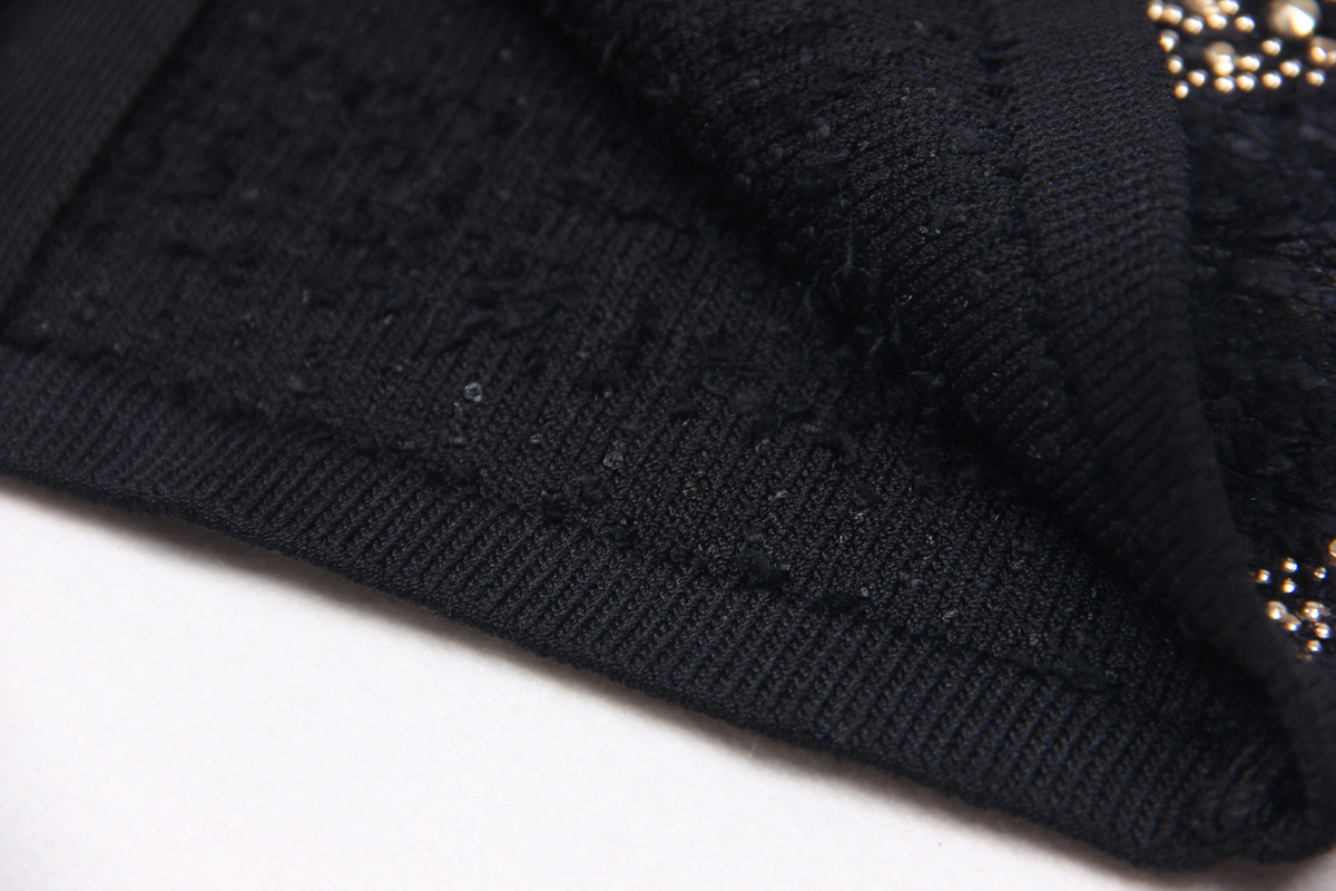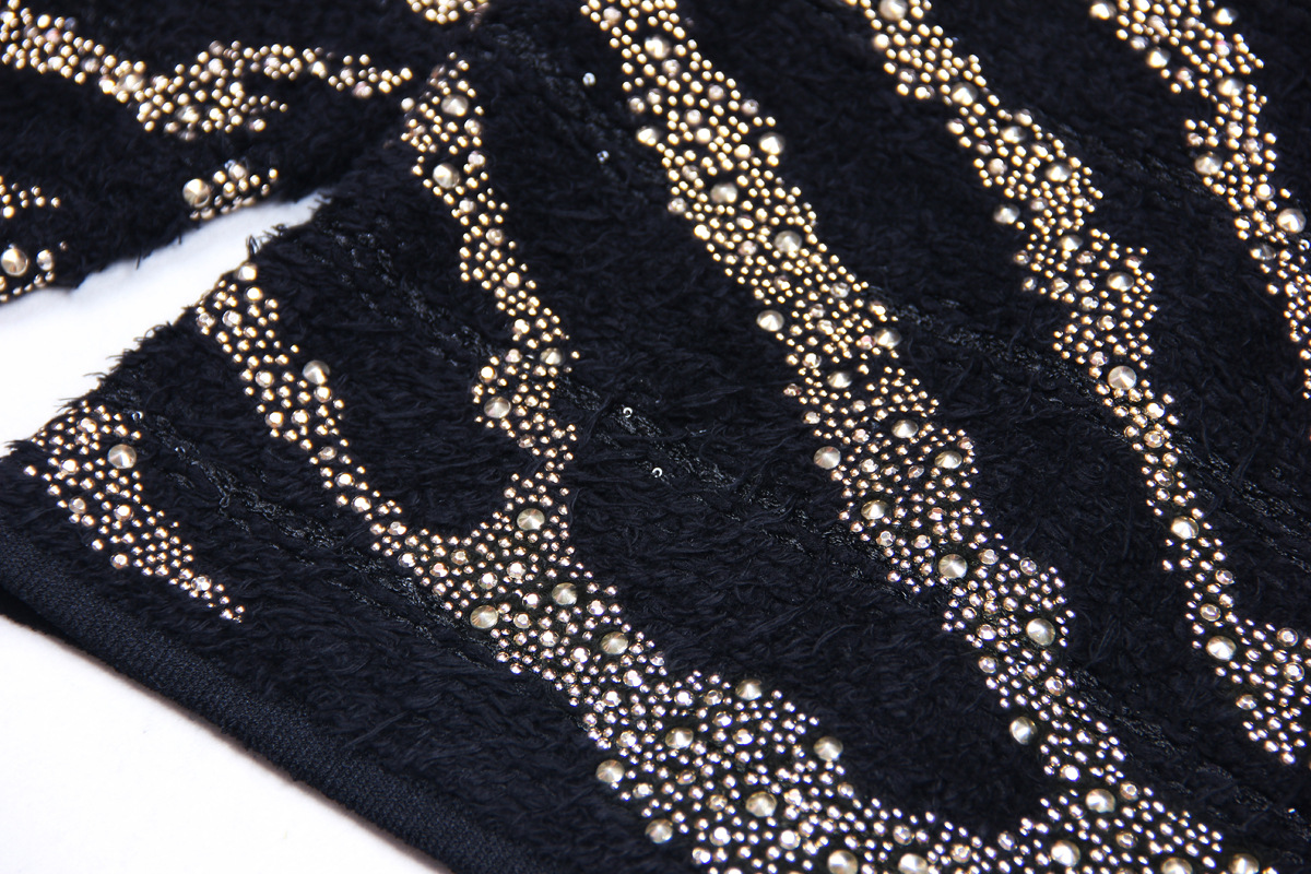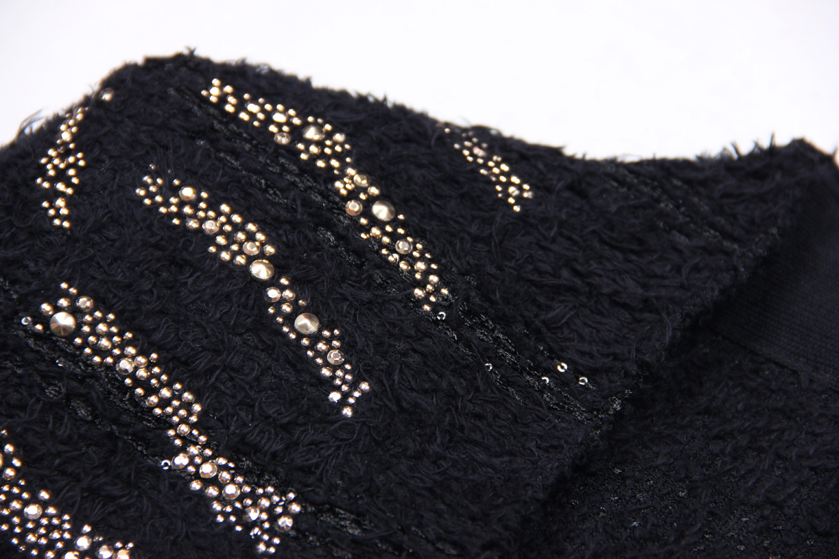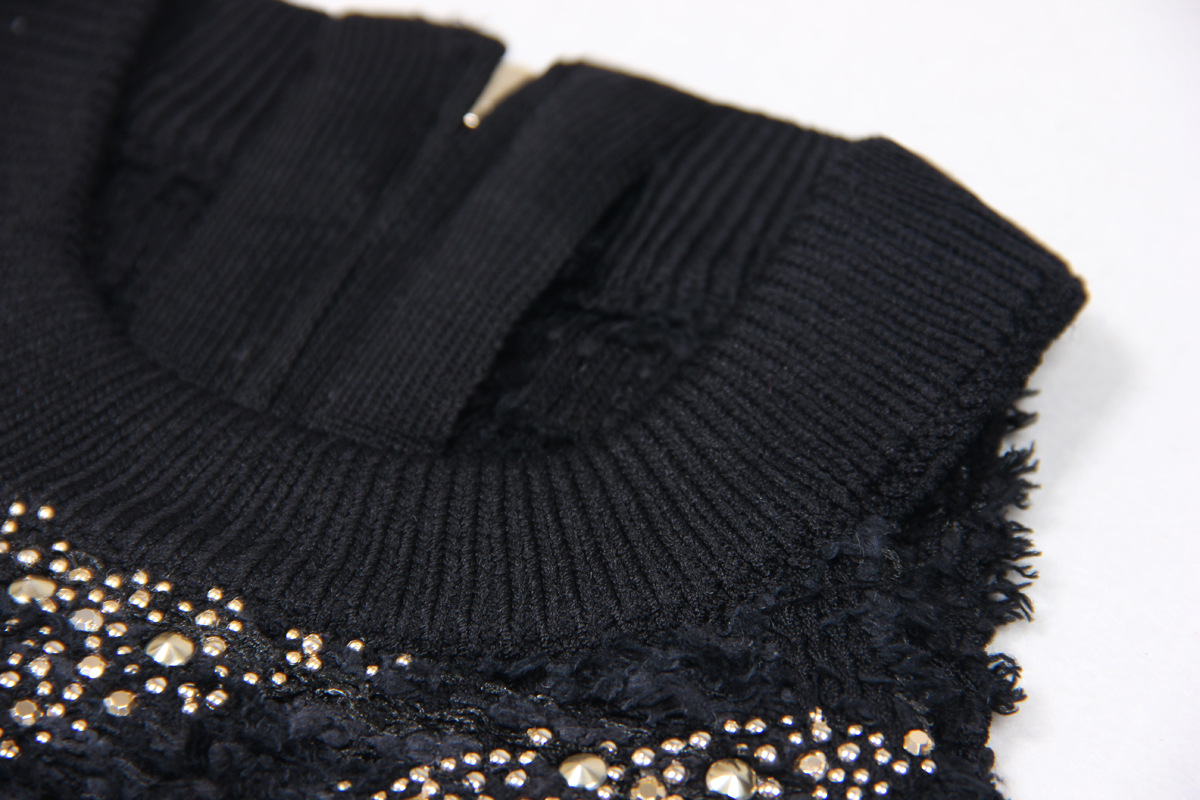 Summer Women Trending Quality Knitted Rhinestone Vest Coat Skirt Set
