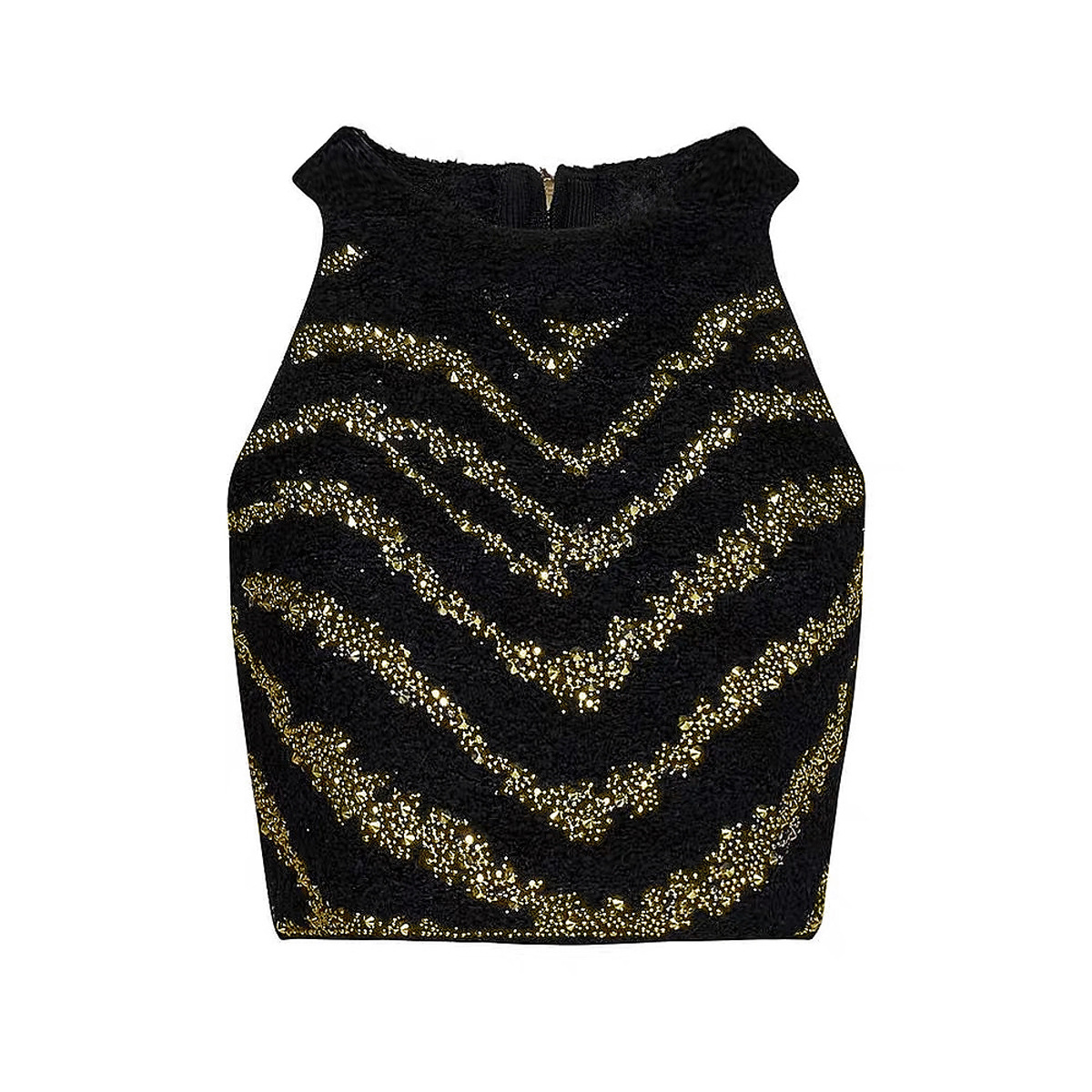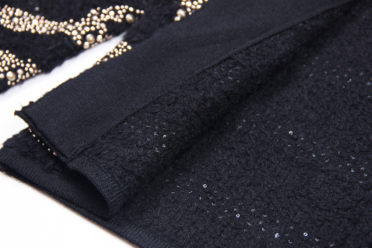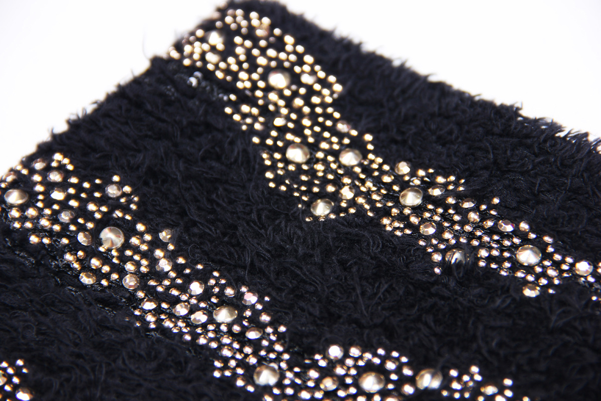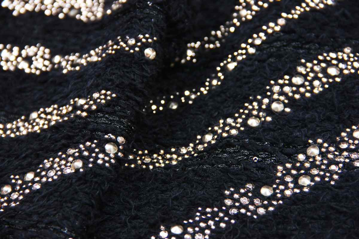 Summer Women Trending Quality Knitted Rhinestone Vest Coat Skirt Set