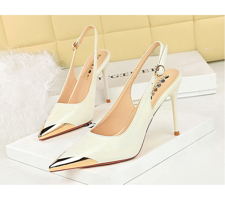 Super High Heels Women Metal Pointed Toe Slingback Stiletto Women Shoes Hollow Out Cutout out Back Strap Pumps