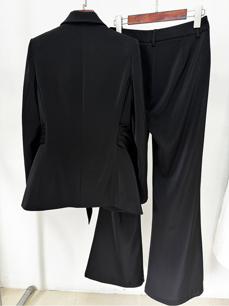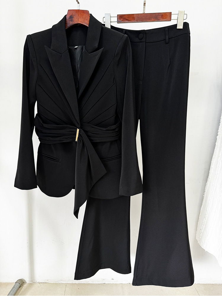 Women Asymmetric Belt Slim Fit Blazer Trousers Set