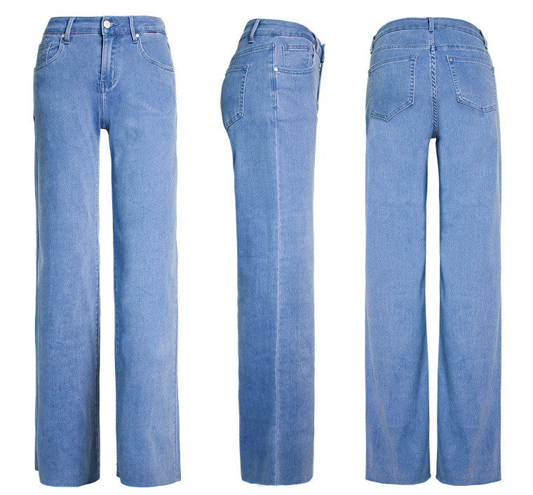 Women Clothing Loose Casual Wide-Leg Pants Trousers High Waist Straight Mop Denim Pants