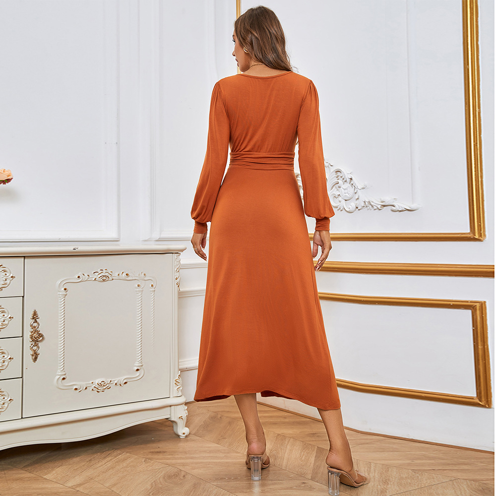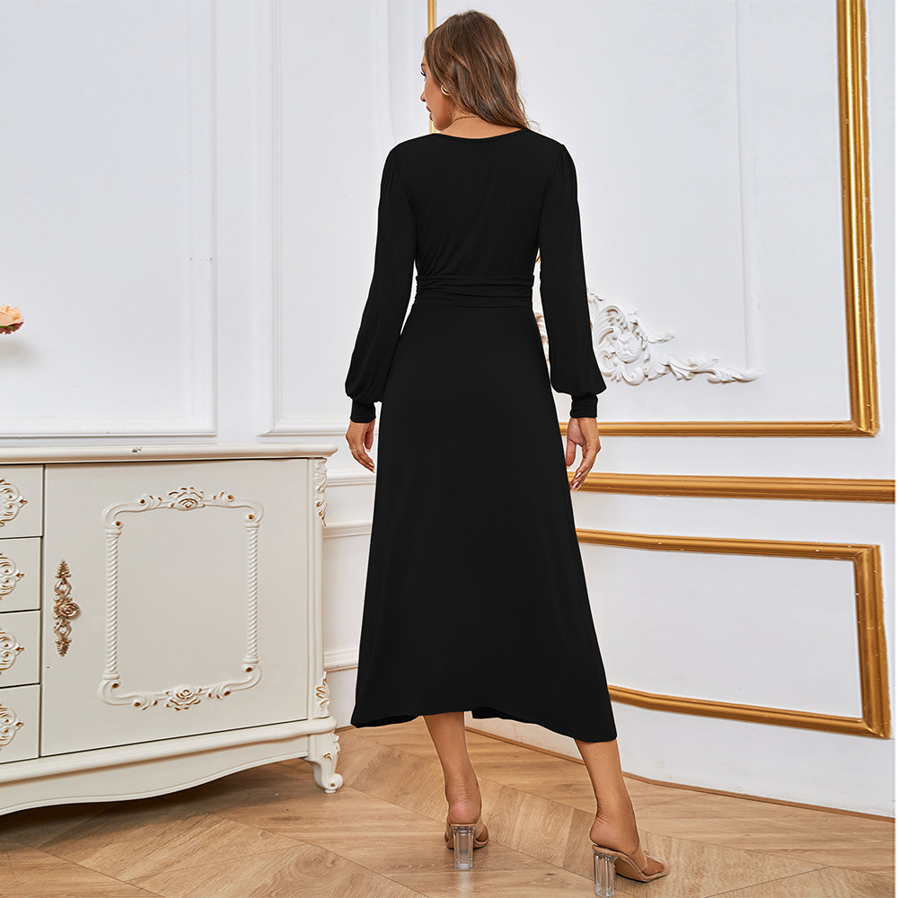 Women Clothing Sexy V neck Split High Waist Slim Fit Elegant Dress A line Dress
