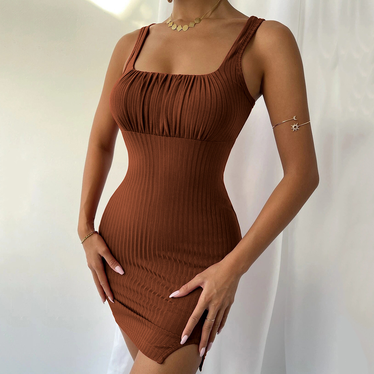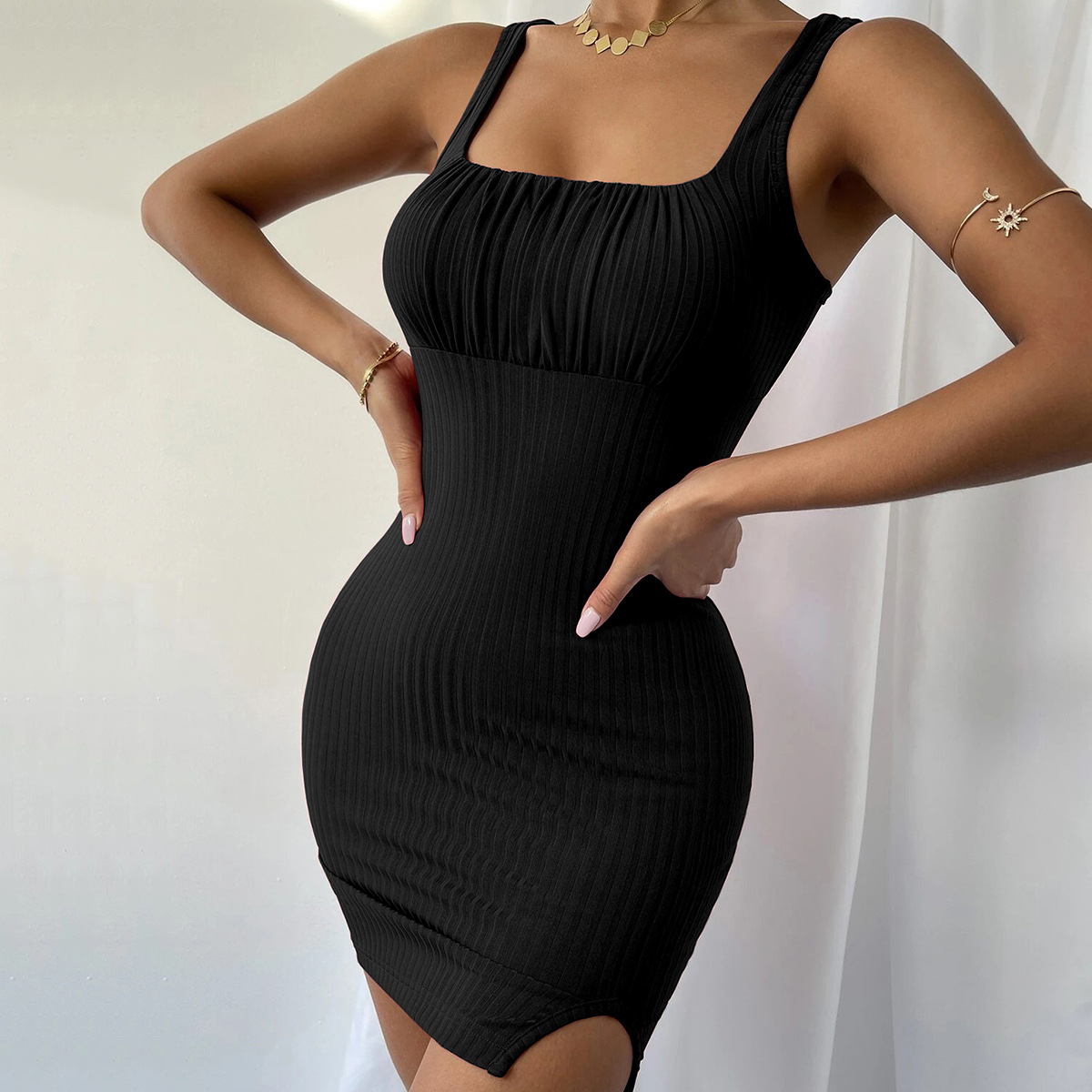 Women Clothing Spring/Summer Sexy Slit Slim-Fitting Camisole Knitted Dress Hip