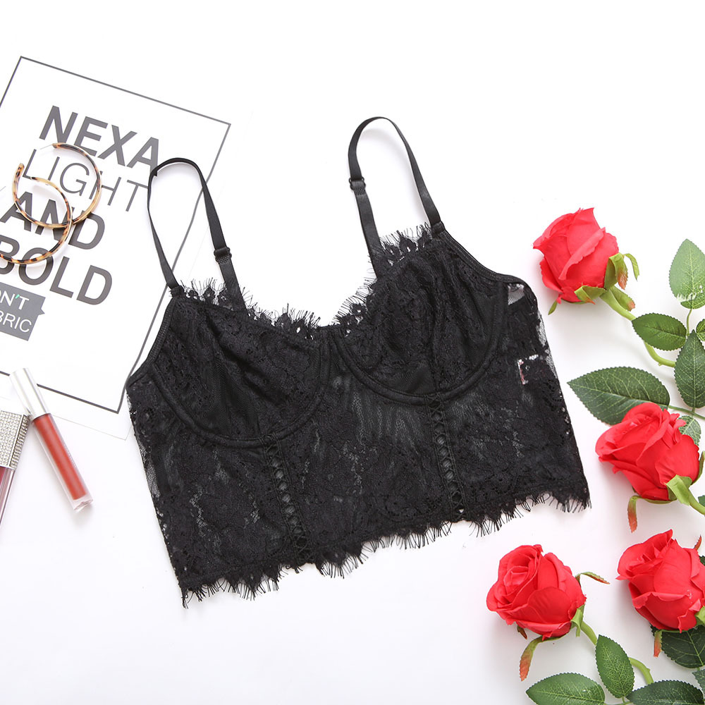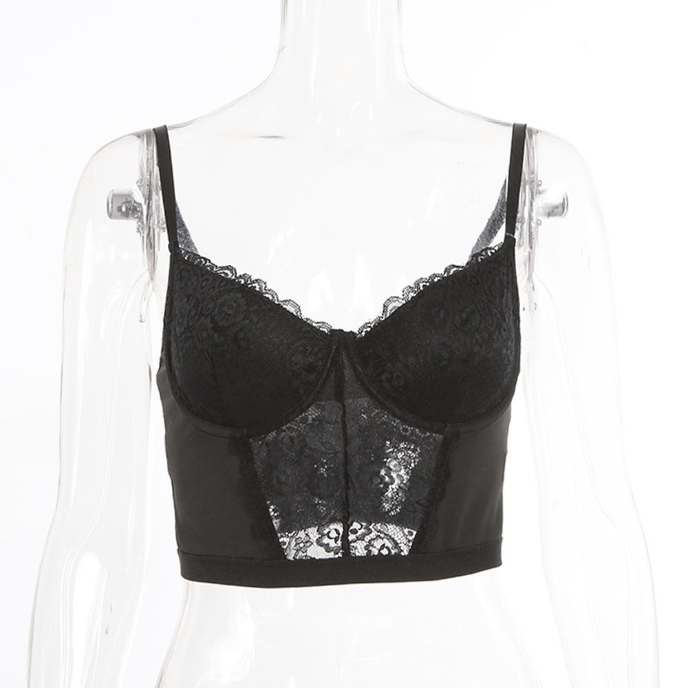 Women Lace Corset Sexy Backless Slim Fit Embroidered Black Vest