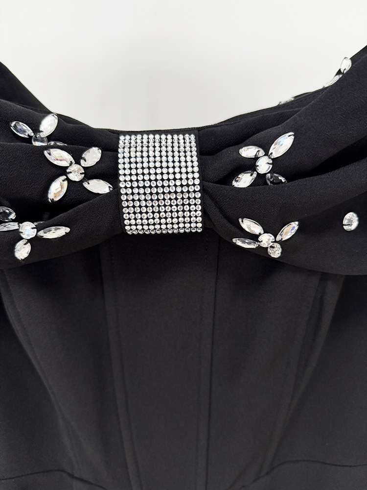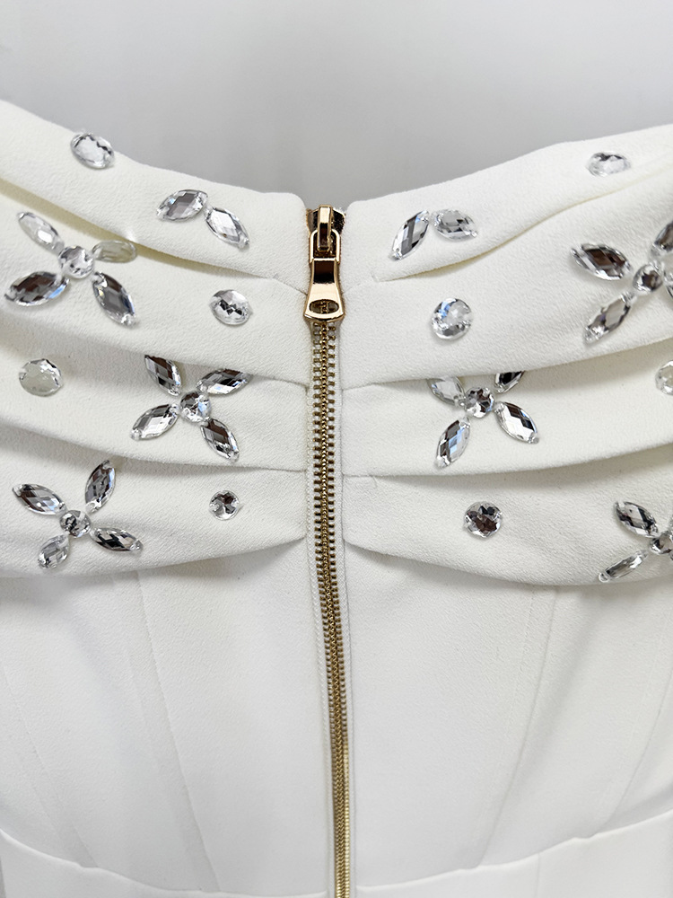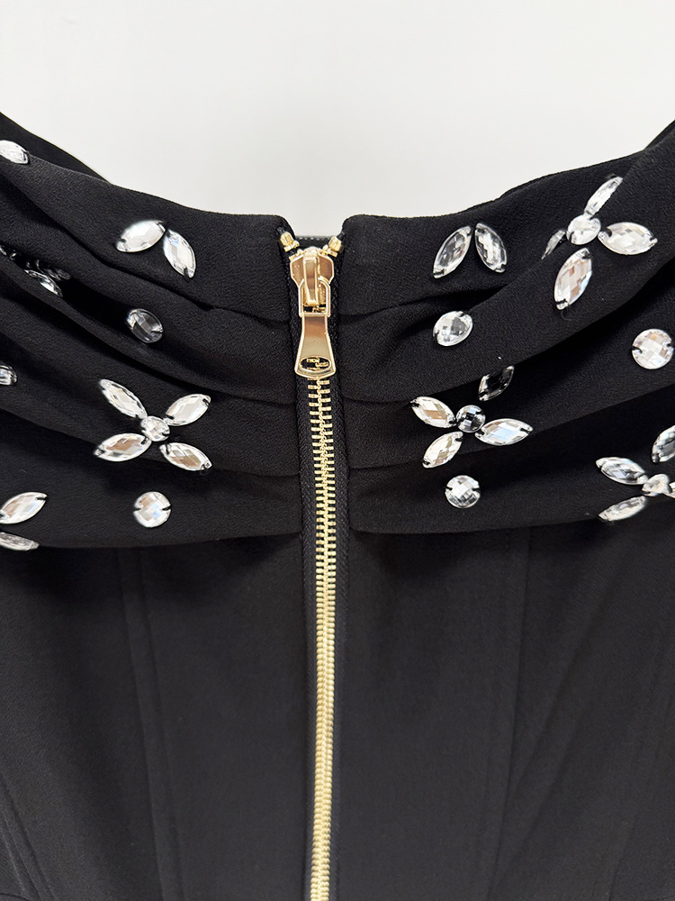 Element: Rhinestone,Zipper,Split,Ruched,Boning