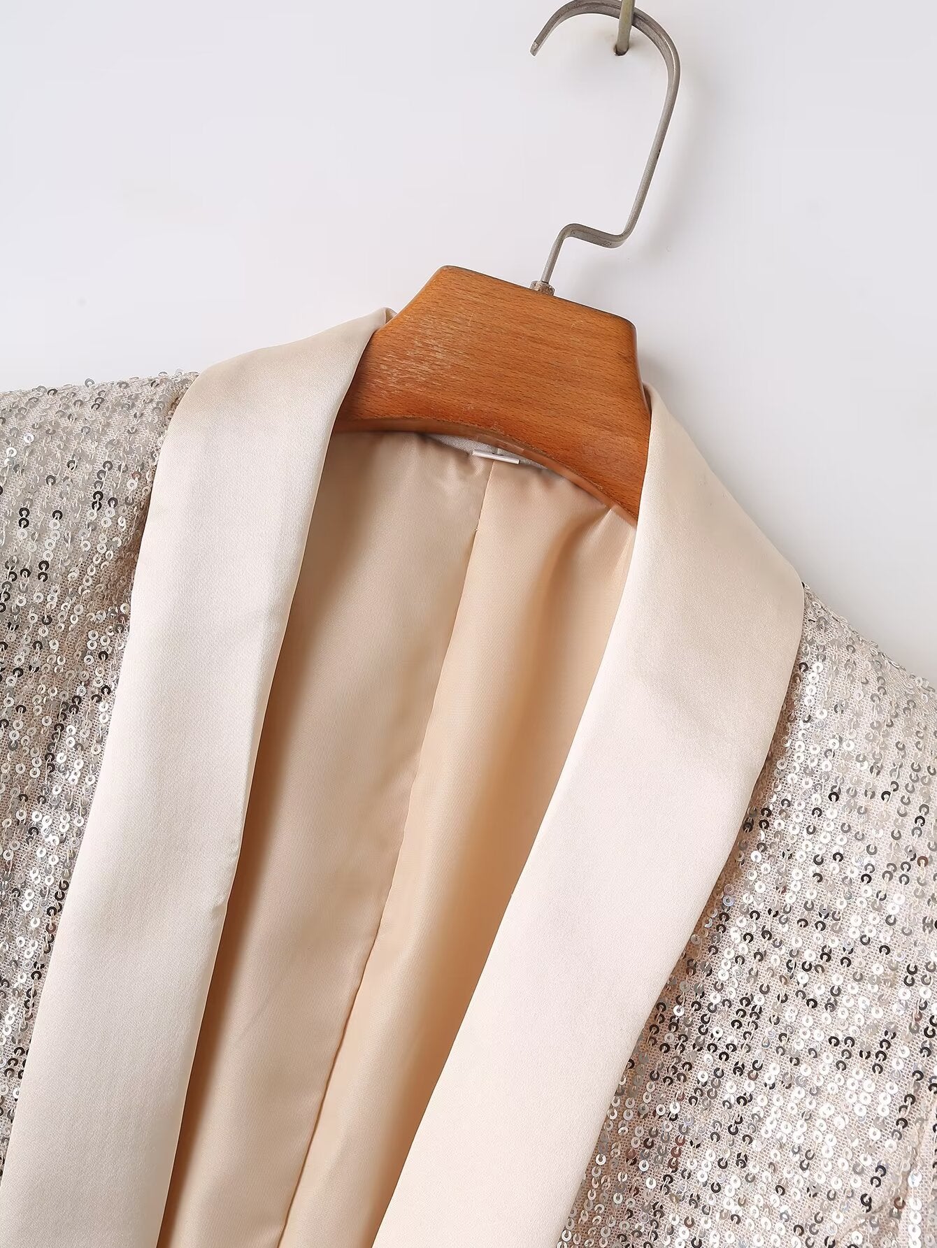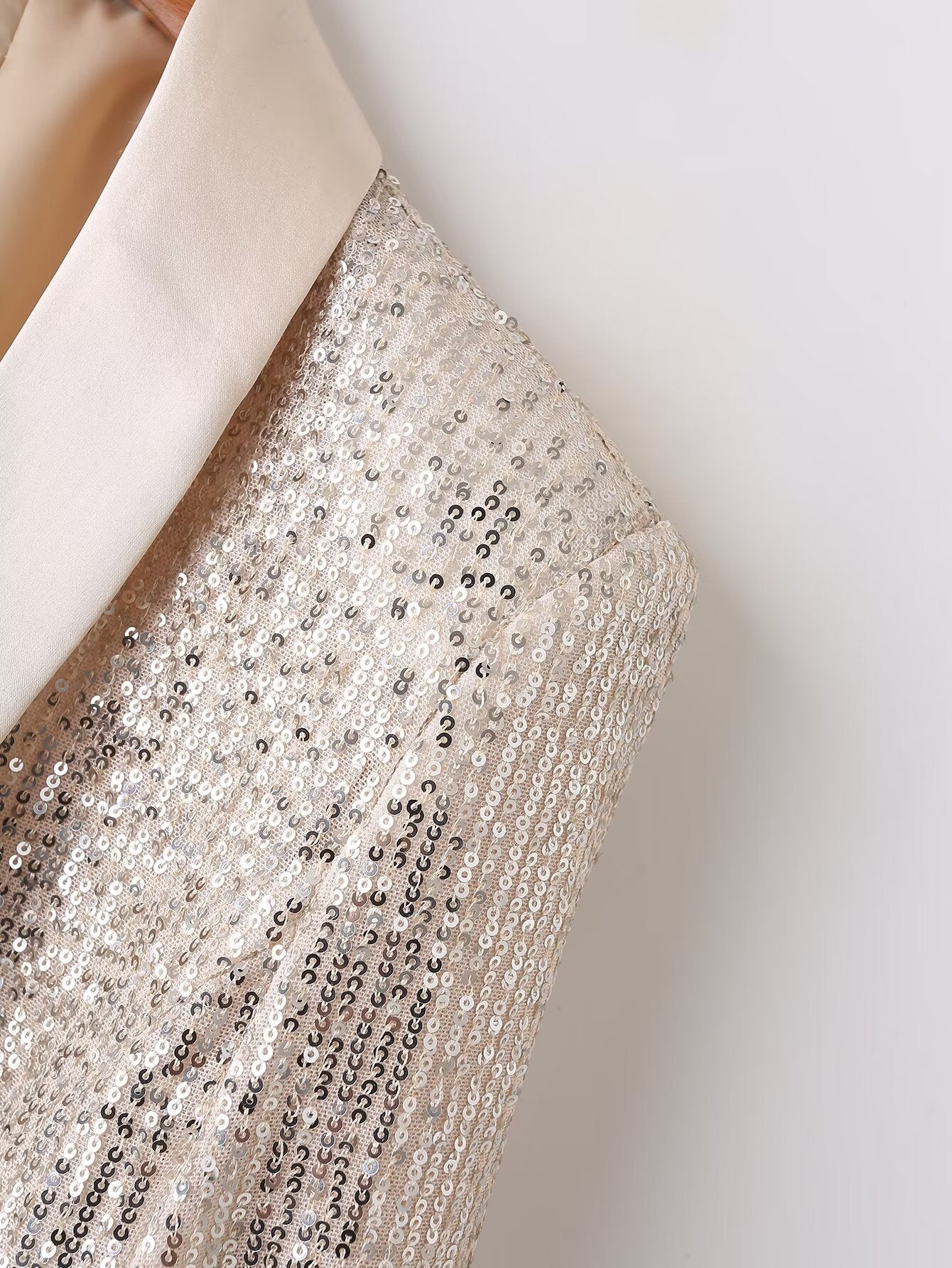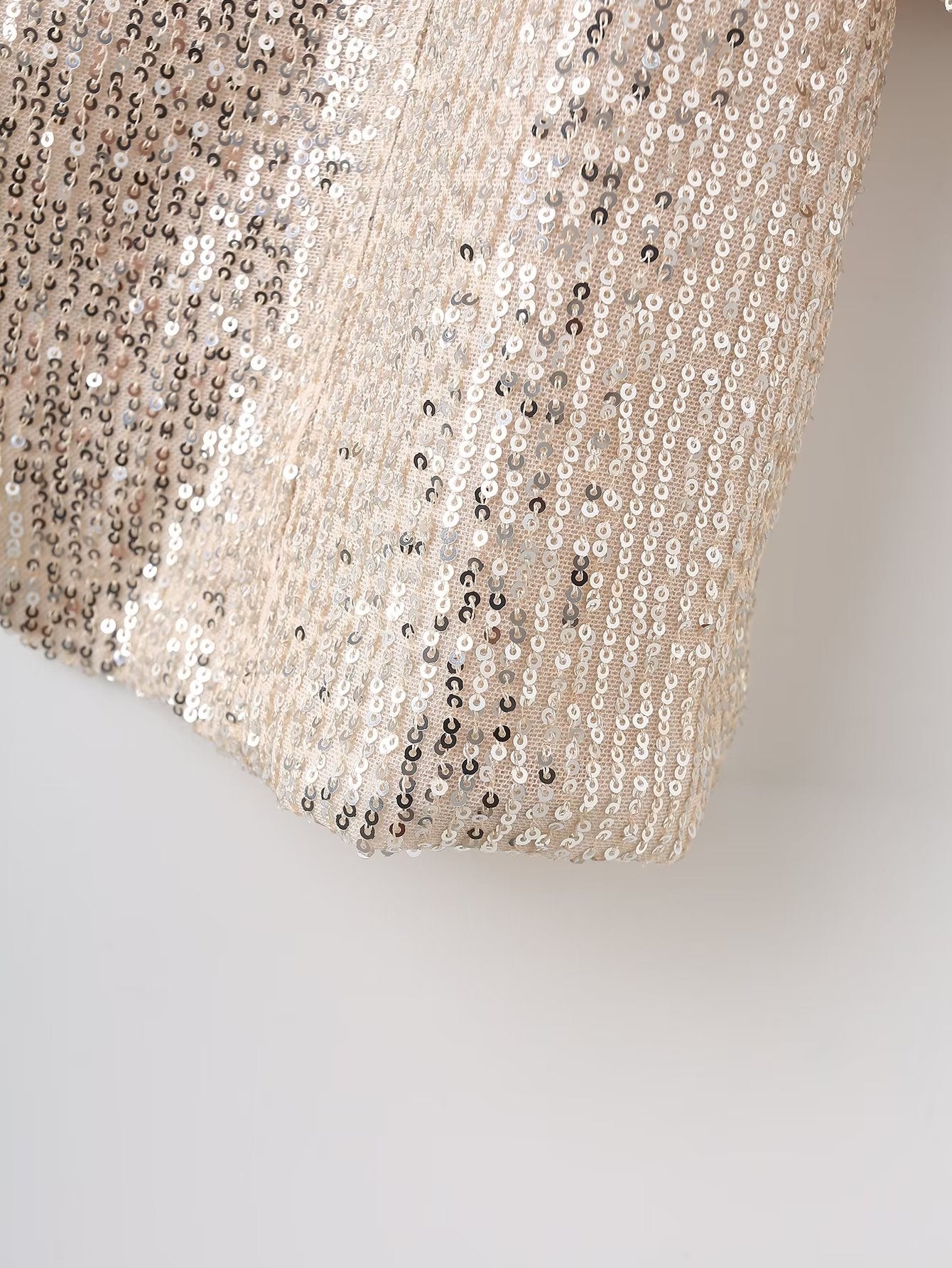 Women Winter Thick Mid Length Advanced Drill Buckle Sequined Fur Coat